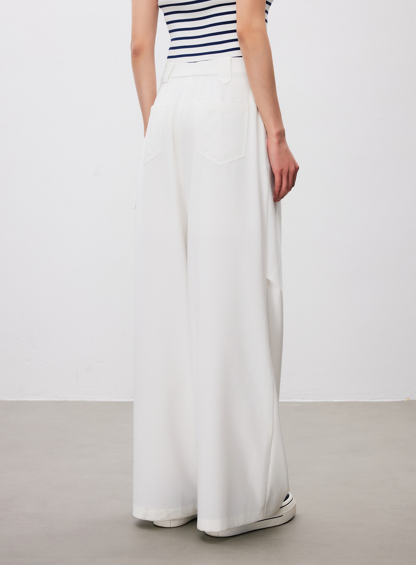 舒適休閒後鬆緊打摺寬褲$70 USD