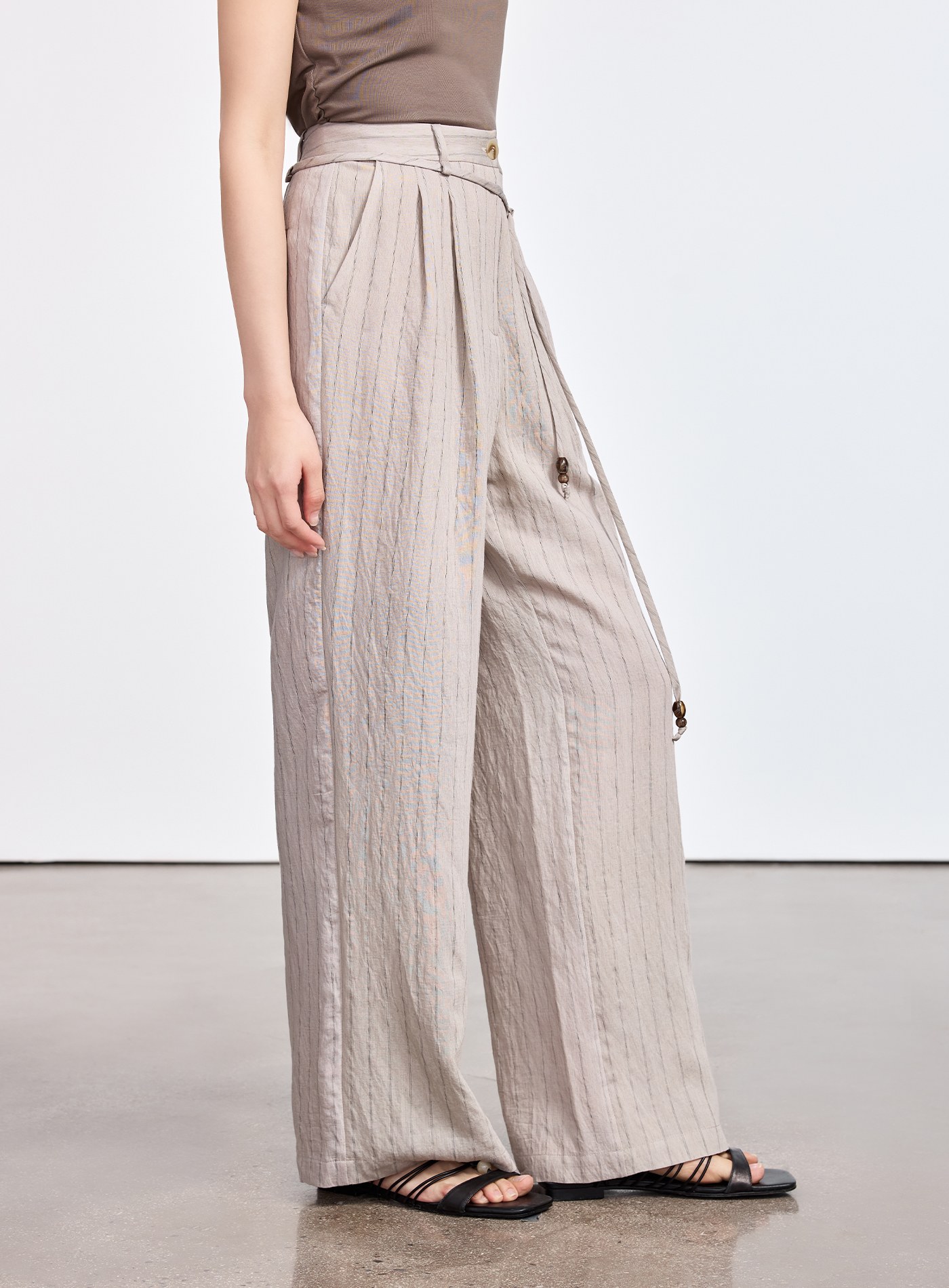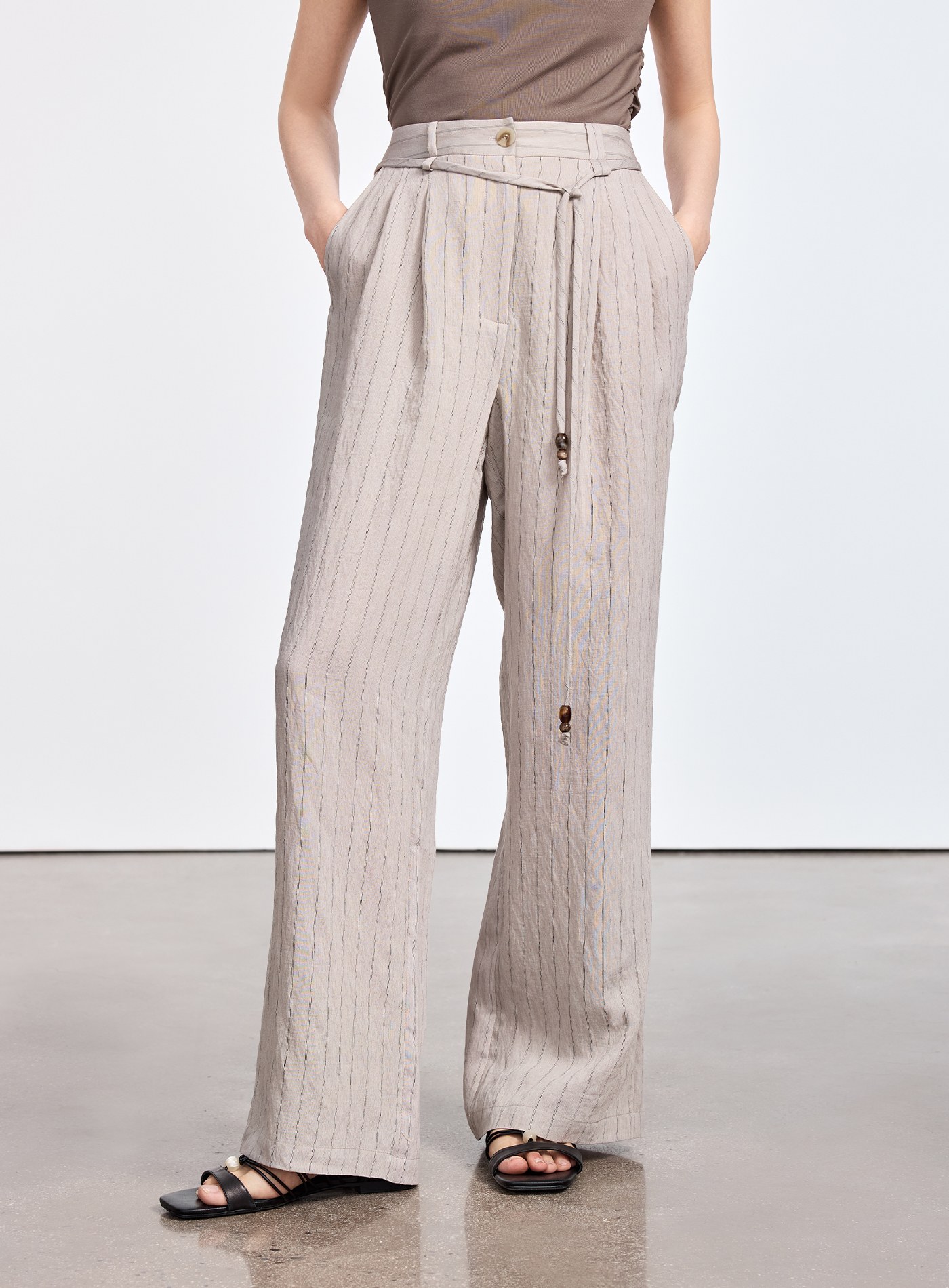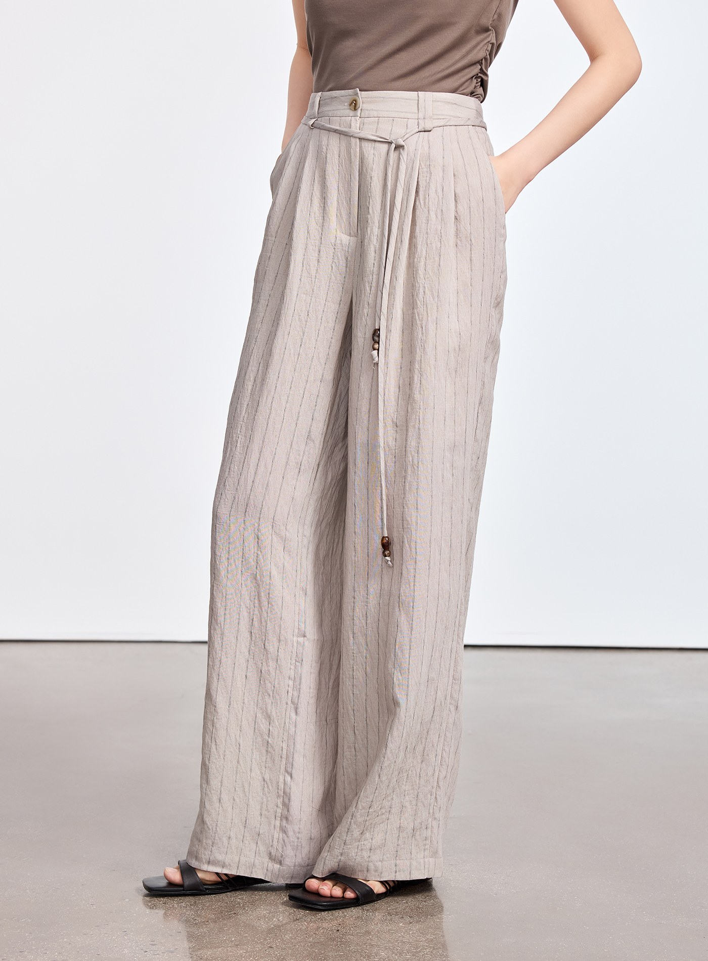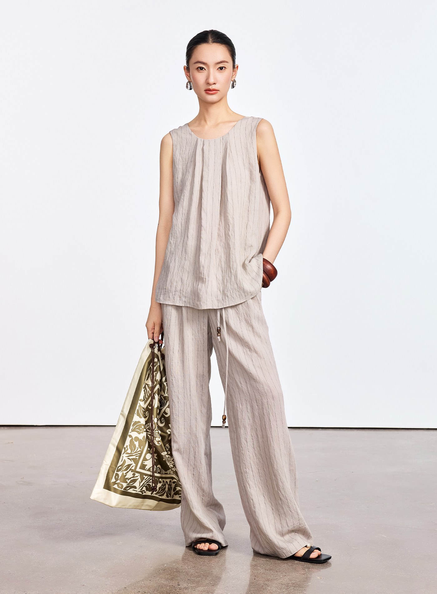 - 布面微結粒自然微皺,手感乾爽不黏膚,透氣舒適,保留仿麻自然感,為夏日造型添上一抹從容淡雅