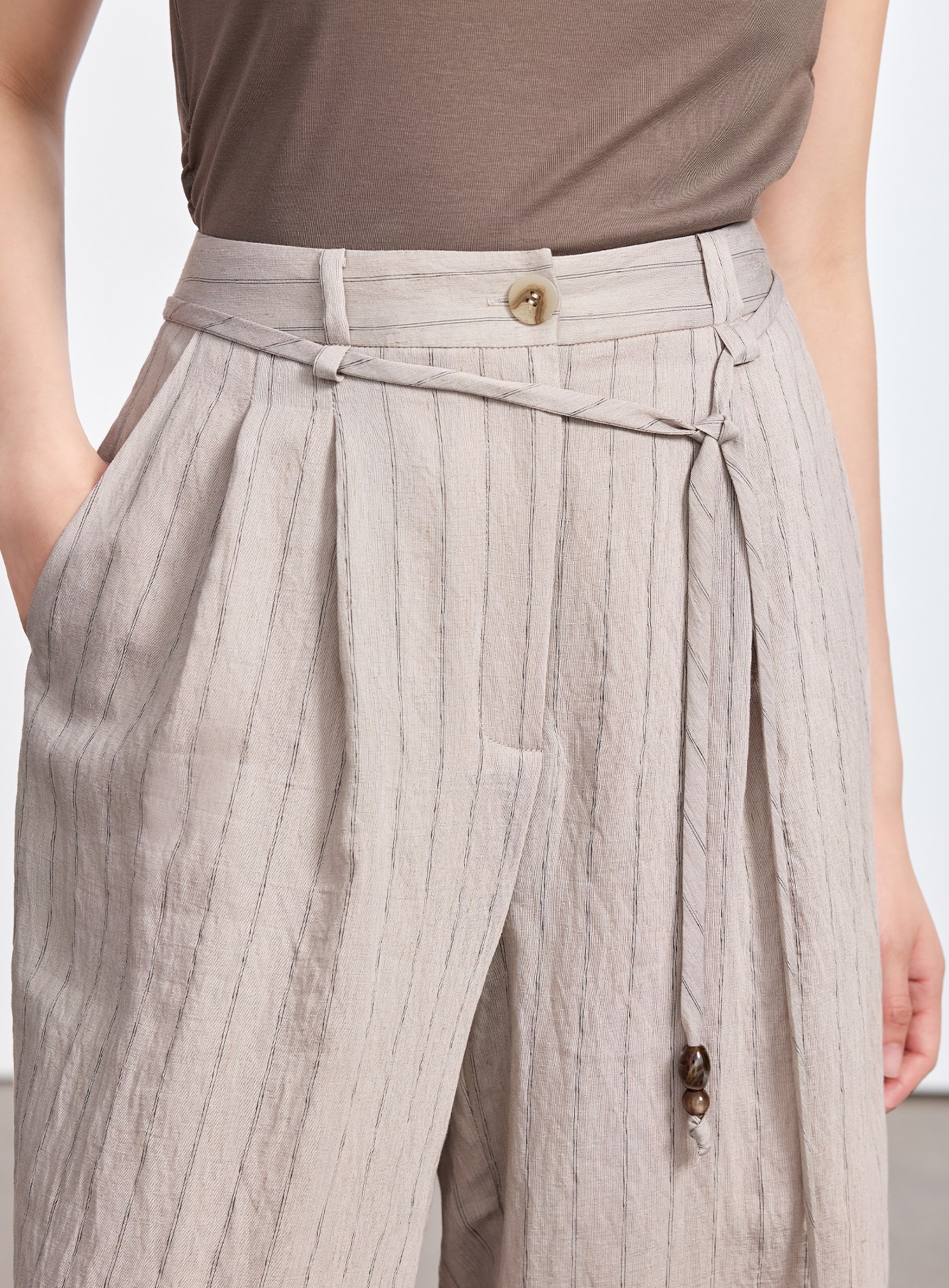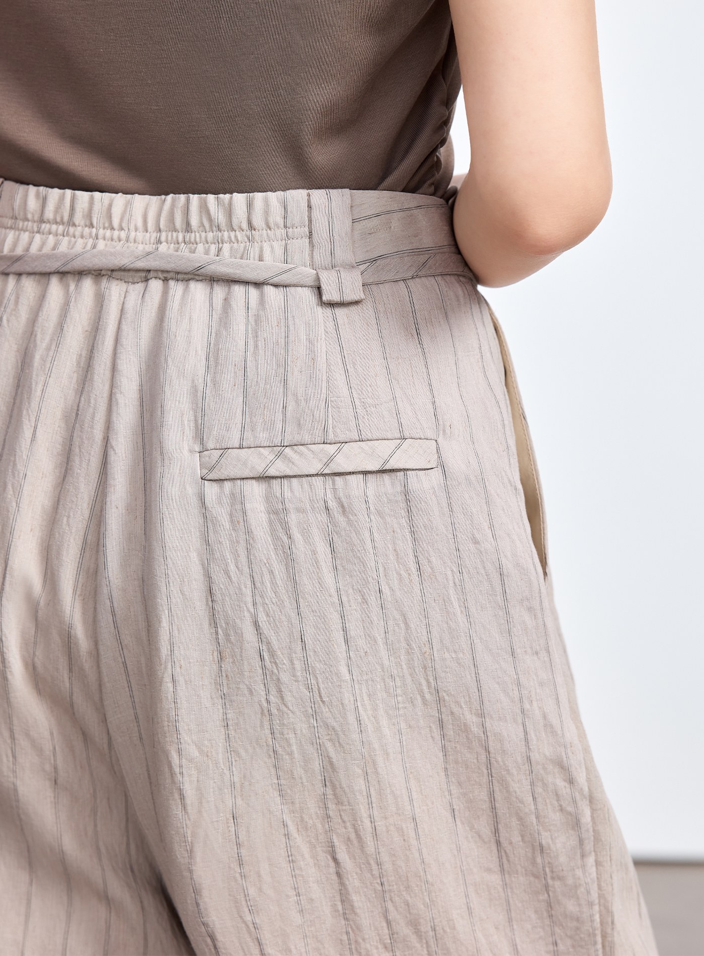 - 腰頭以本布斜裁抽繩設計,細節別緻