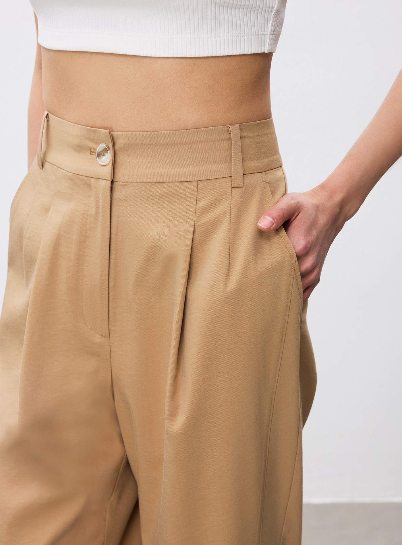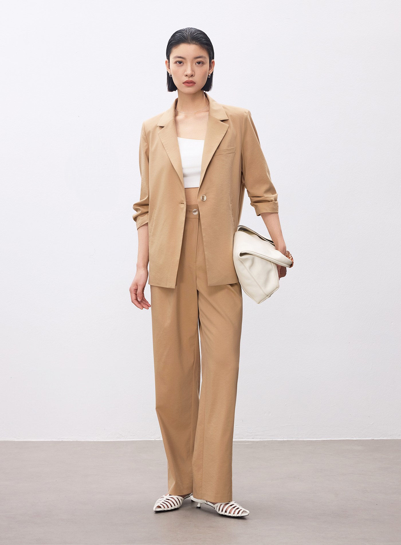 - 可與 ‘俐落抽褶七分袖西裝外套’ 搭成套裝
