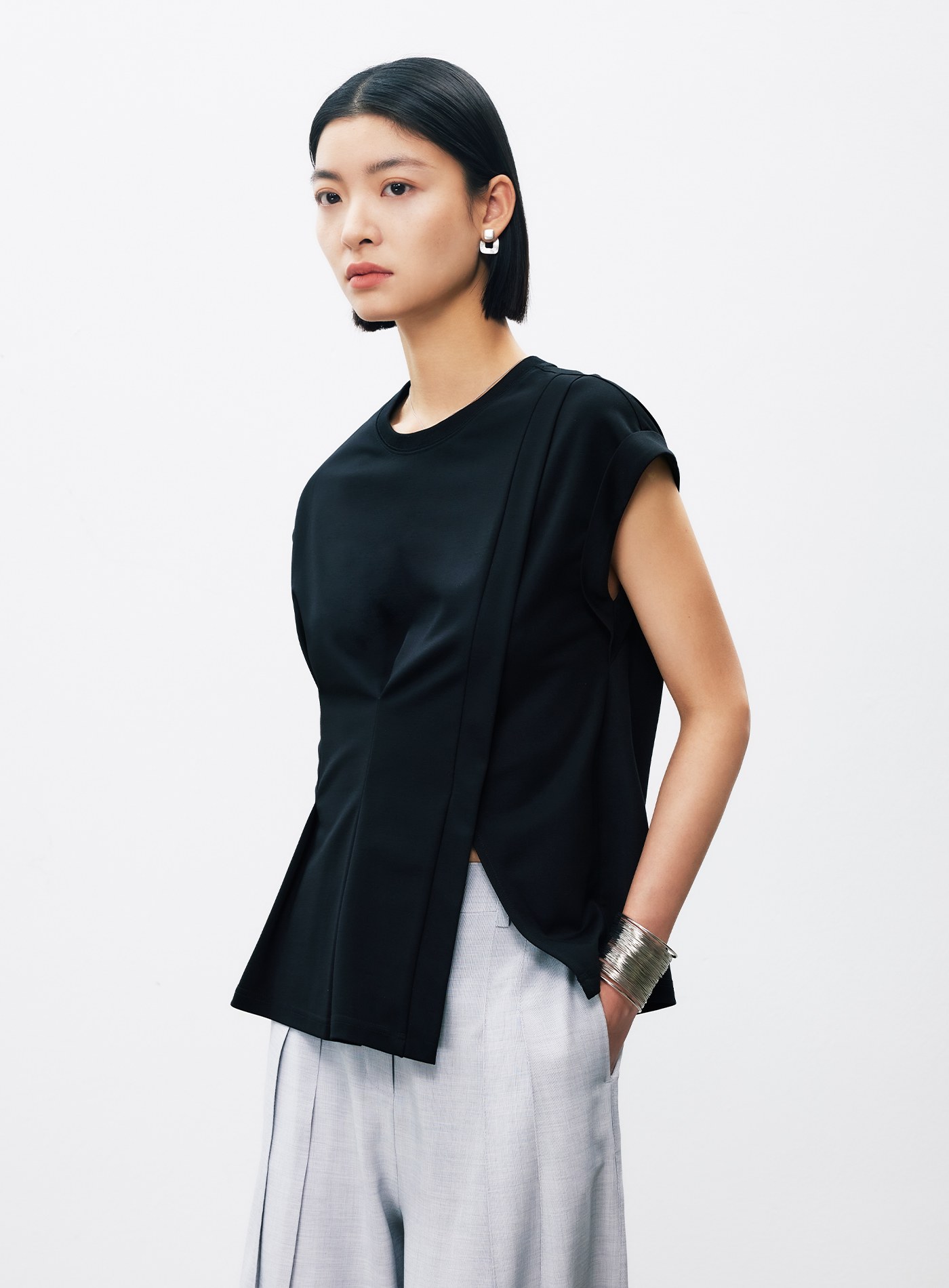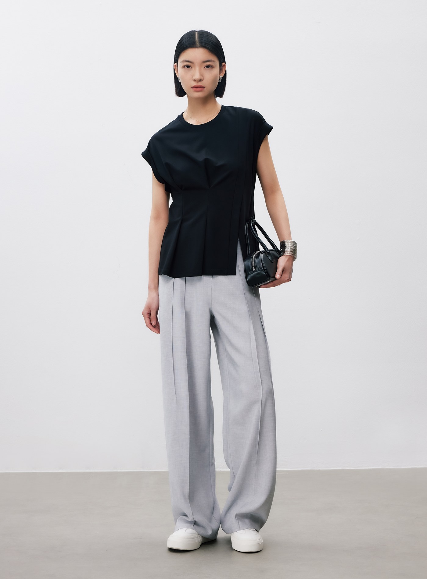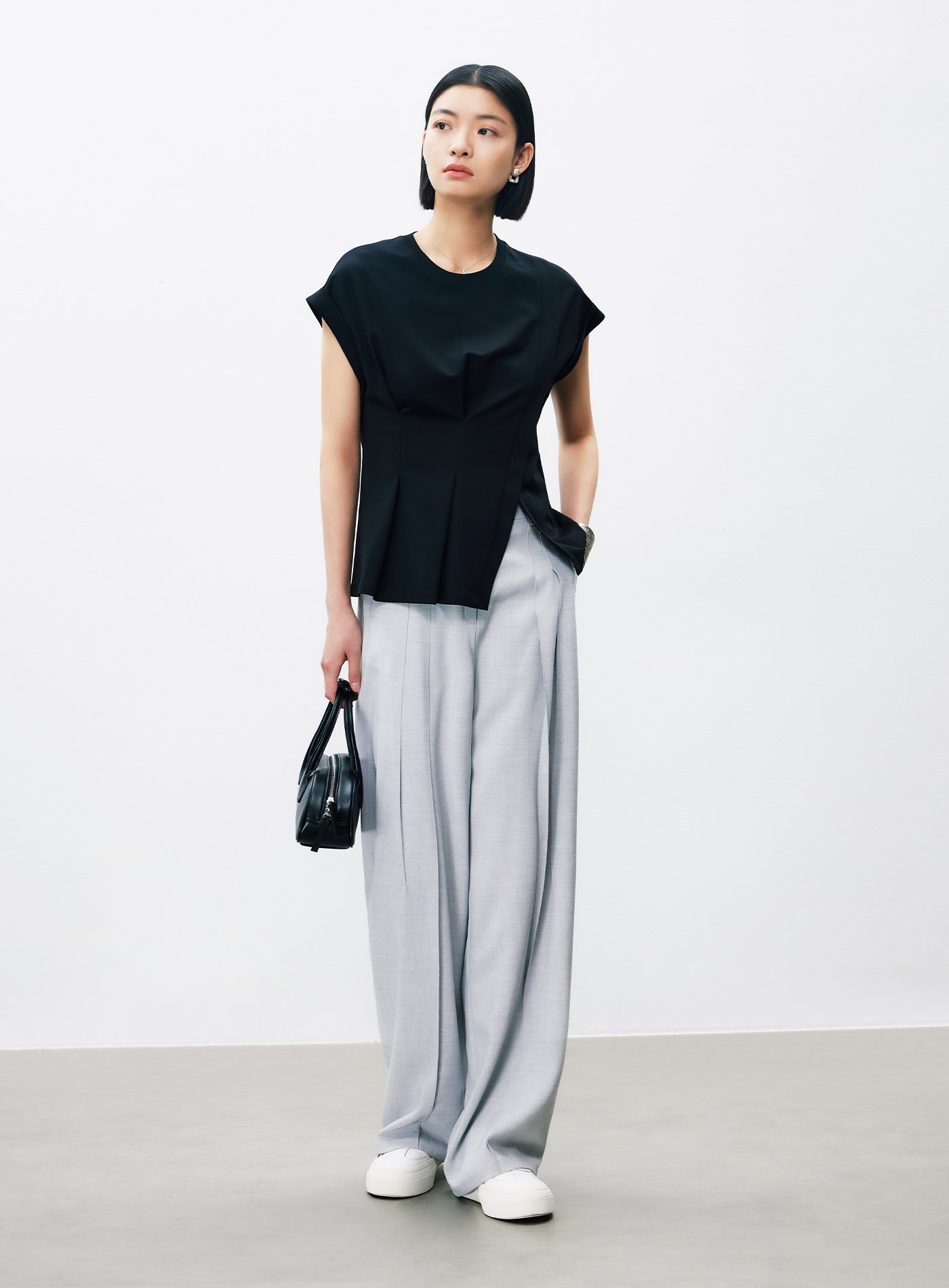 細摺肌理休閒短版上衣$57 USD