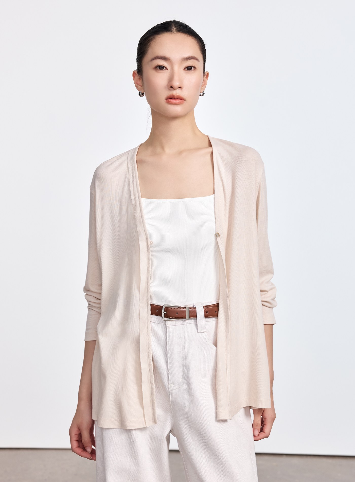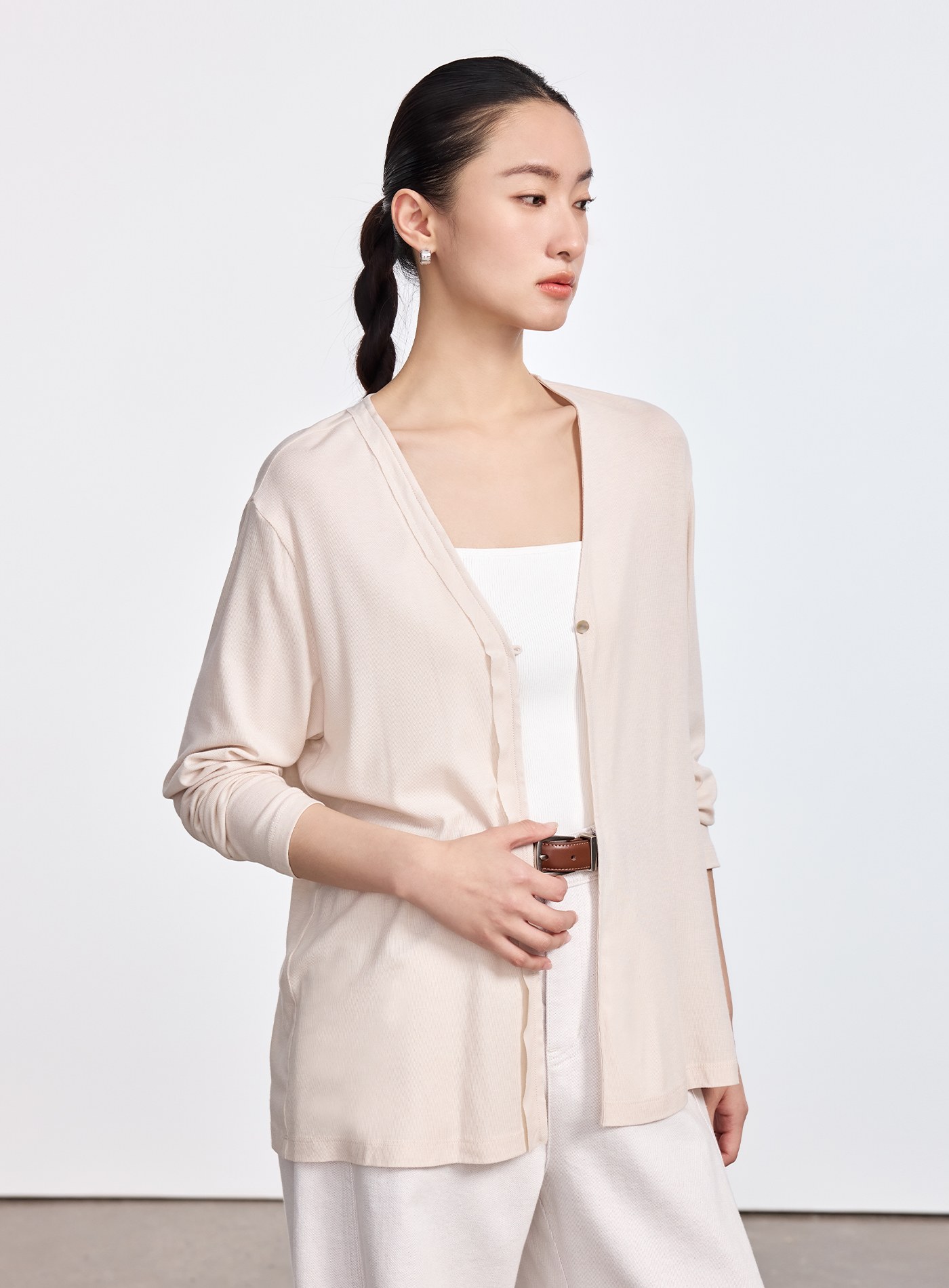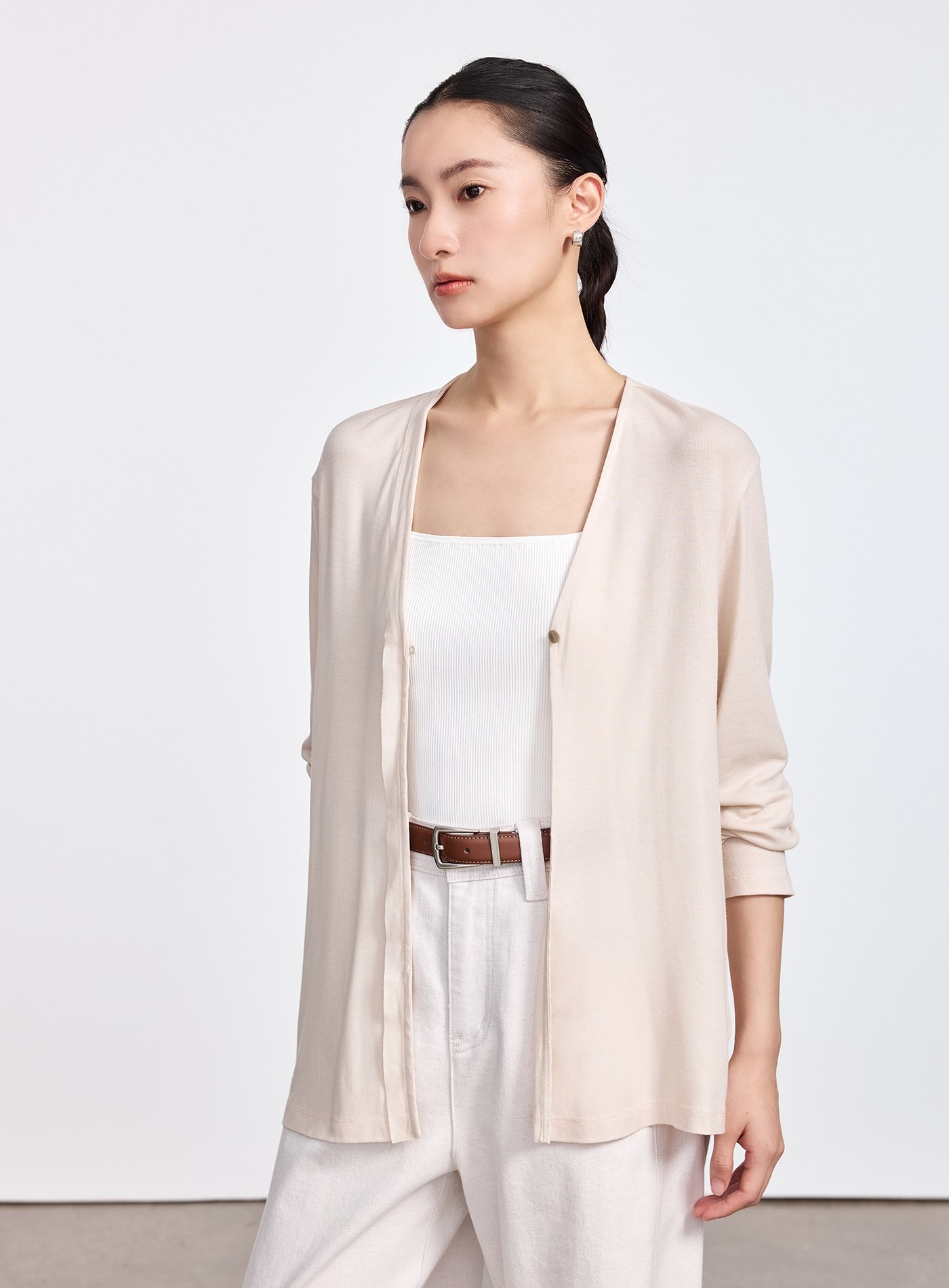 - 簡約一粒釦 V 領罩衫