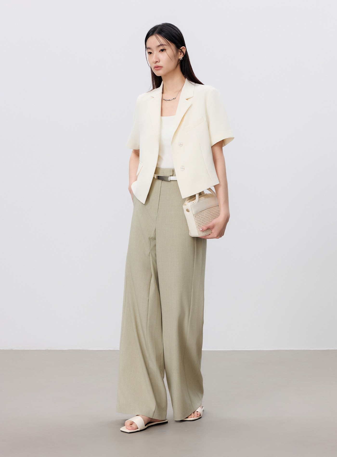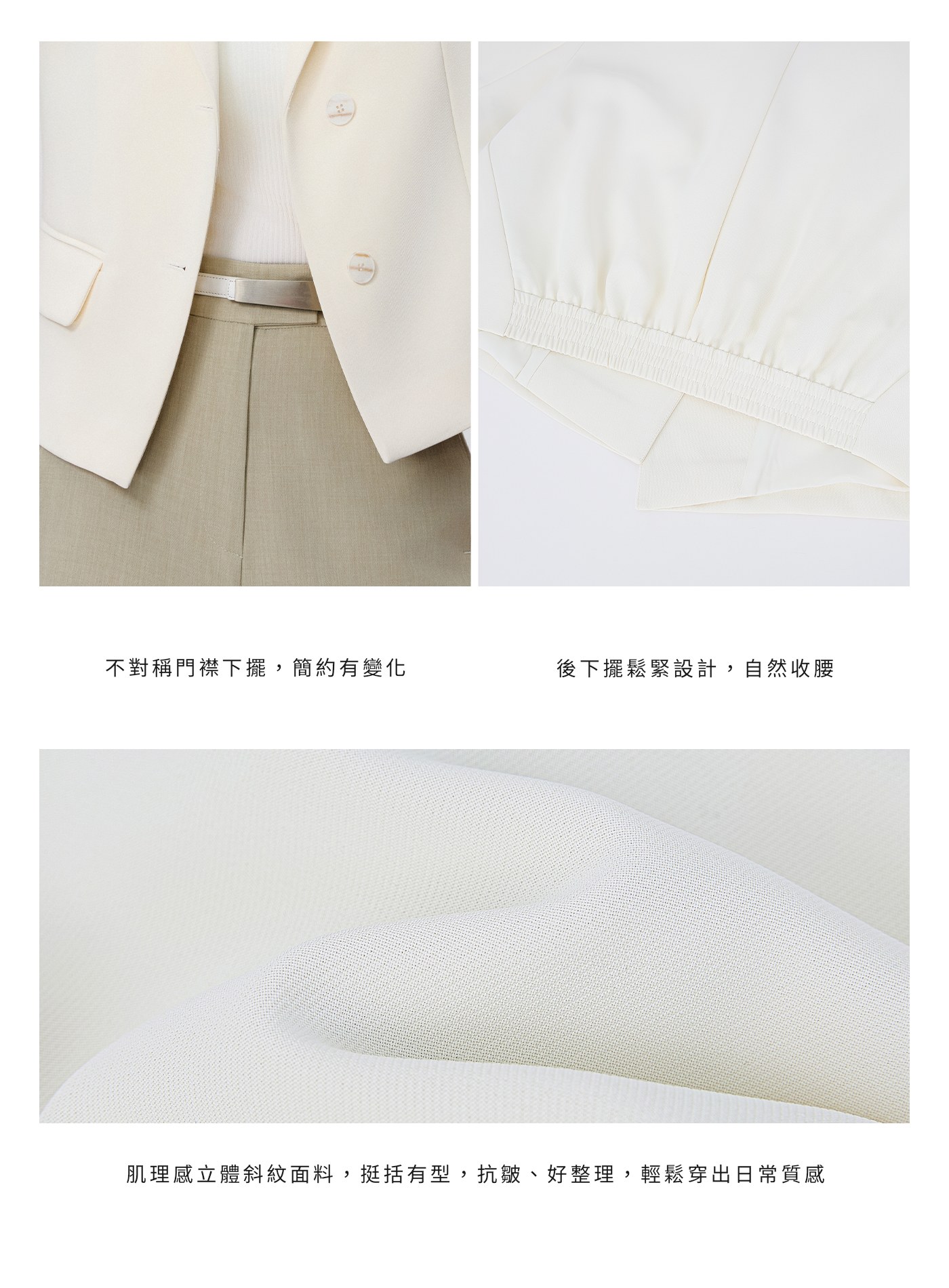 - 選用肌理感立體斜紋面料,挺括有型,抗皺、好整理,輕鬆穿出日常質感