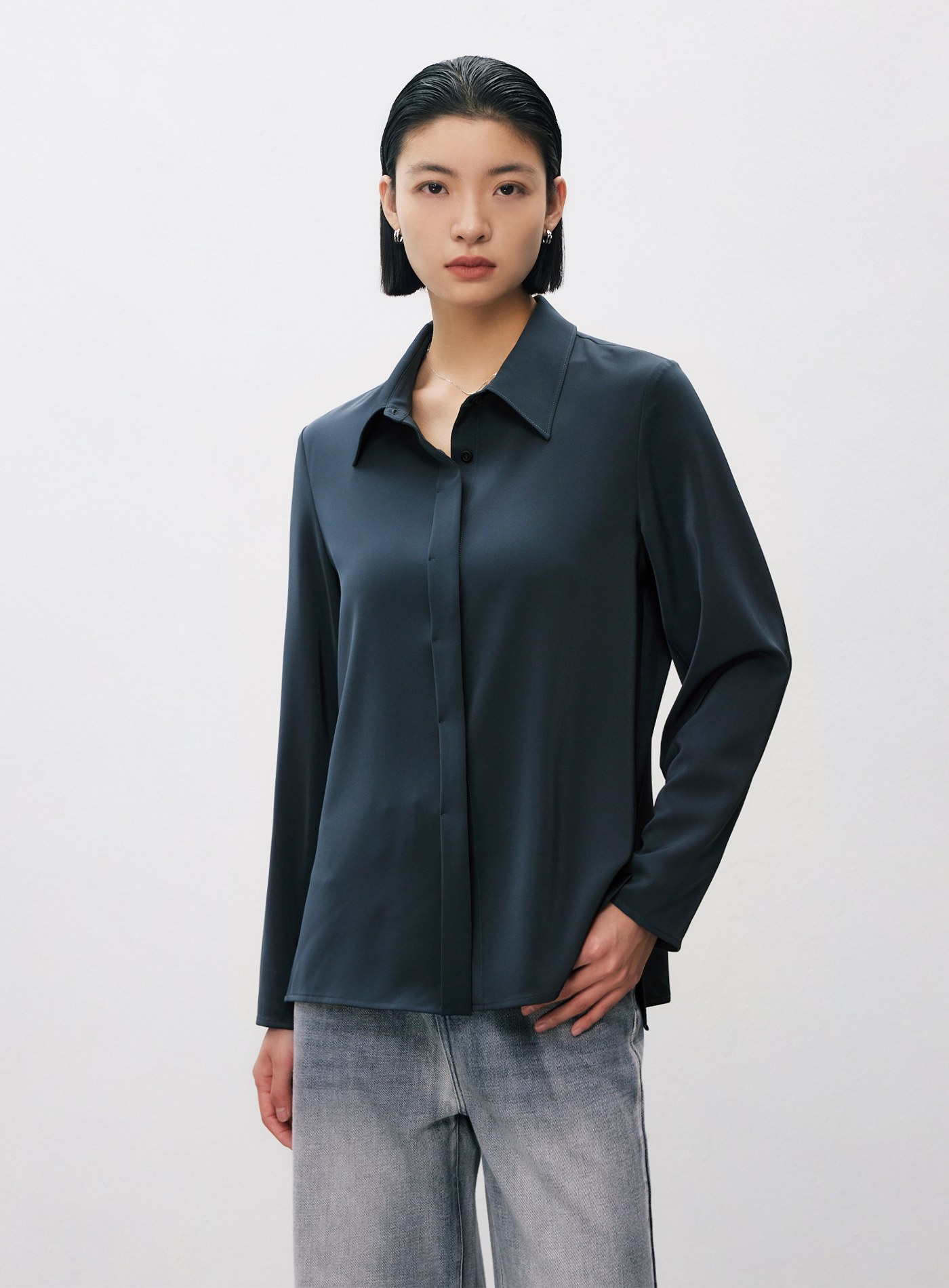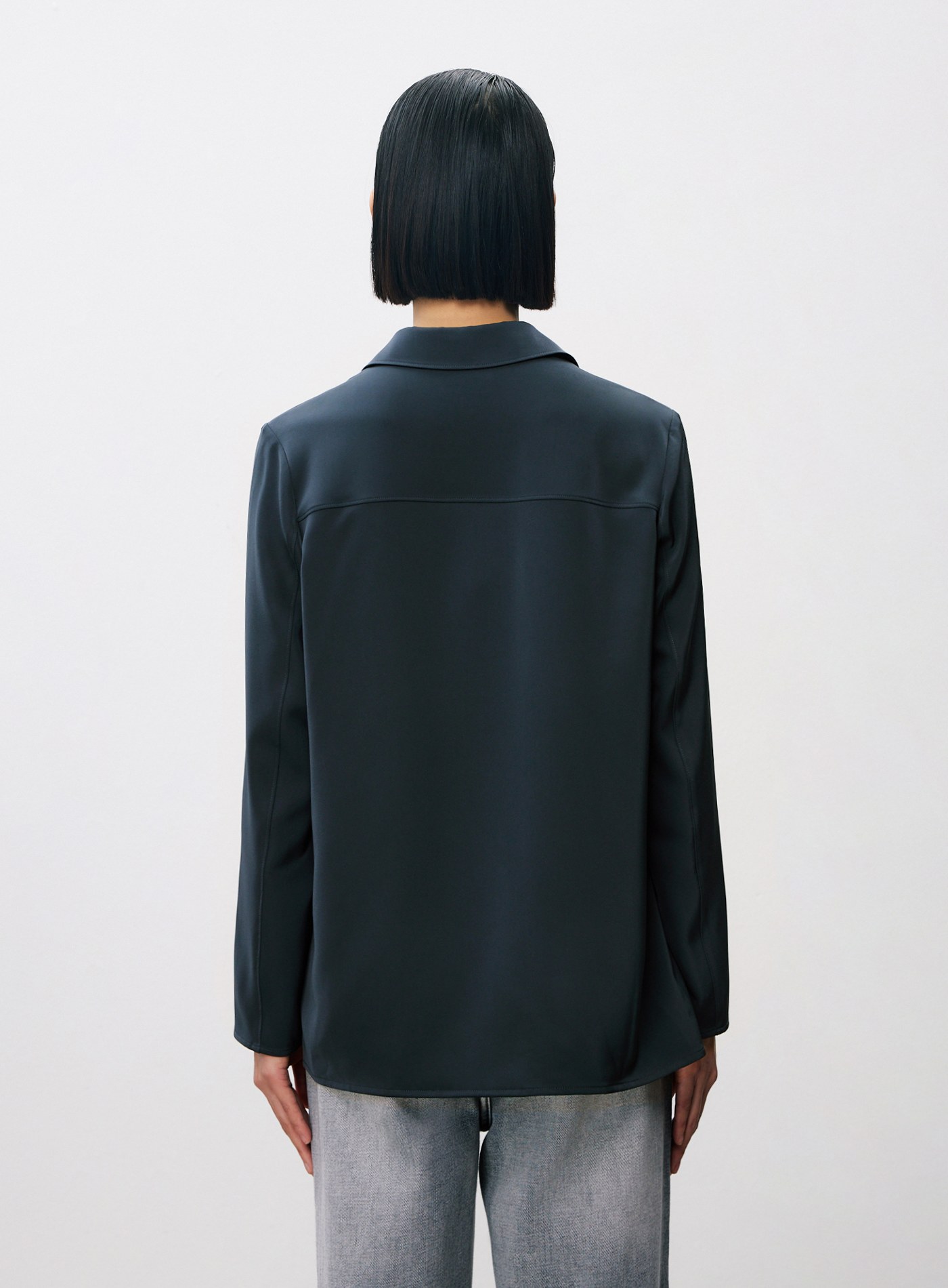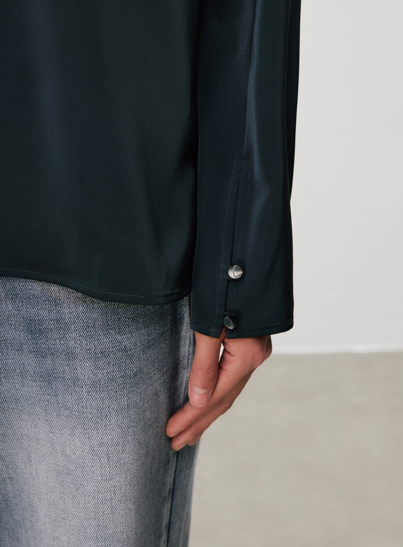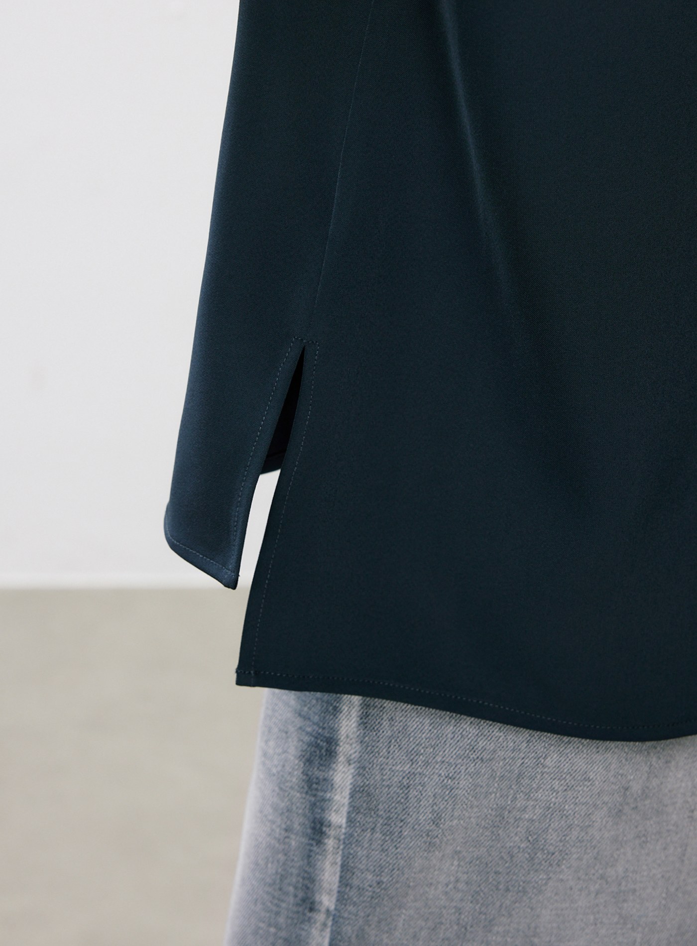 不對稱領彈力綁帶長袖襯衫$63 USD