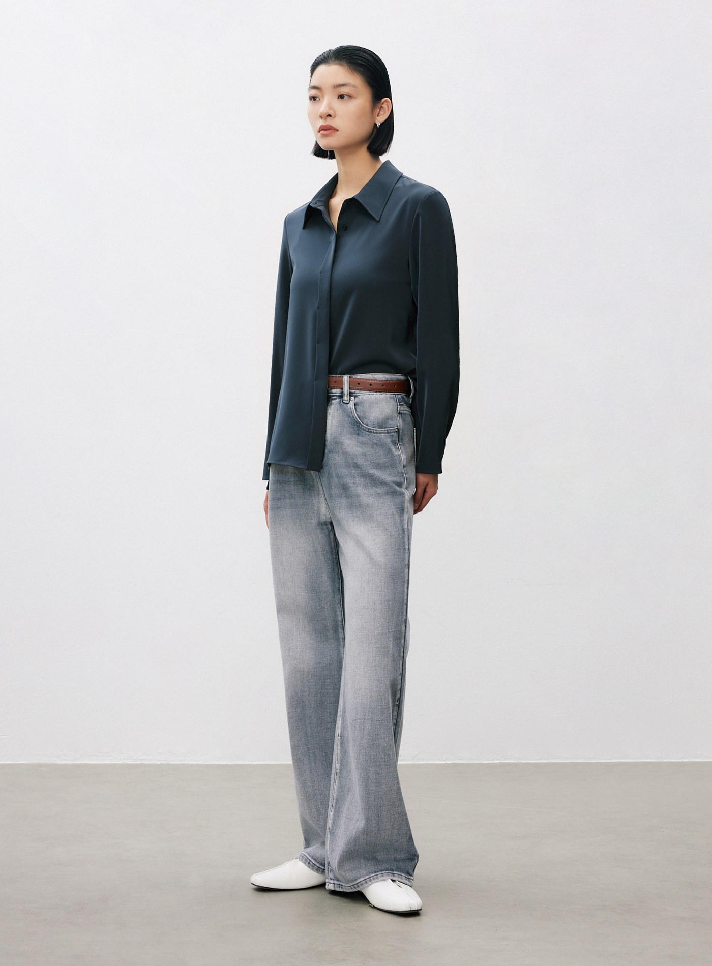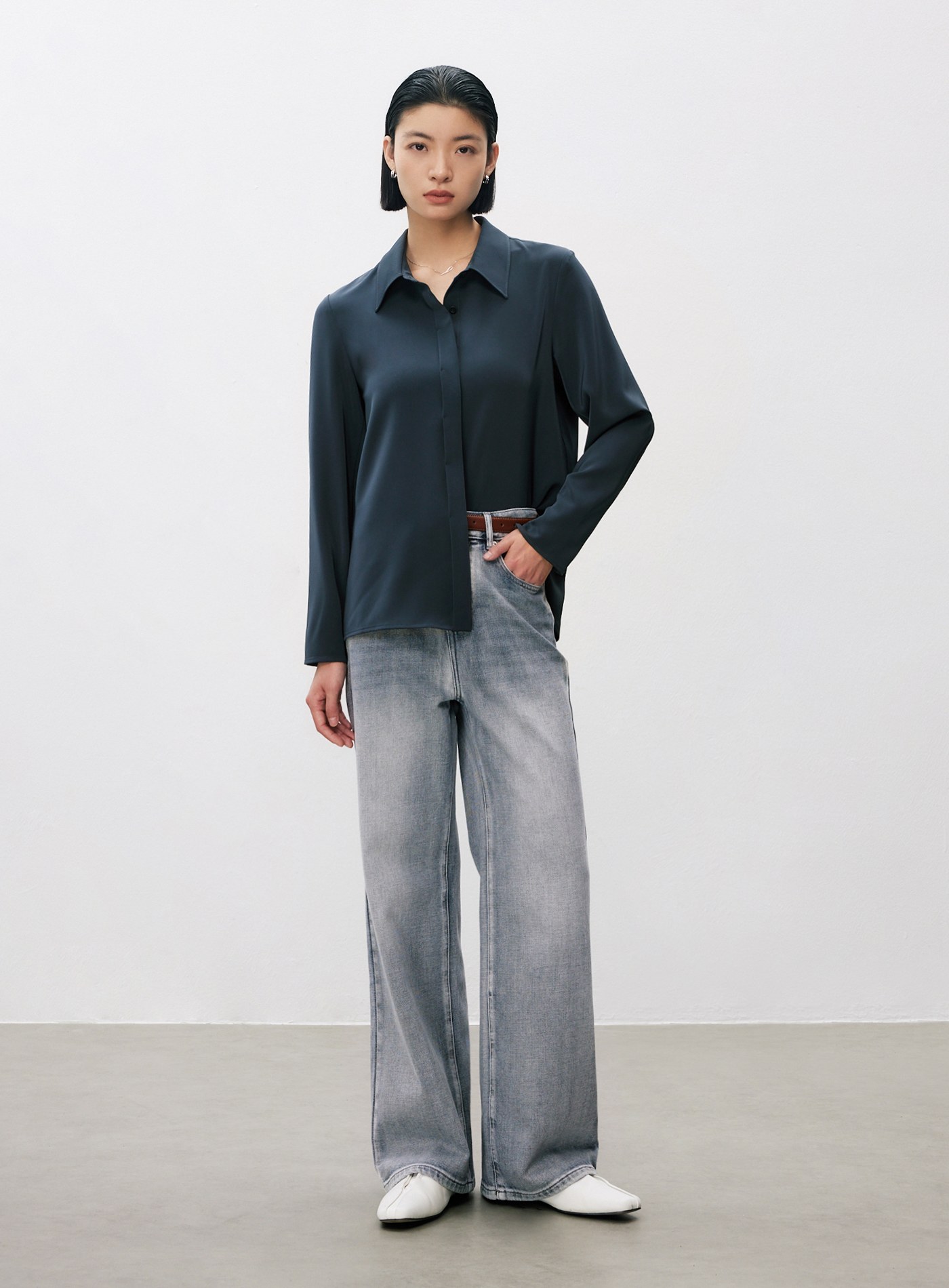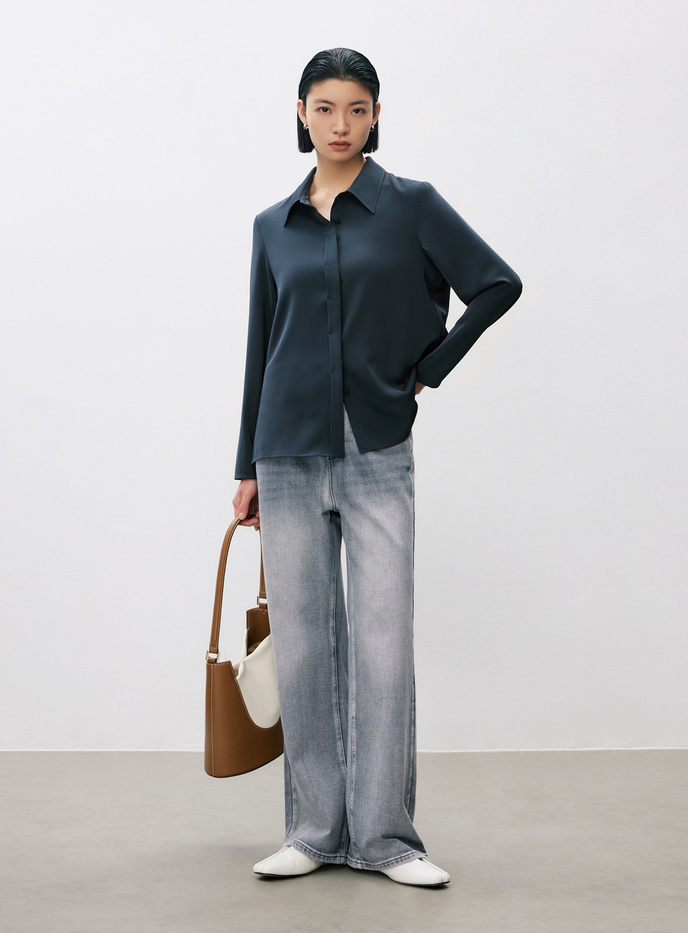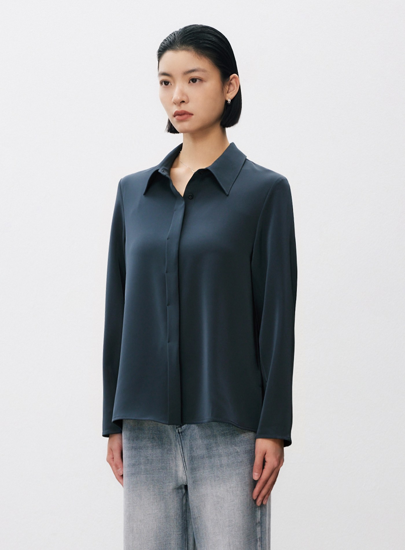 不對稱領彈力綁帶長袖襯衫$63 USD