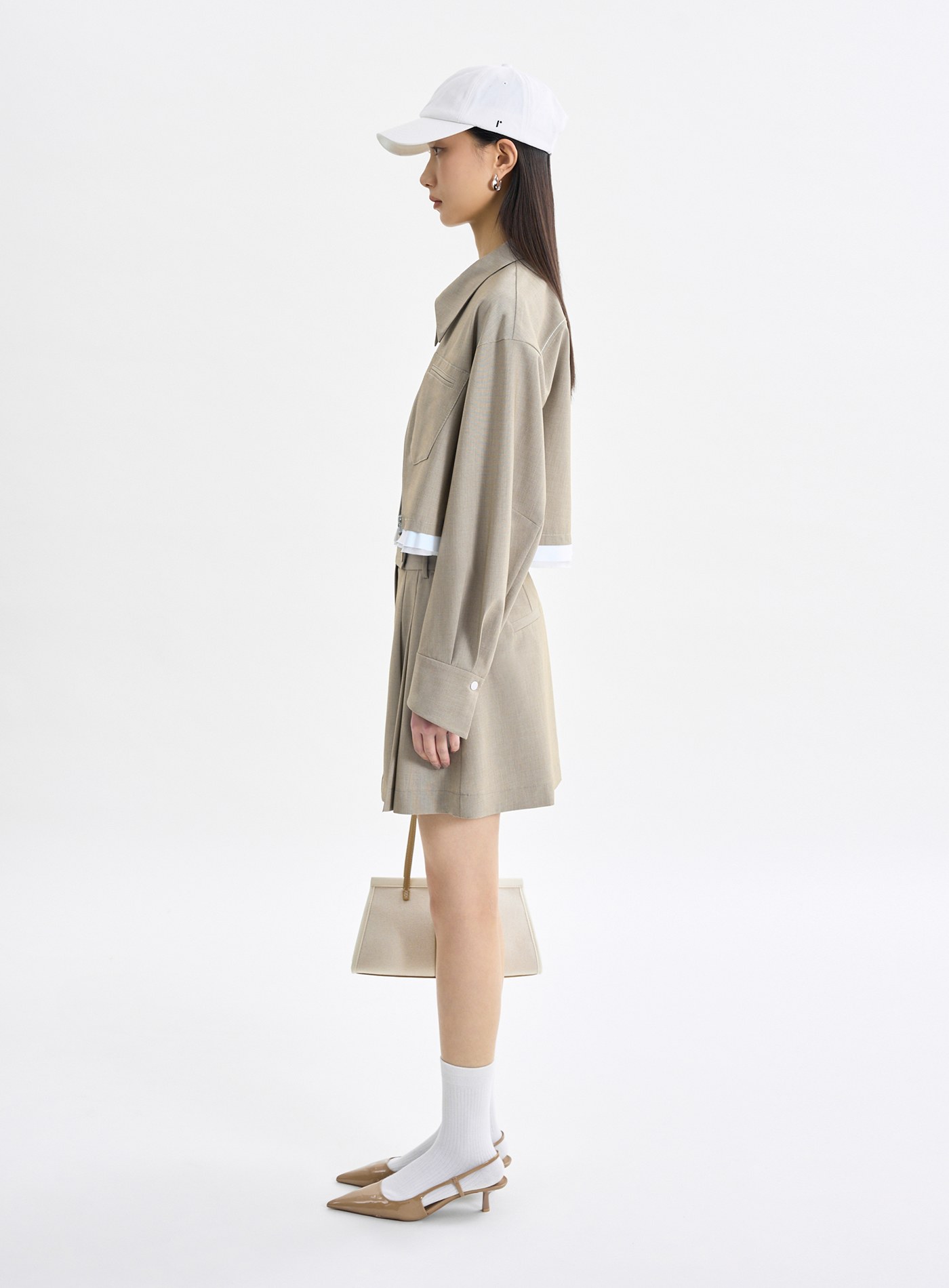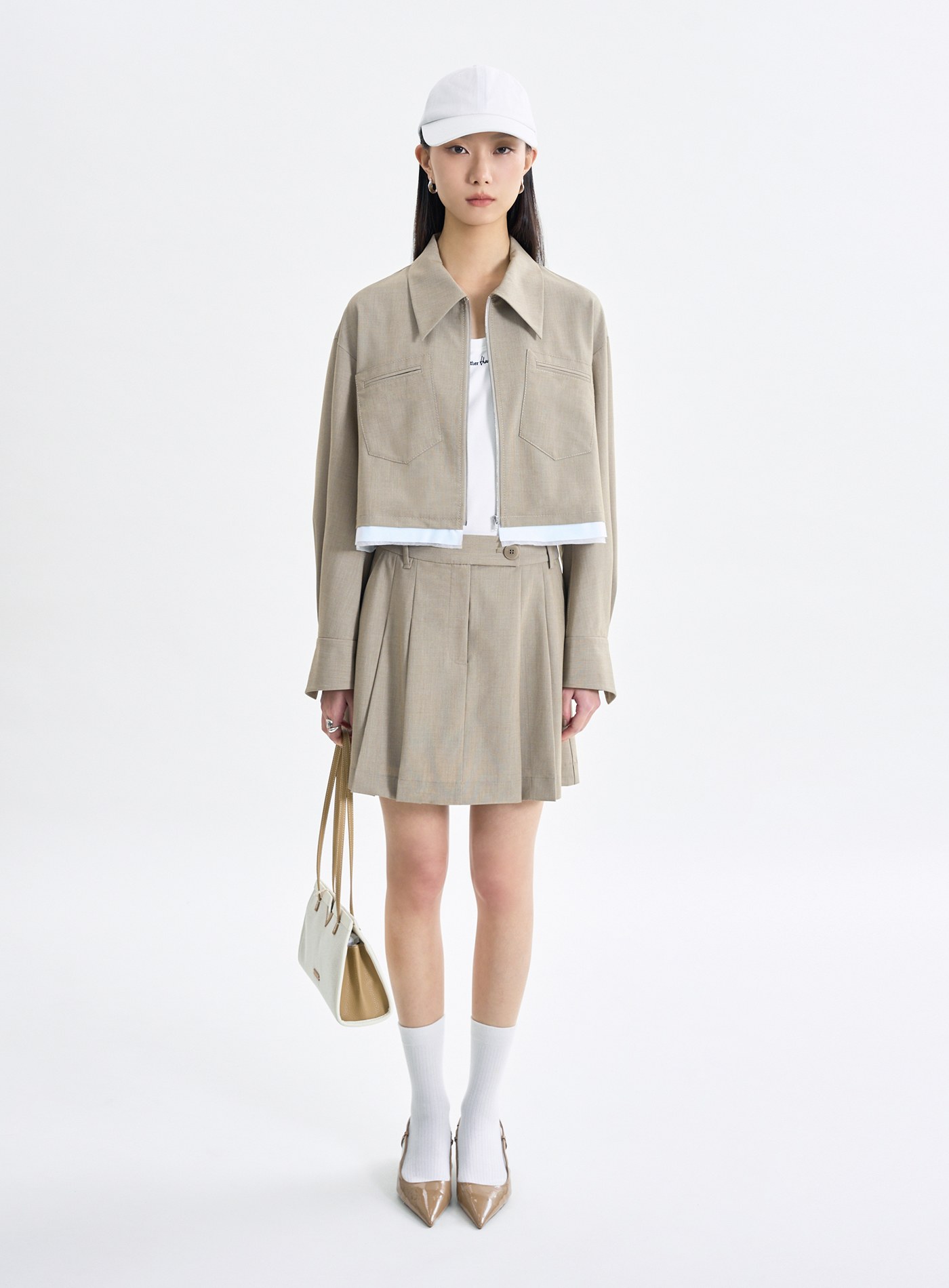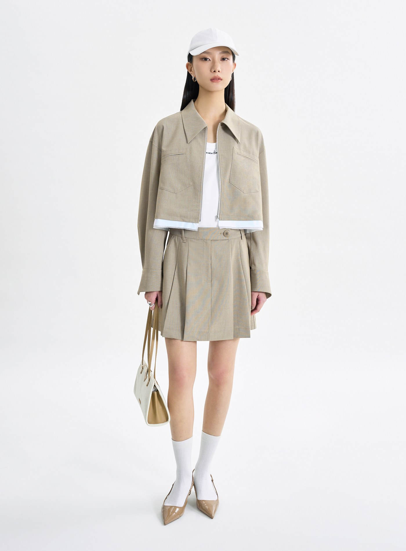 - 可與 '學院風立領雙貼袋拉鍊上衣‘ 搭成套裝