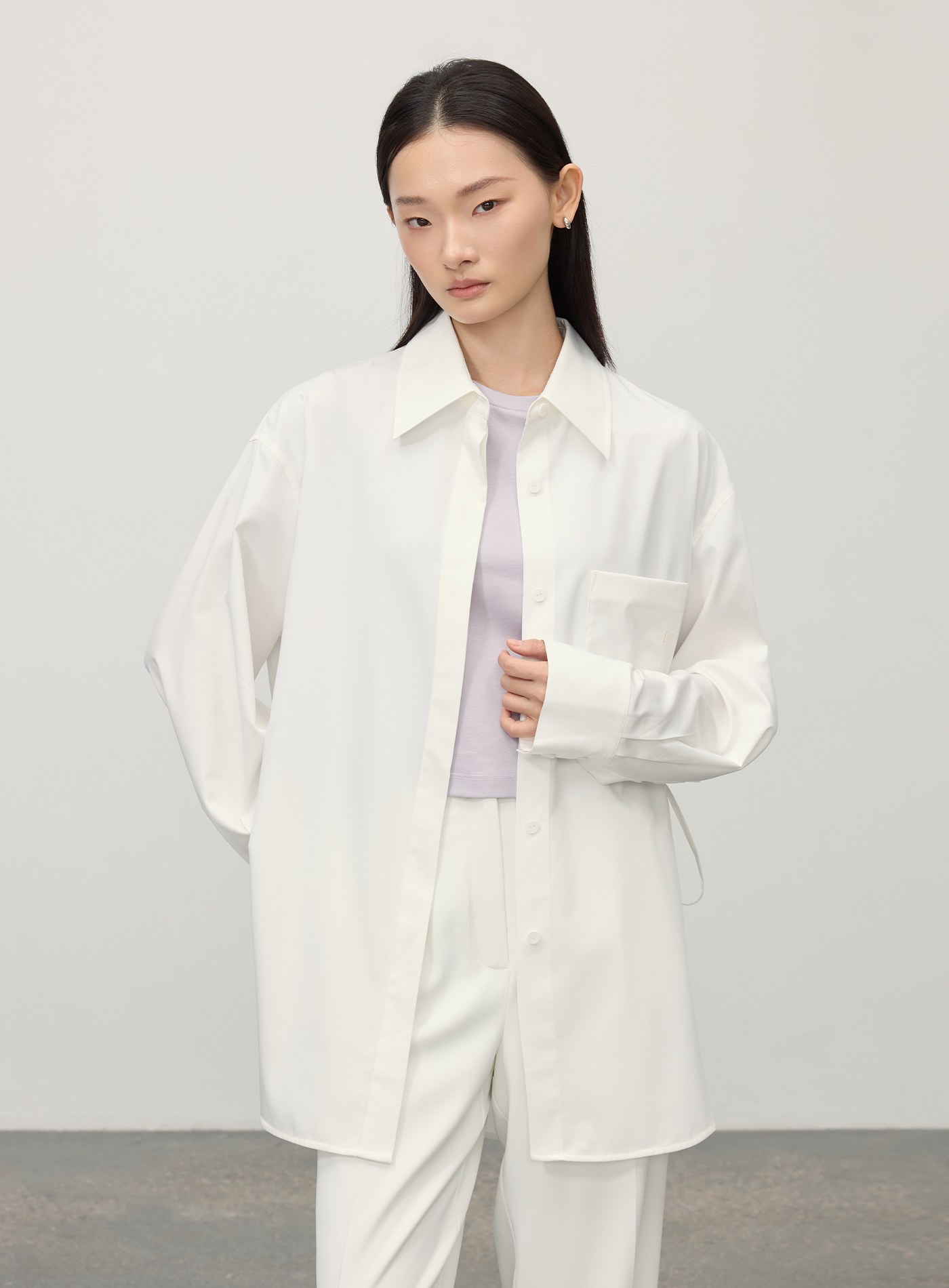 - 選用棉、天絲與桑蠶絲混紡面料,布面光滑且富有肌理感。