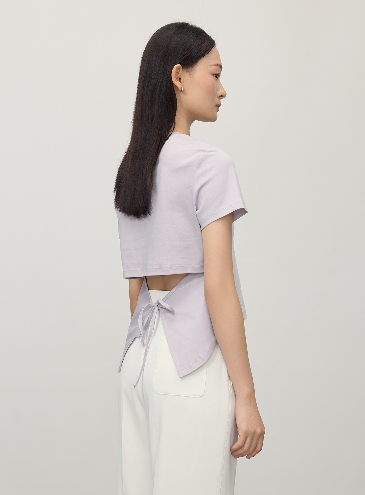 - 後背繫帶式設計,可自由調節做造型