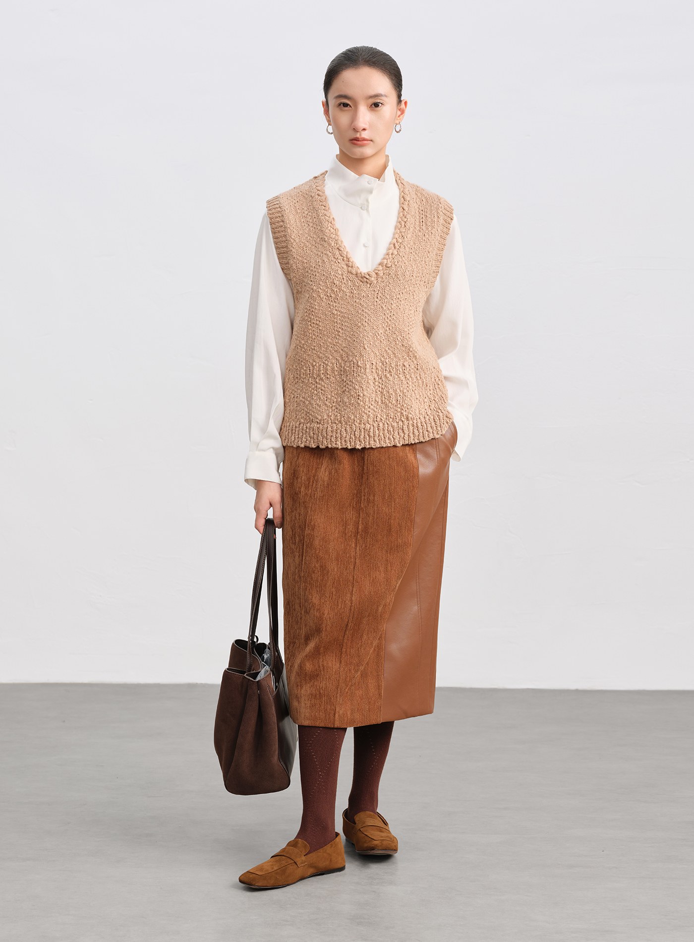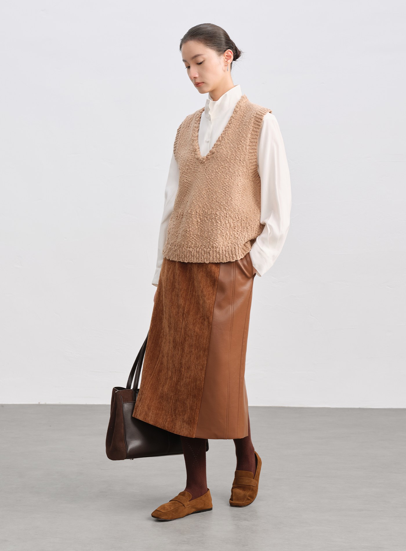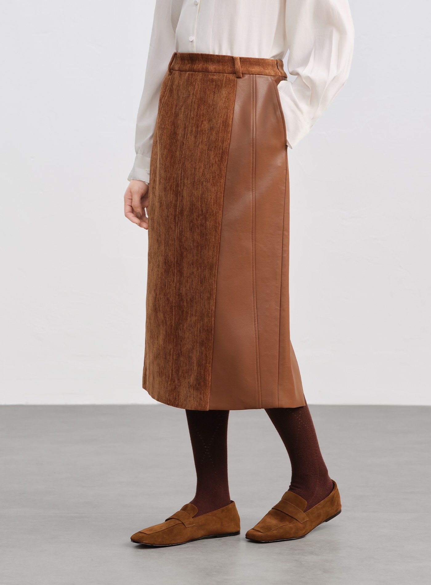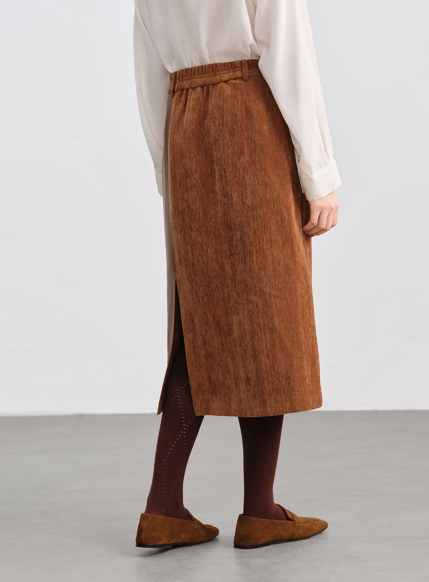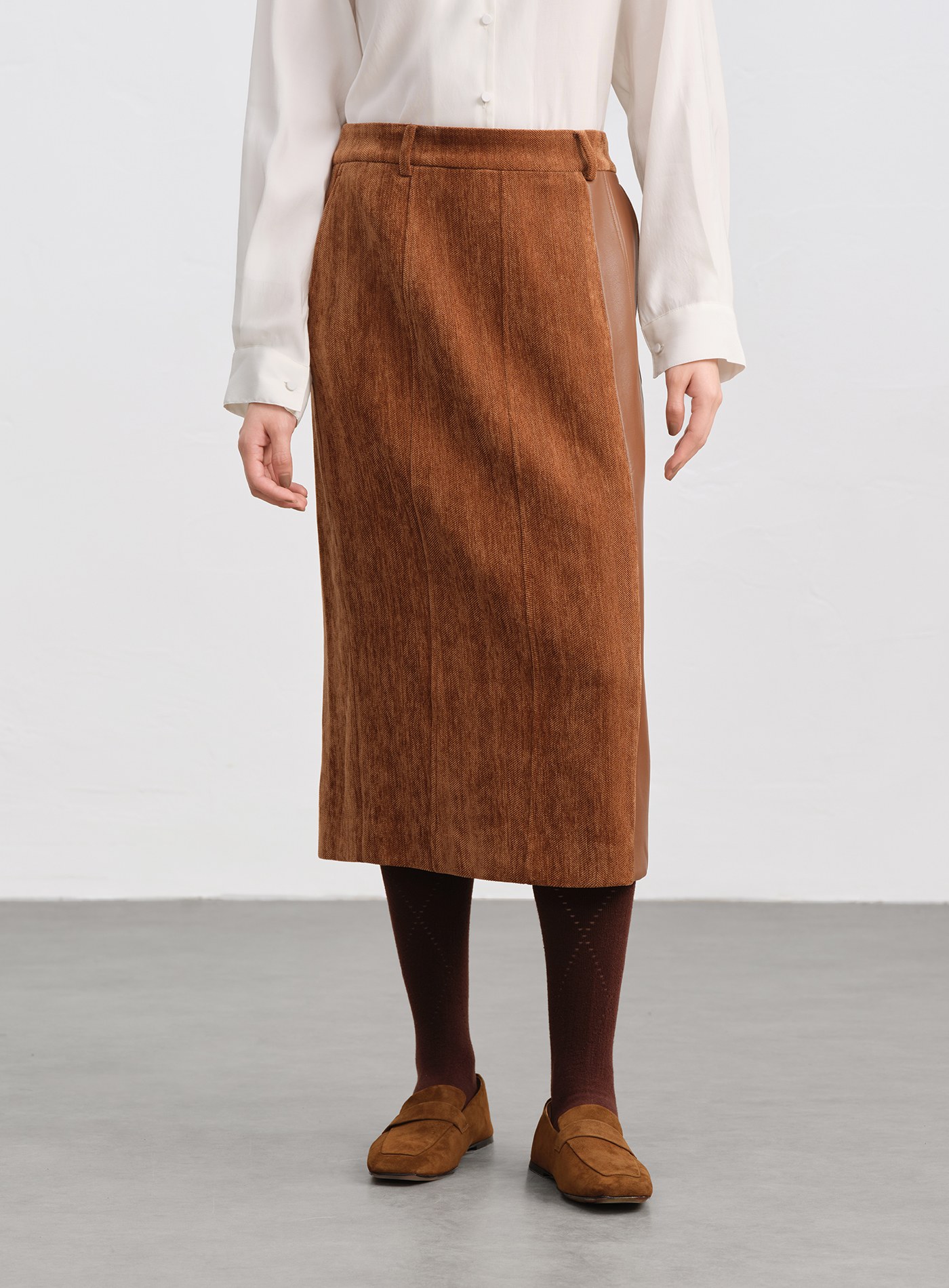 - 直身半身裙剪裁,裙身縱向分割線優化比例