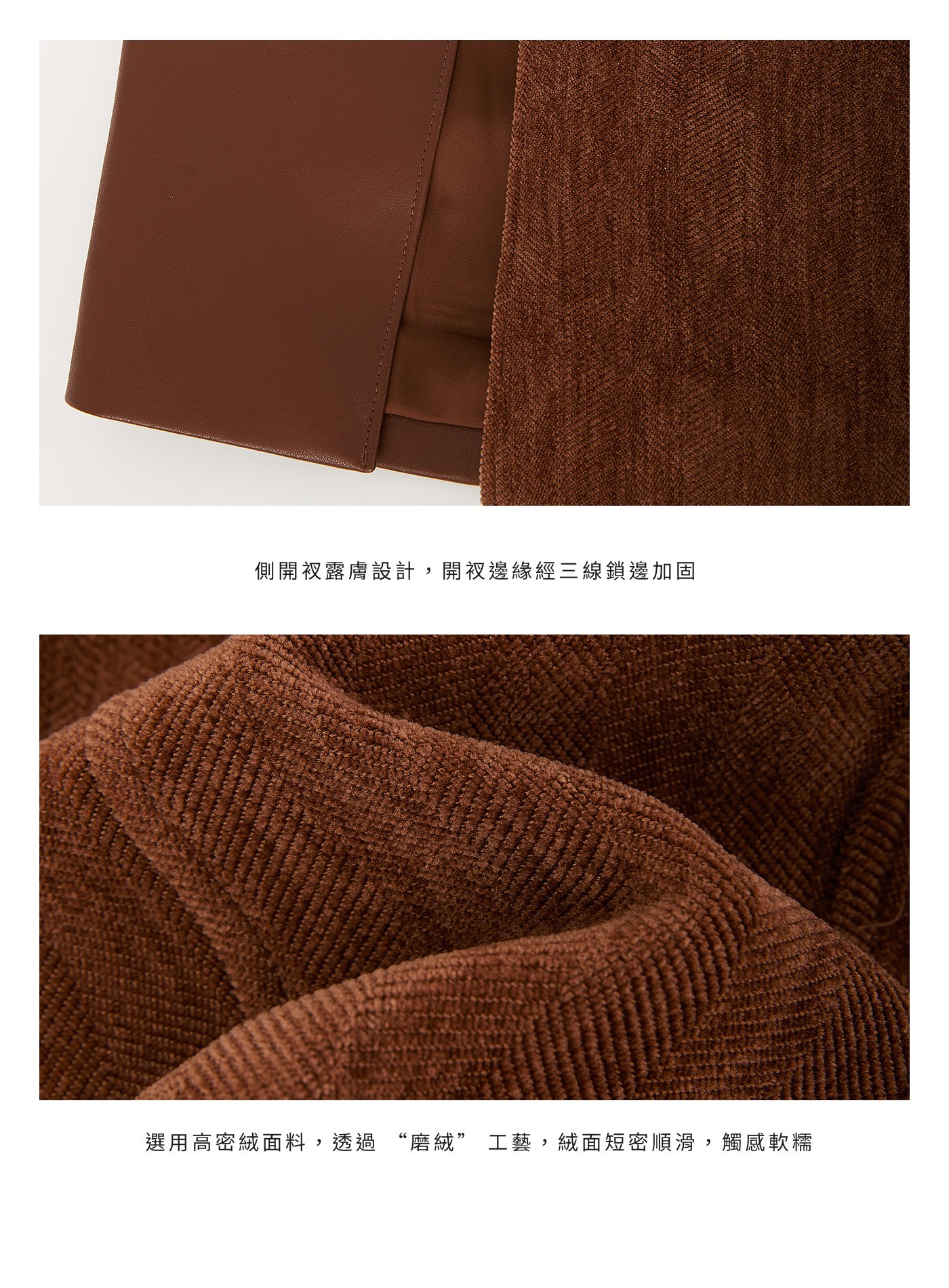 - 高密絨面料,透過 “磨絨” 工藝,絨面短密順滑,觸感軟糯