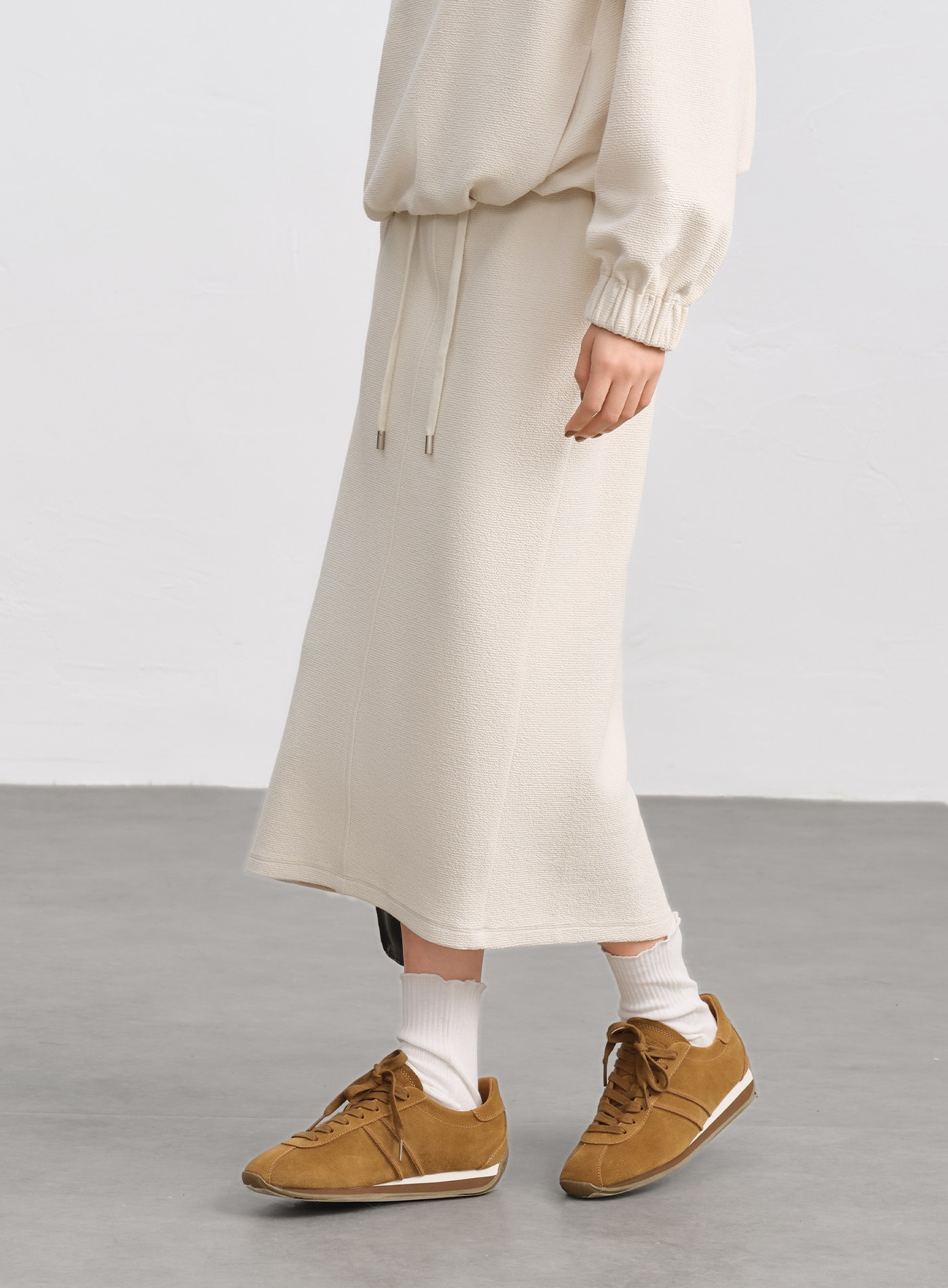 - H型廓形半裙,及踝長度自然延伸腿部線條,修飾下身比例,更顯纖長