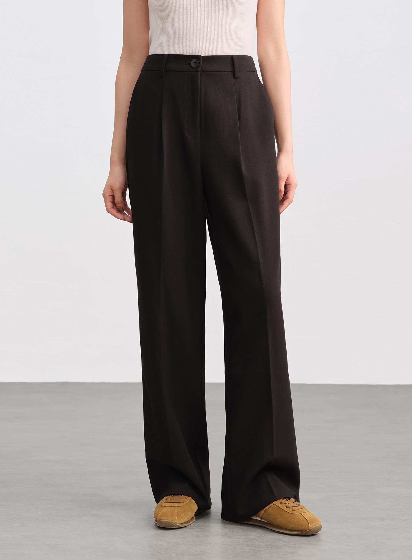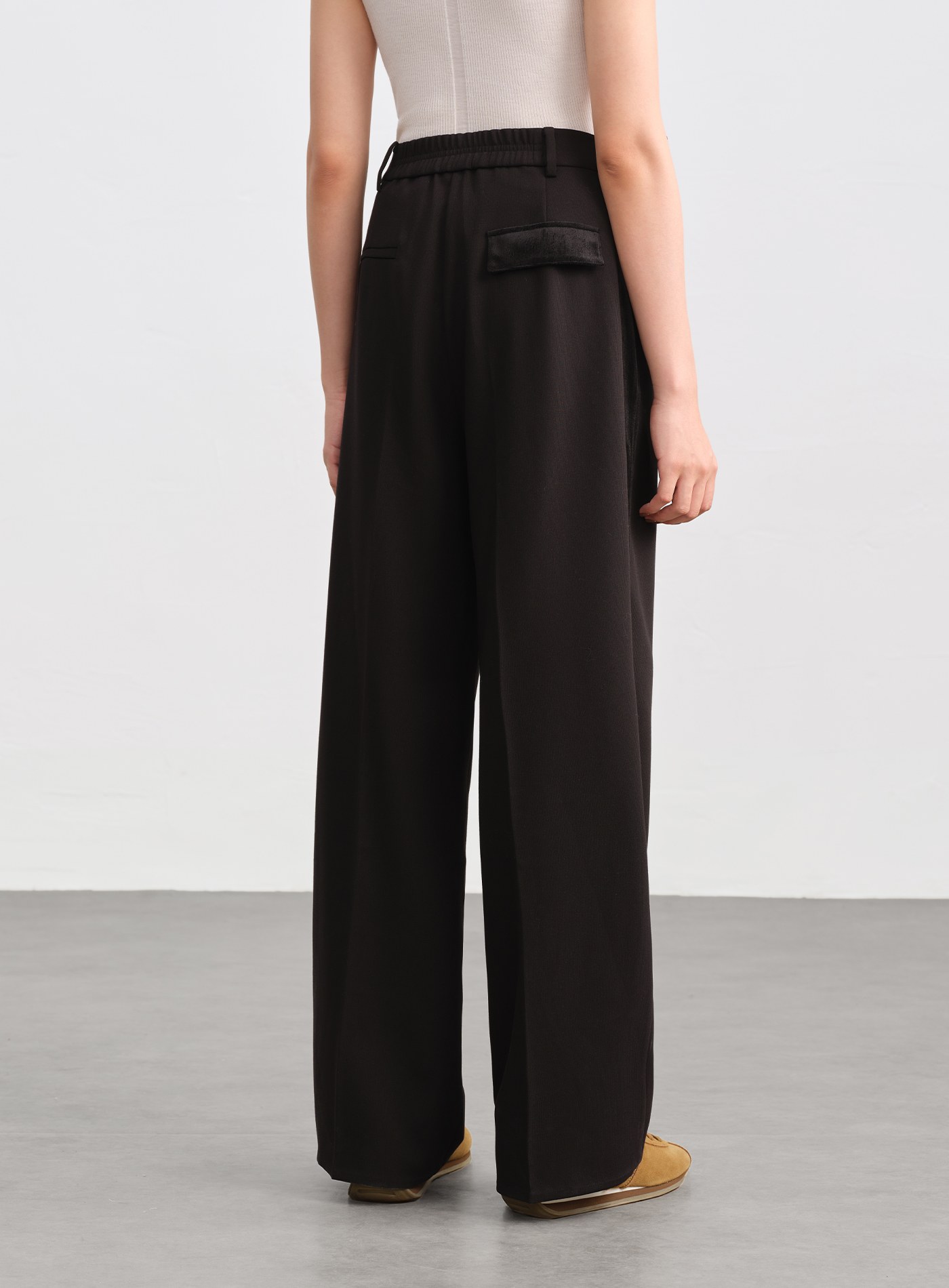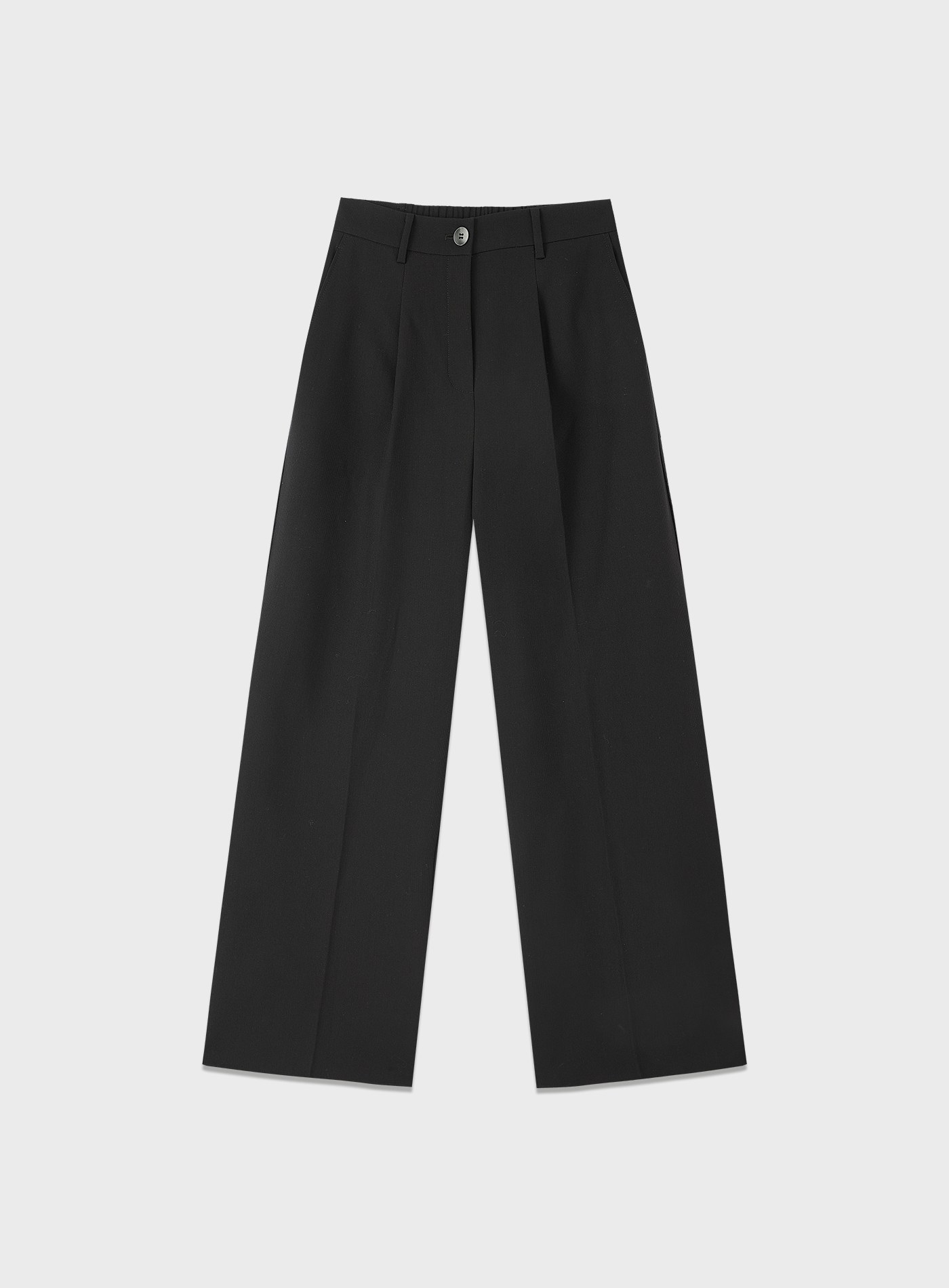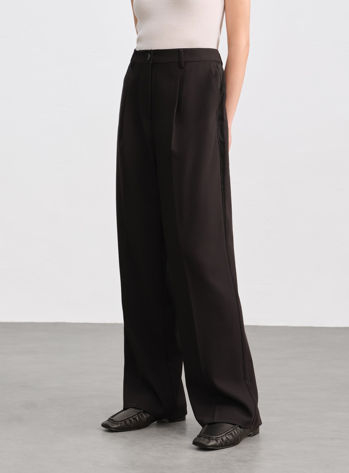 - 褲身前後片採用斜向裁剪,以短絨坑條絨素材拼接,自然修飾腿型