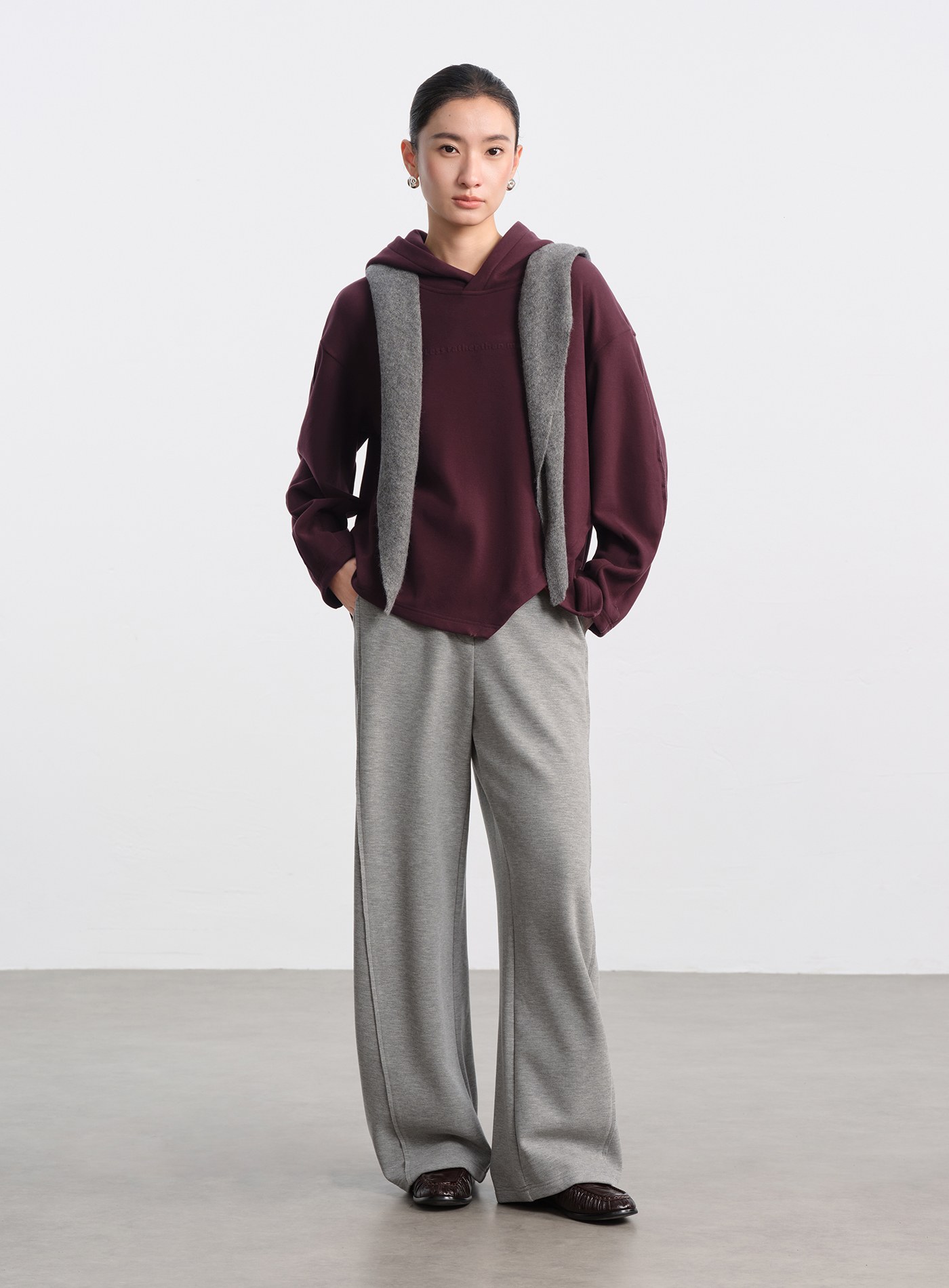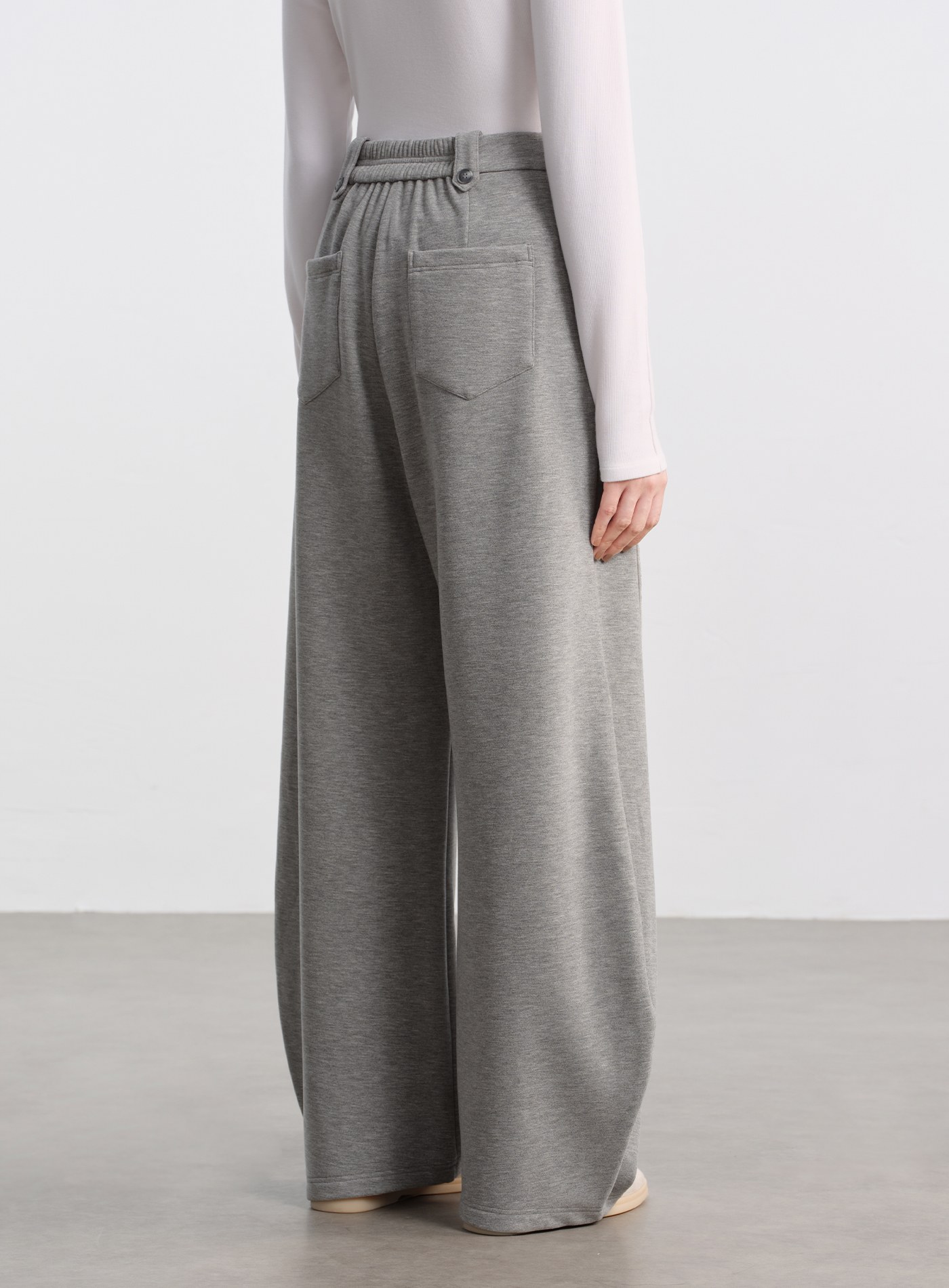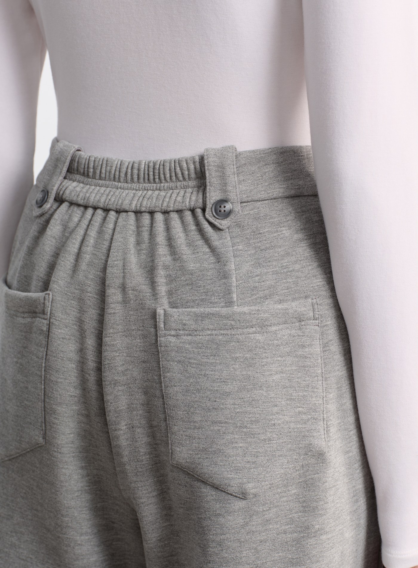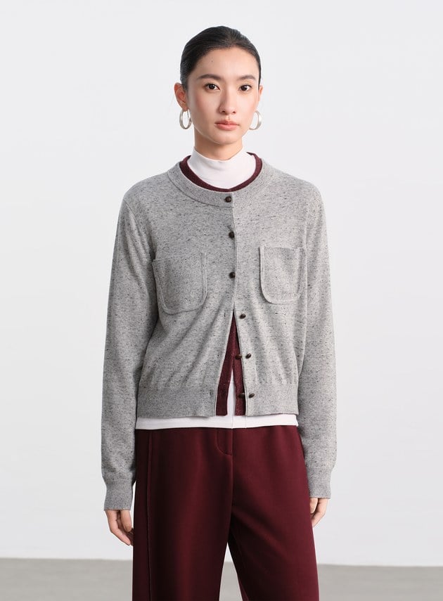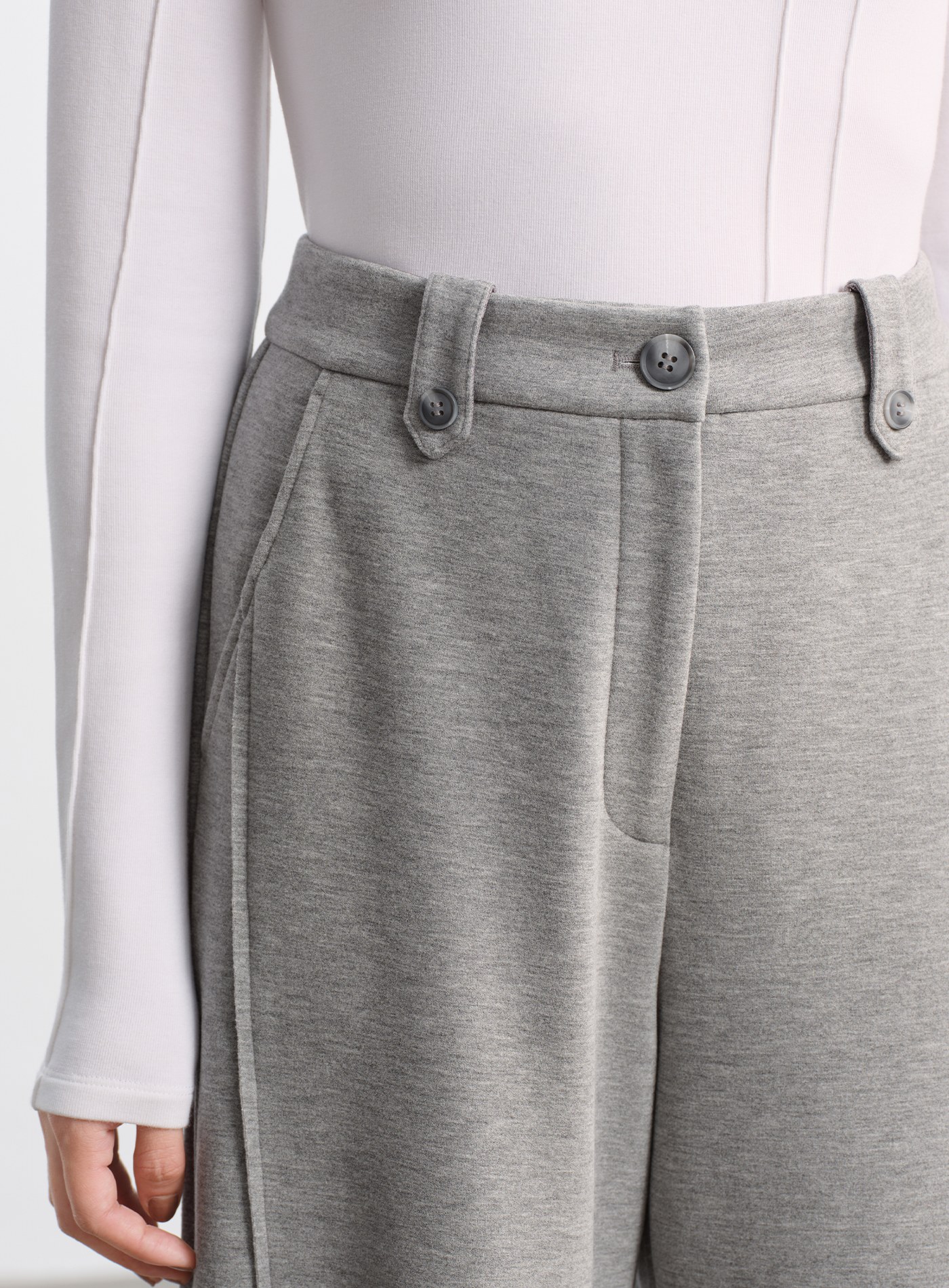 - 面料採用雙層複合針織結構,外層乾淨俐落、手感順滑;內層以短絨般的柔軟質地包覆肌膚,穿上宛如第二層肌膚般貼合