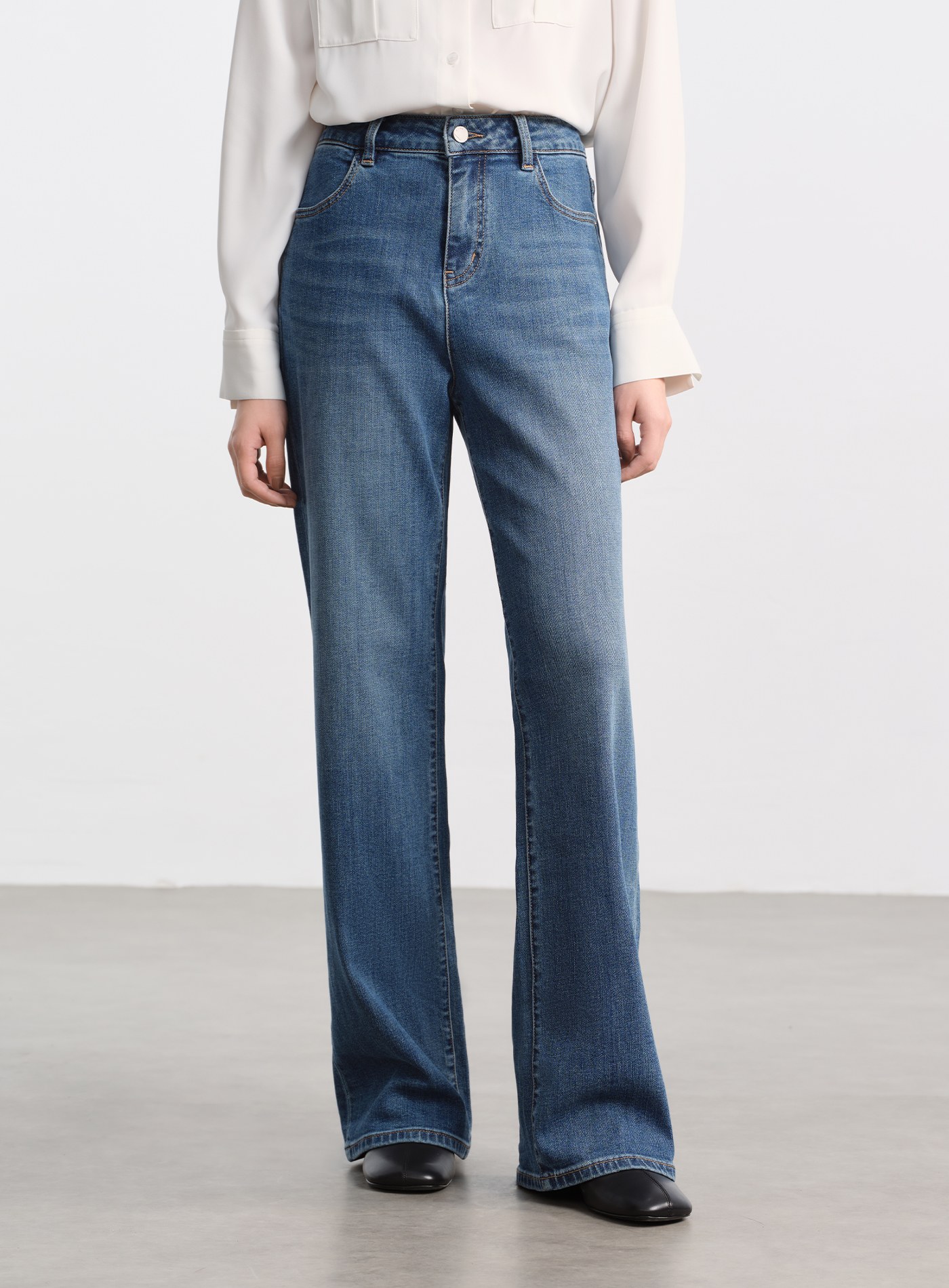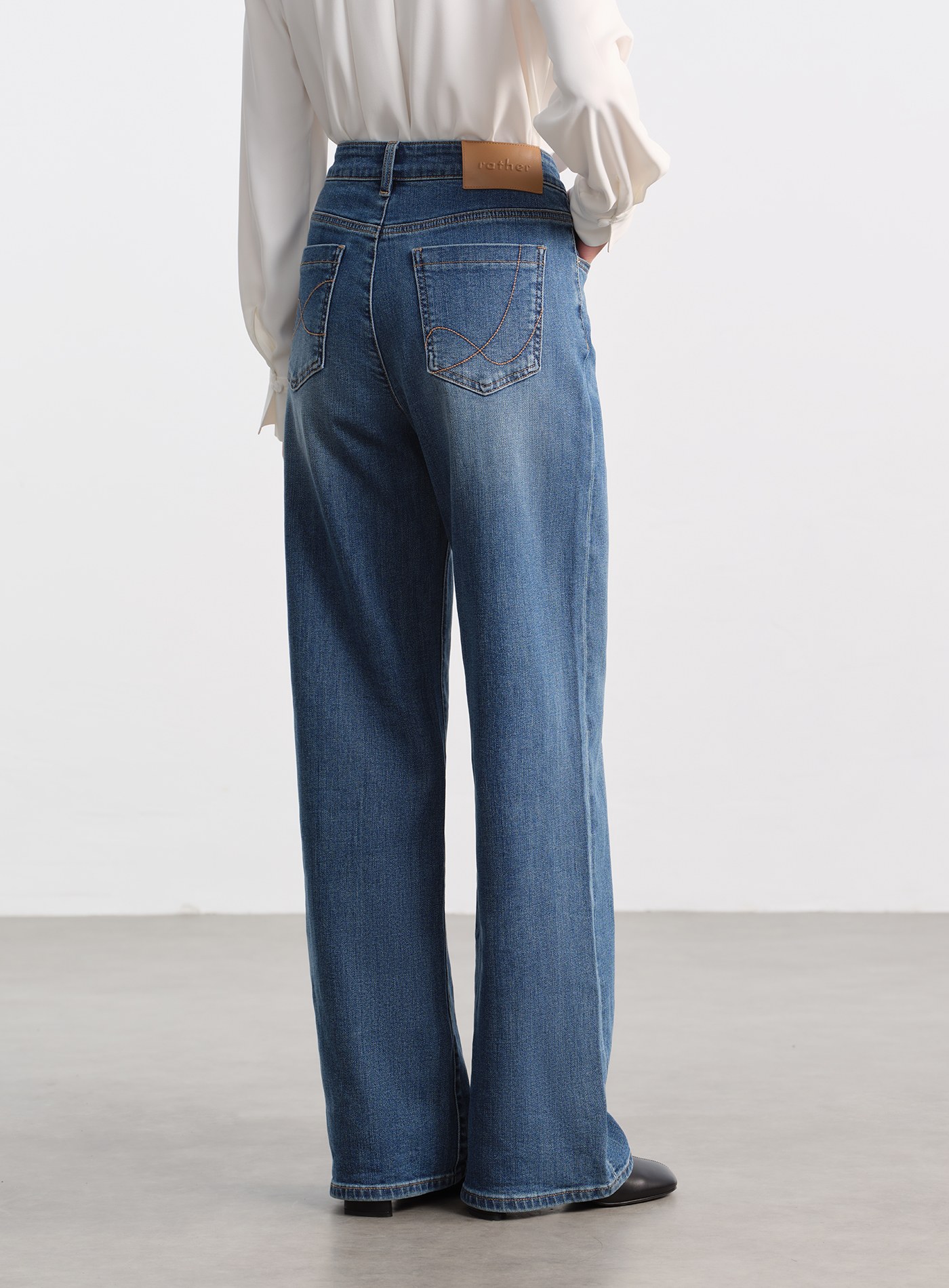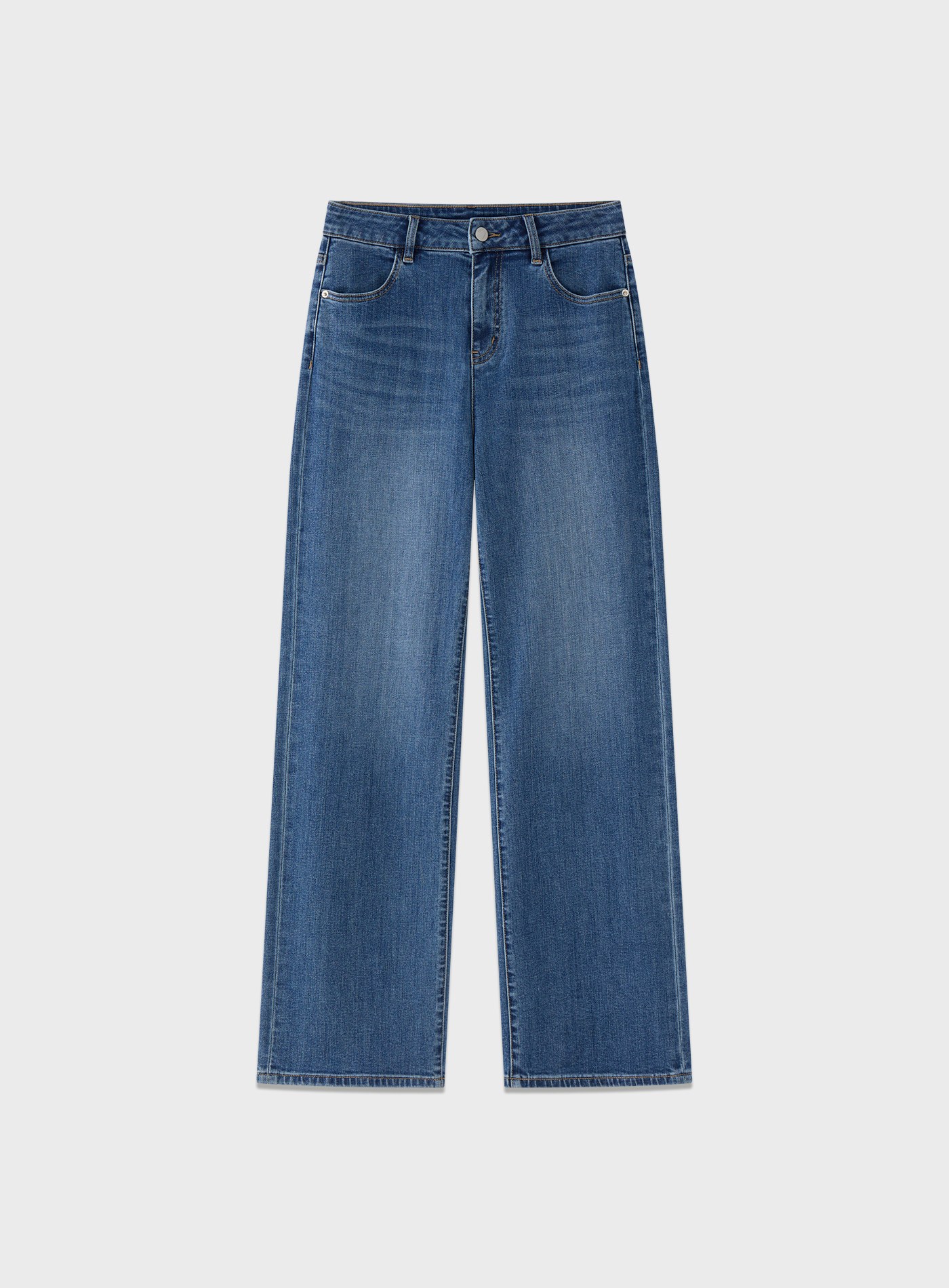 • 經典皇家藍水洗調,透過膝蓋自然磨白與貓鬚工藝,復刻出專屬於歲月的丹寧質感,既率性又高級