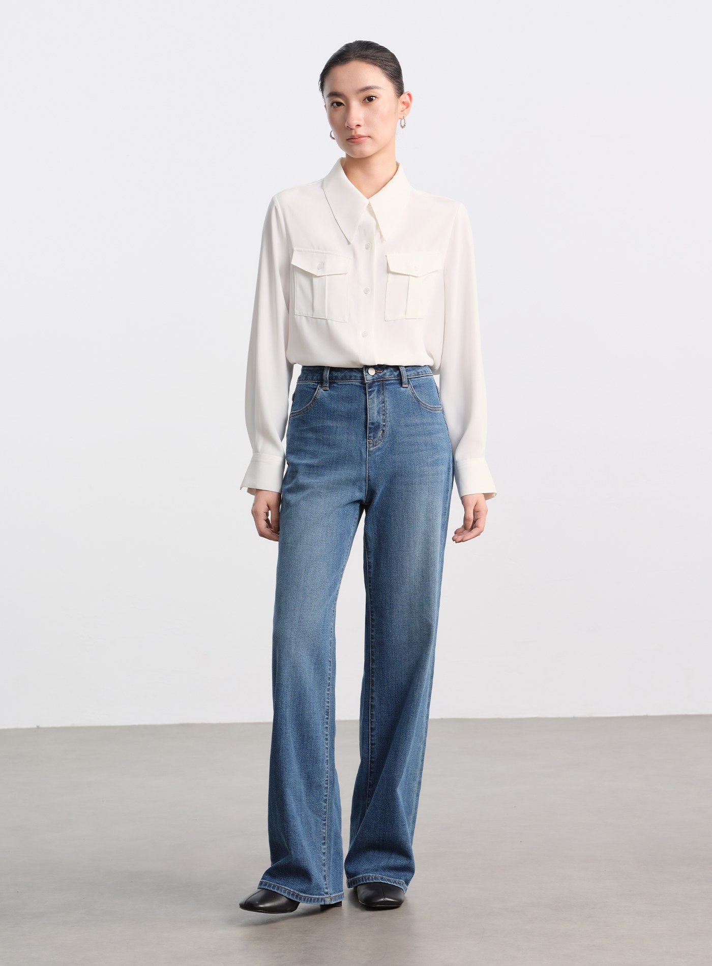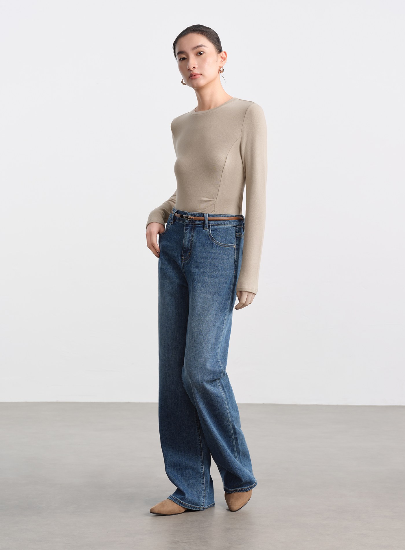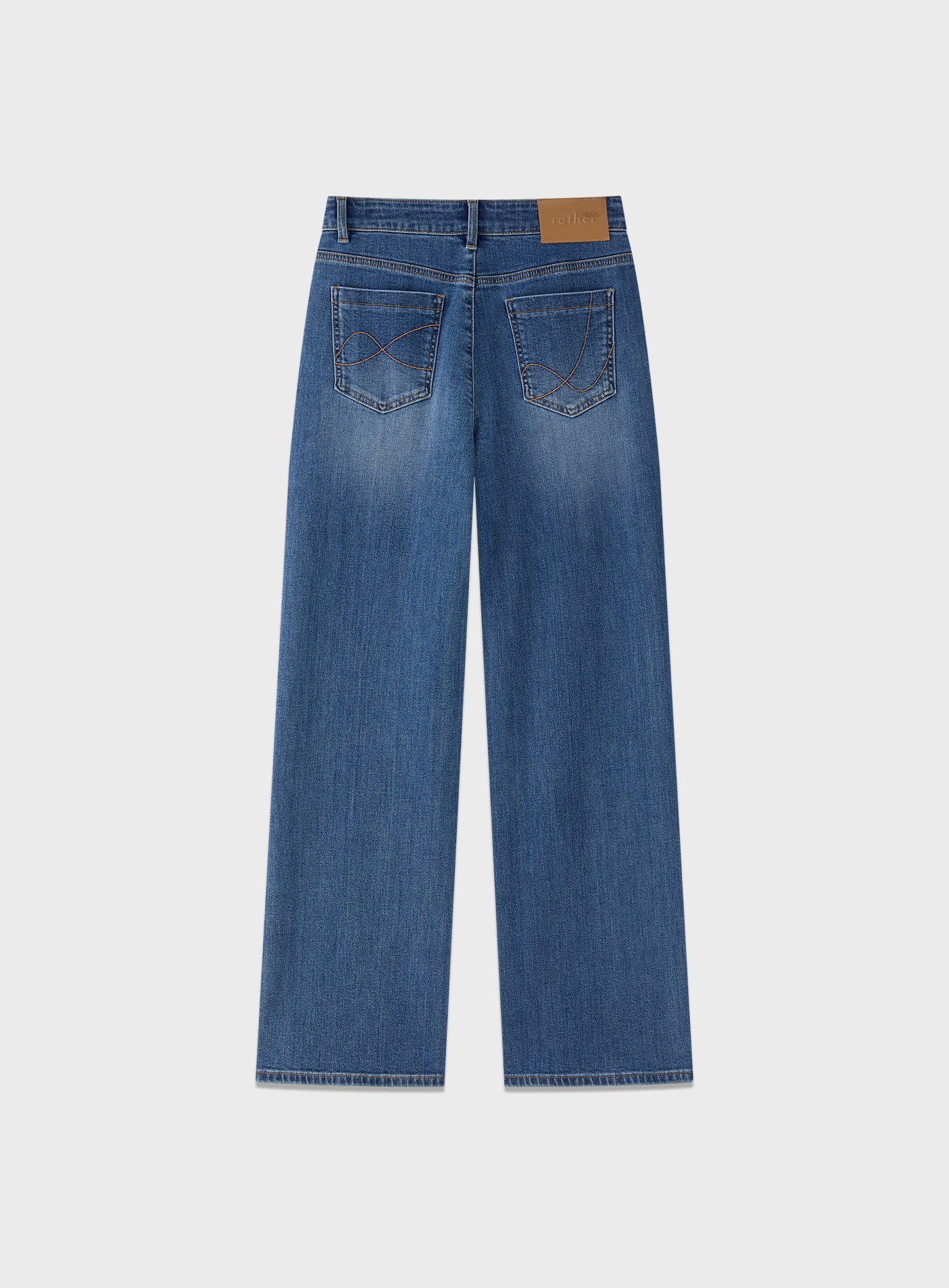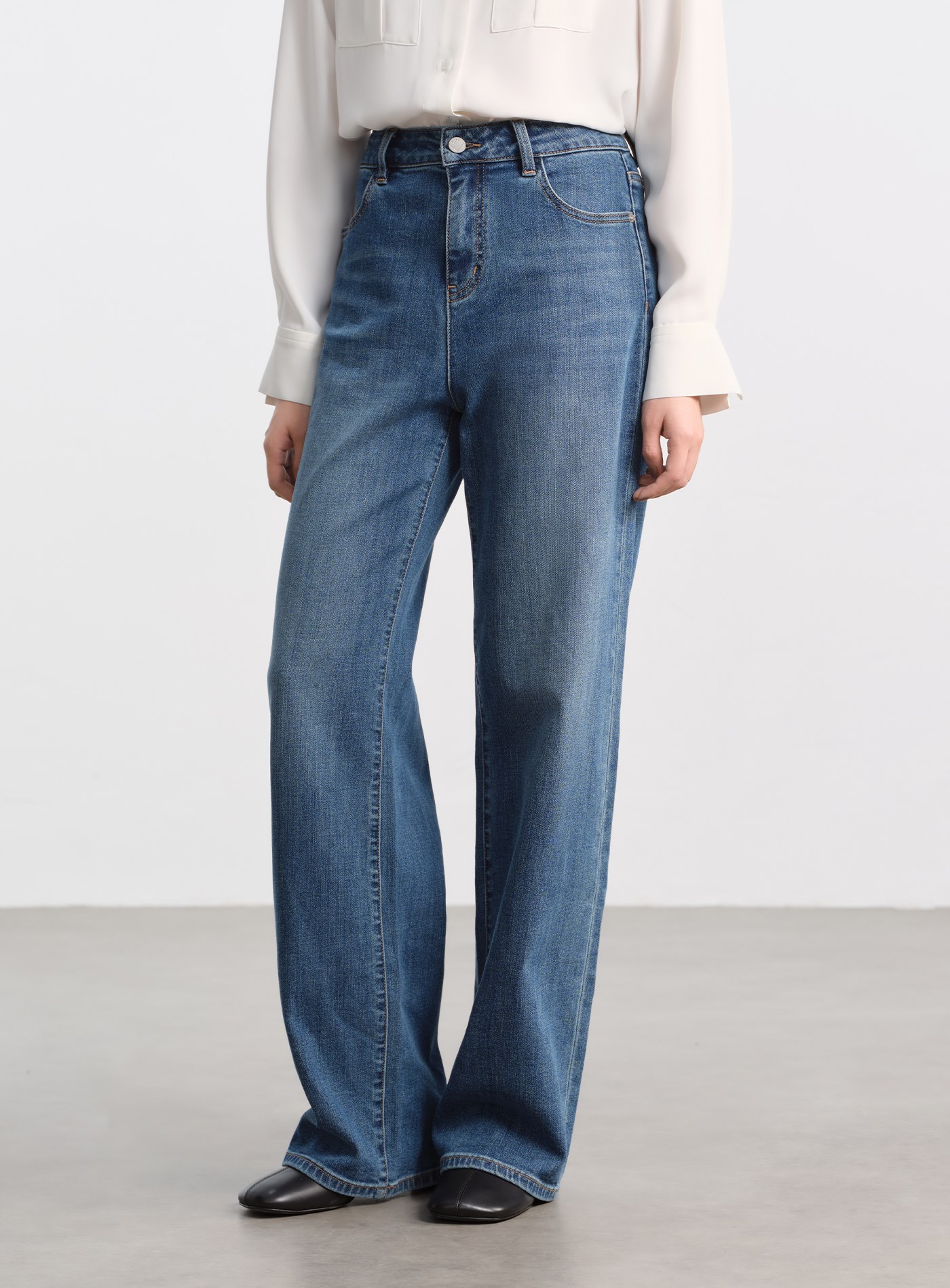 • 經典皇家藍水洗調,透過膝蓋自然磨白與貓鬚工藝,復刻出專屬於歲月的丹寧質感,既率性又高級