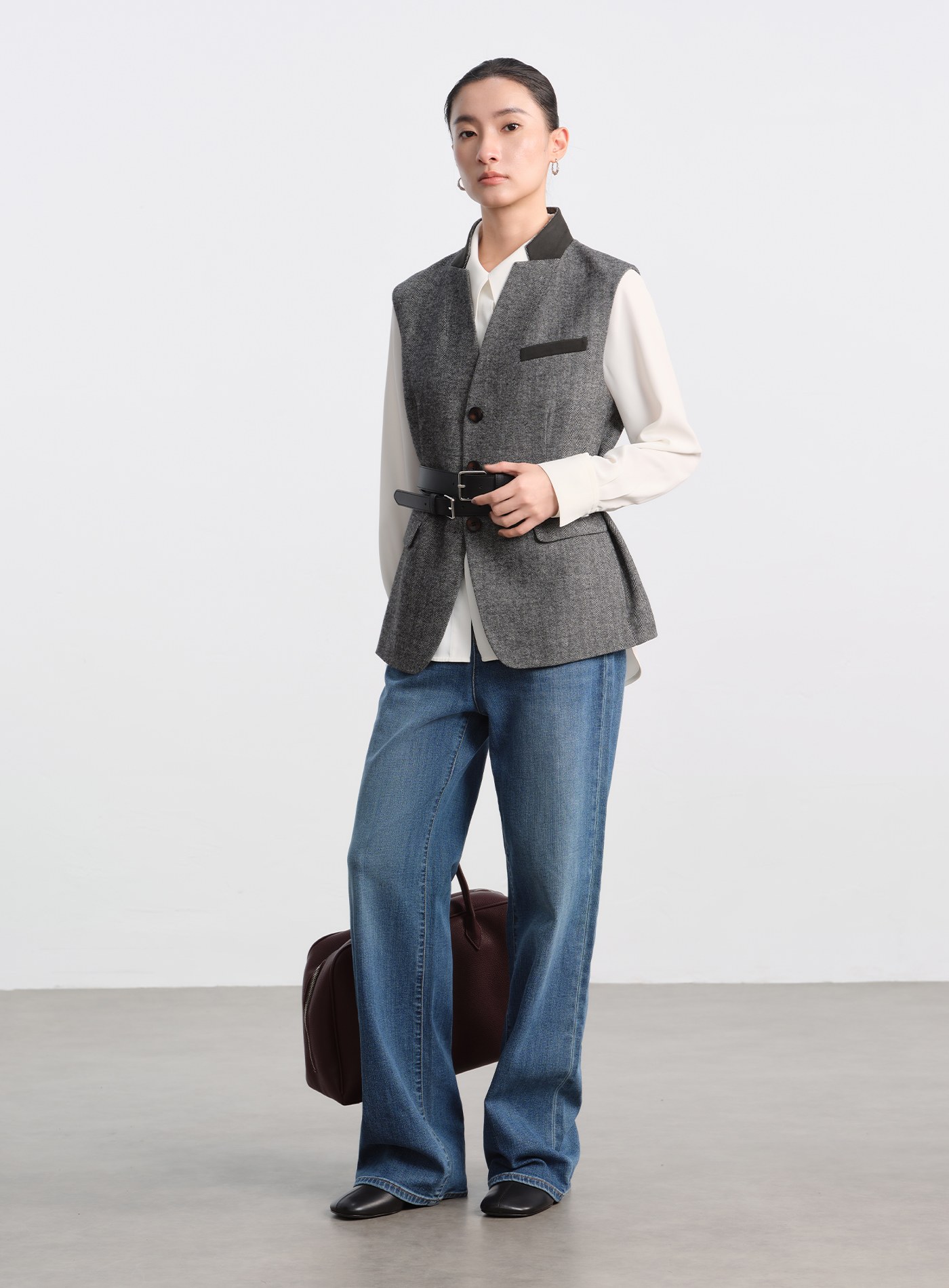 • 採用高棉含量丹寧布,保留牛仔布的硬挺輪廓,同時加入適度彈性纖維,久穿依然舒適、俐落有型