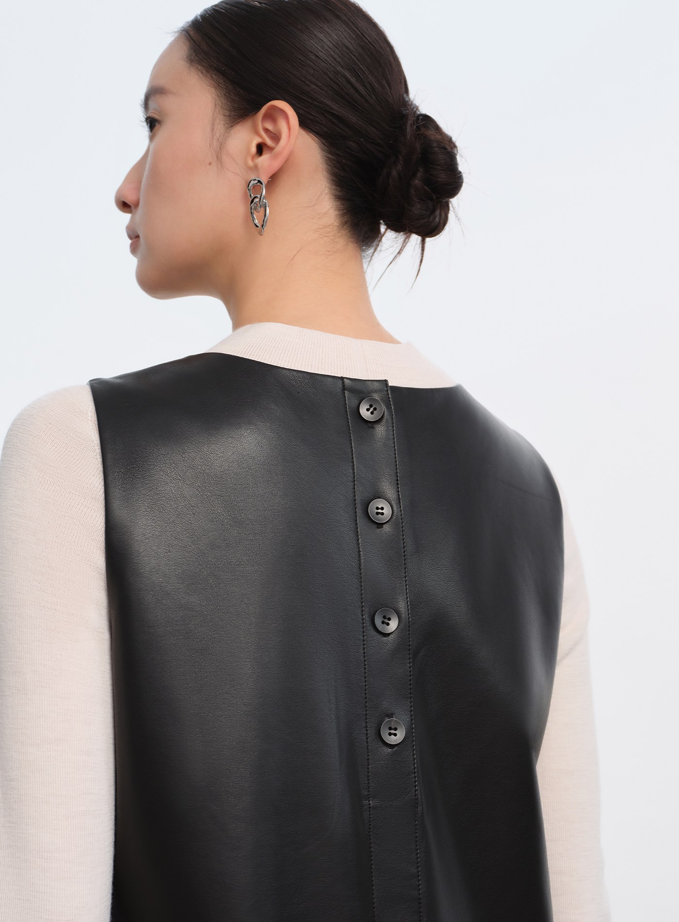 - 後背縱向排列紐扣,精選質感樹脂扣