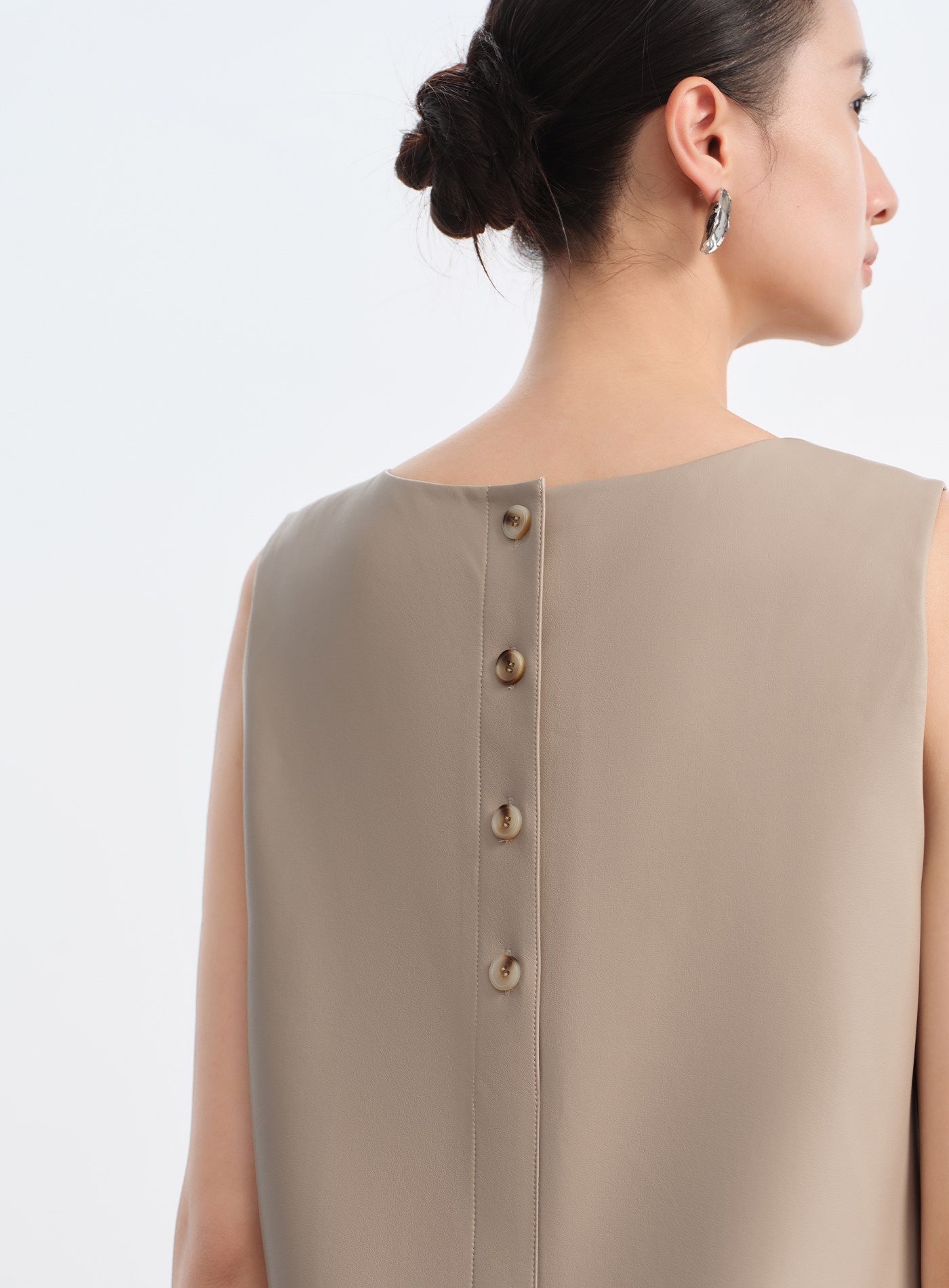 - 後背縱向排列紐扣,精選質感樹脂扣