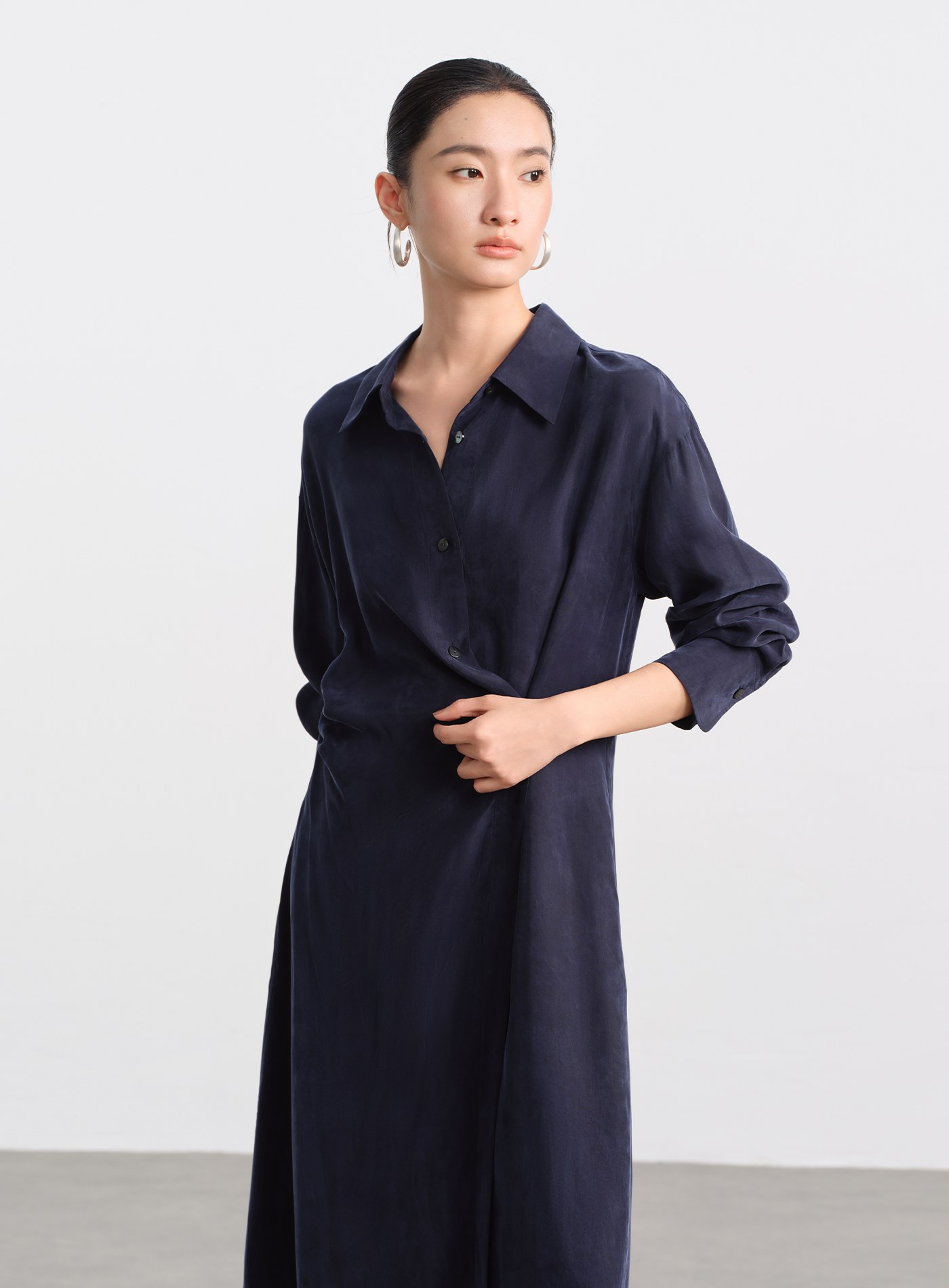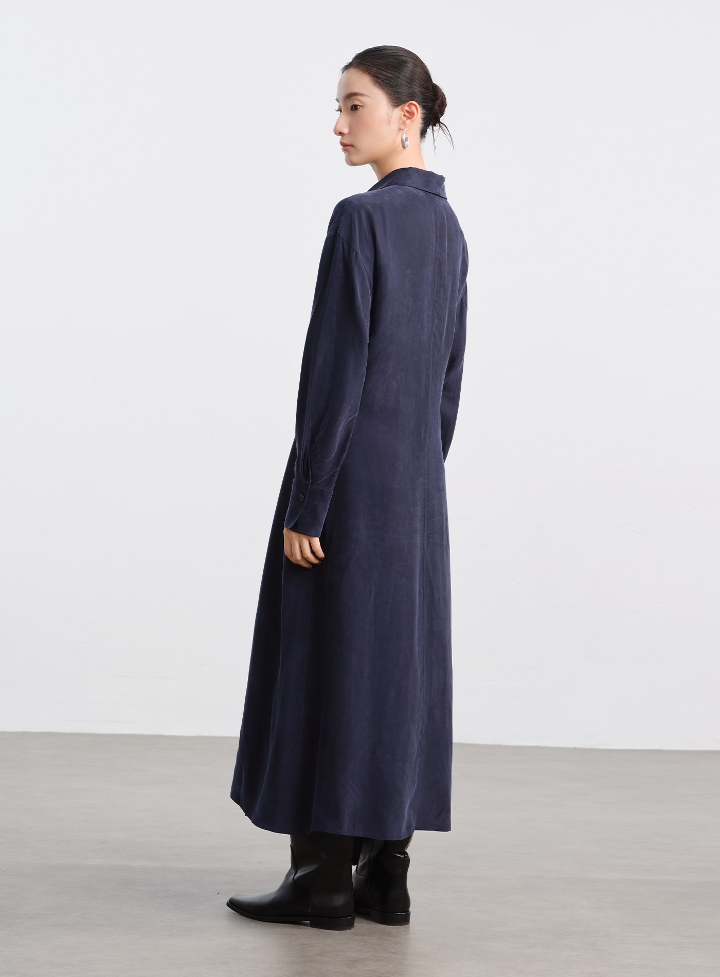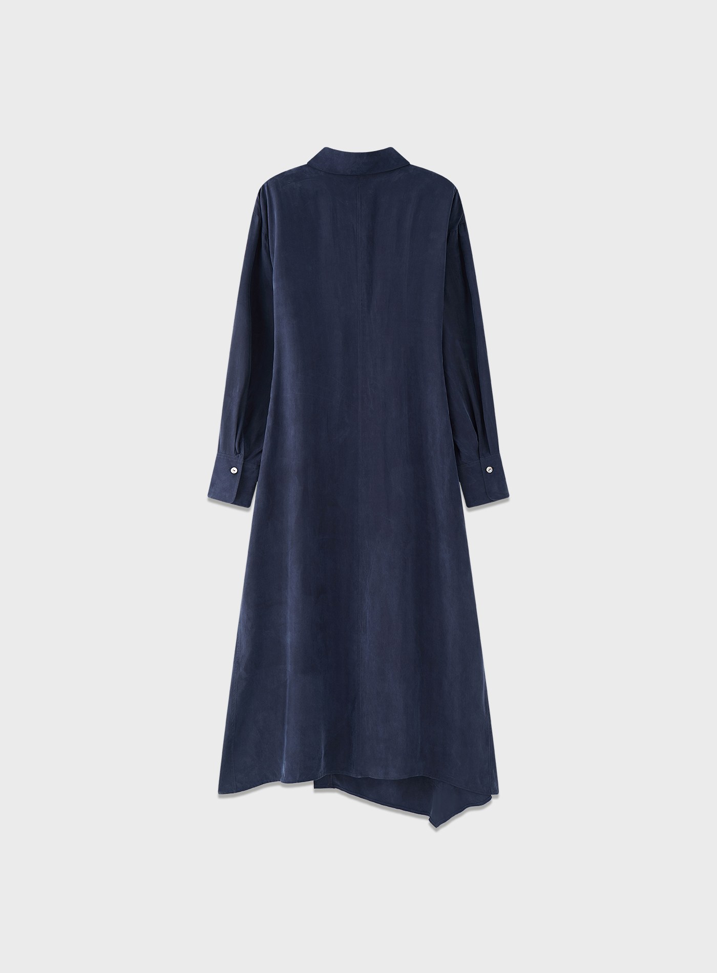- 材質選用銅氨混紡砂洗布料,帶著細膩霧面與絲滑觸感,垂墜線條乾淨利落,不易皺、透氣、親膚