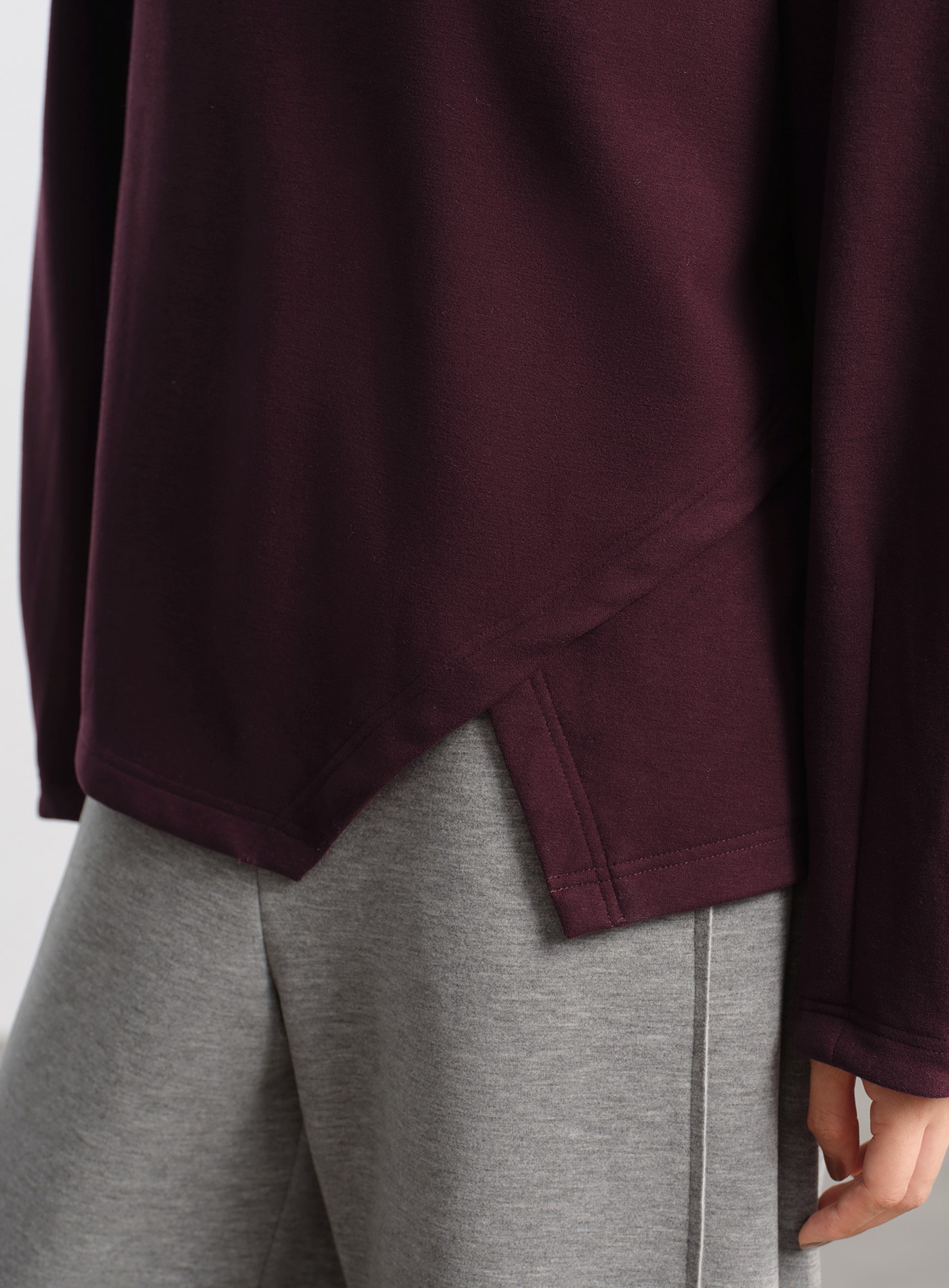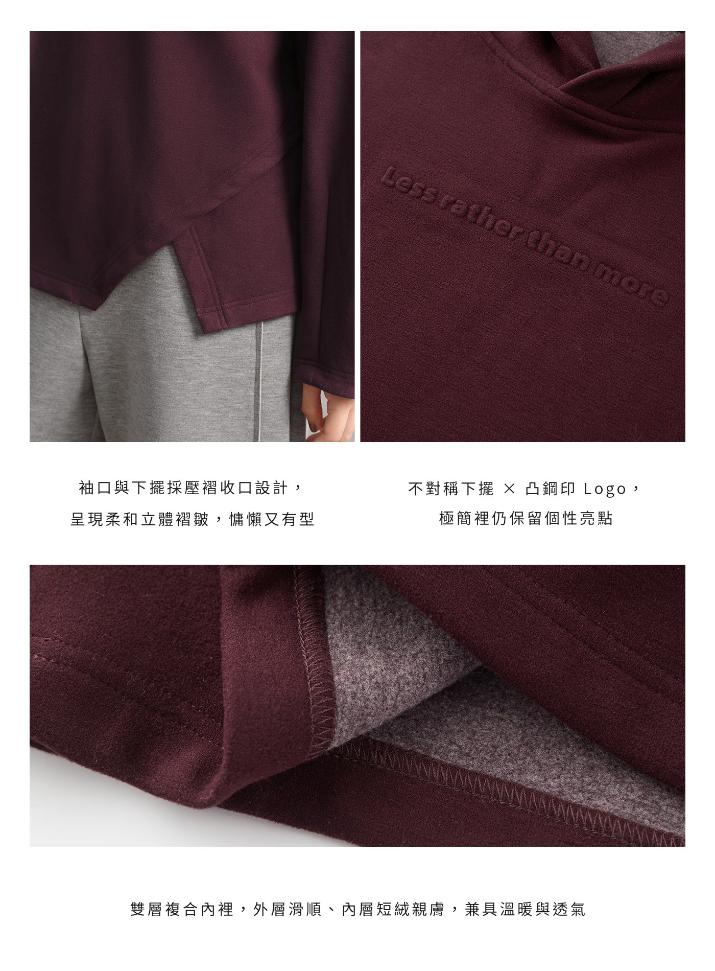 - 面料採用雙層複合針織結構,外層乾淨俐落、手感順滑;內層以短絨般的柔軟質地包覆肌膚,穿上宛如第二層肌膚般貼合