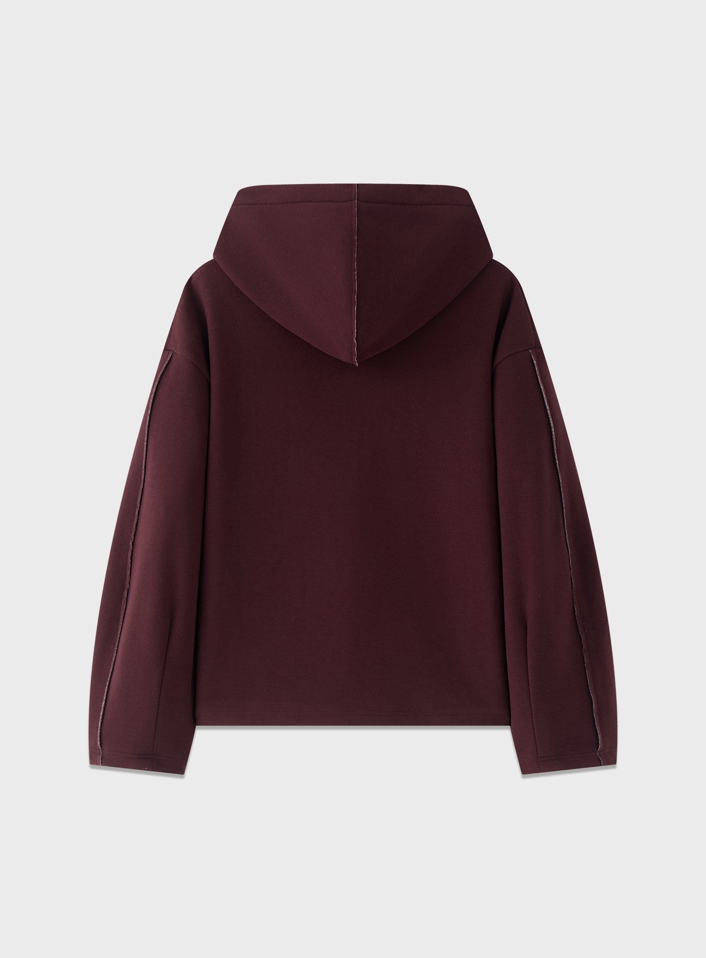 - 袖口與下擺以壓褶工藝取代彈性羅紋,微微立起的褶皺線條讓輪廓更柔和、視覺更立體