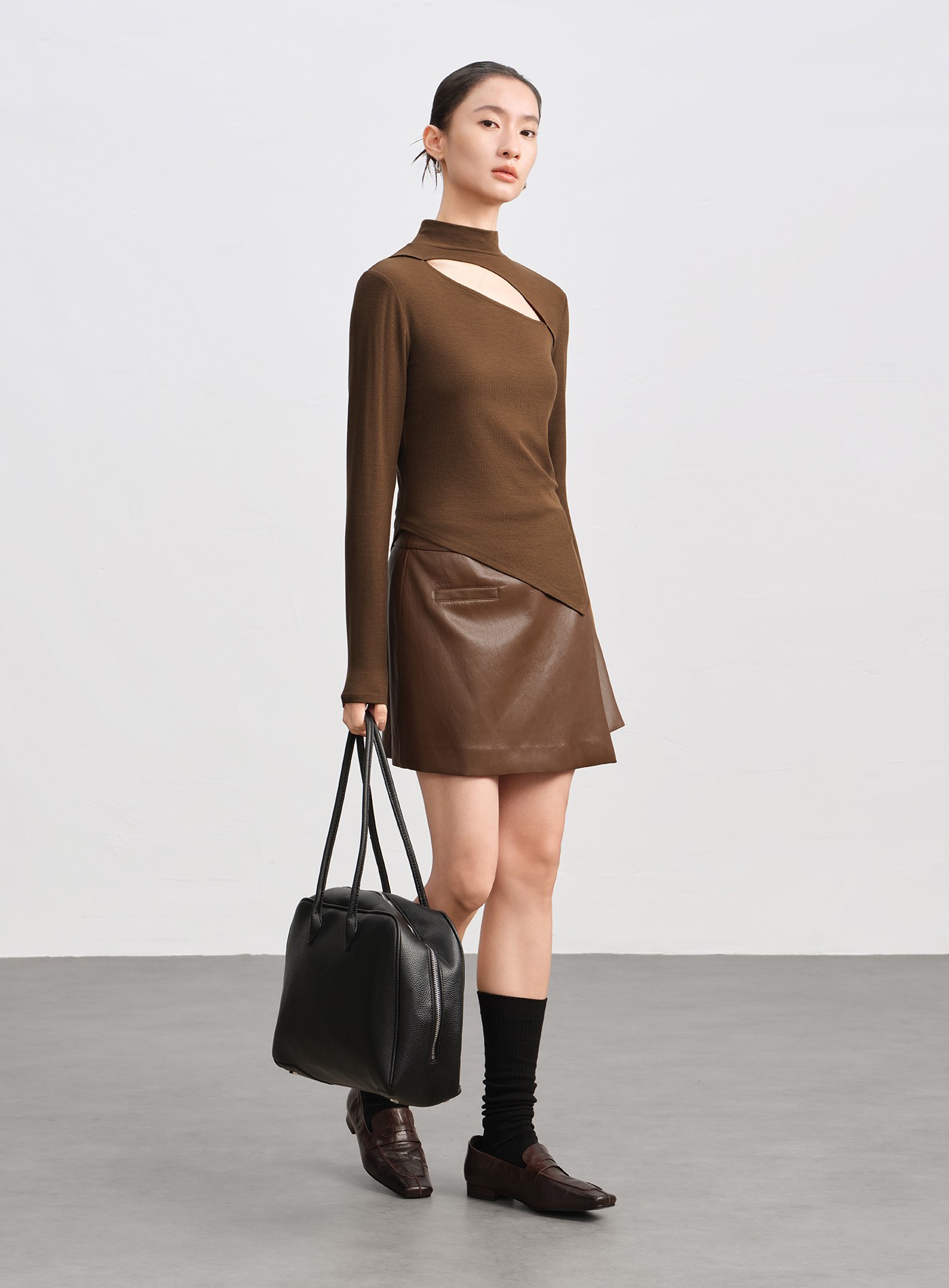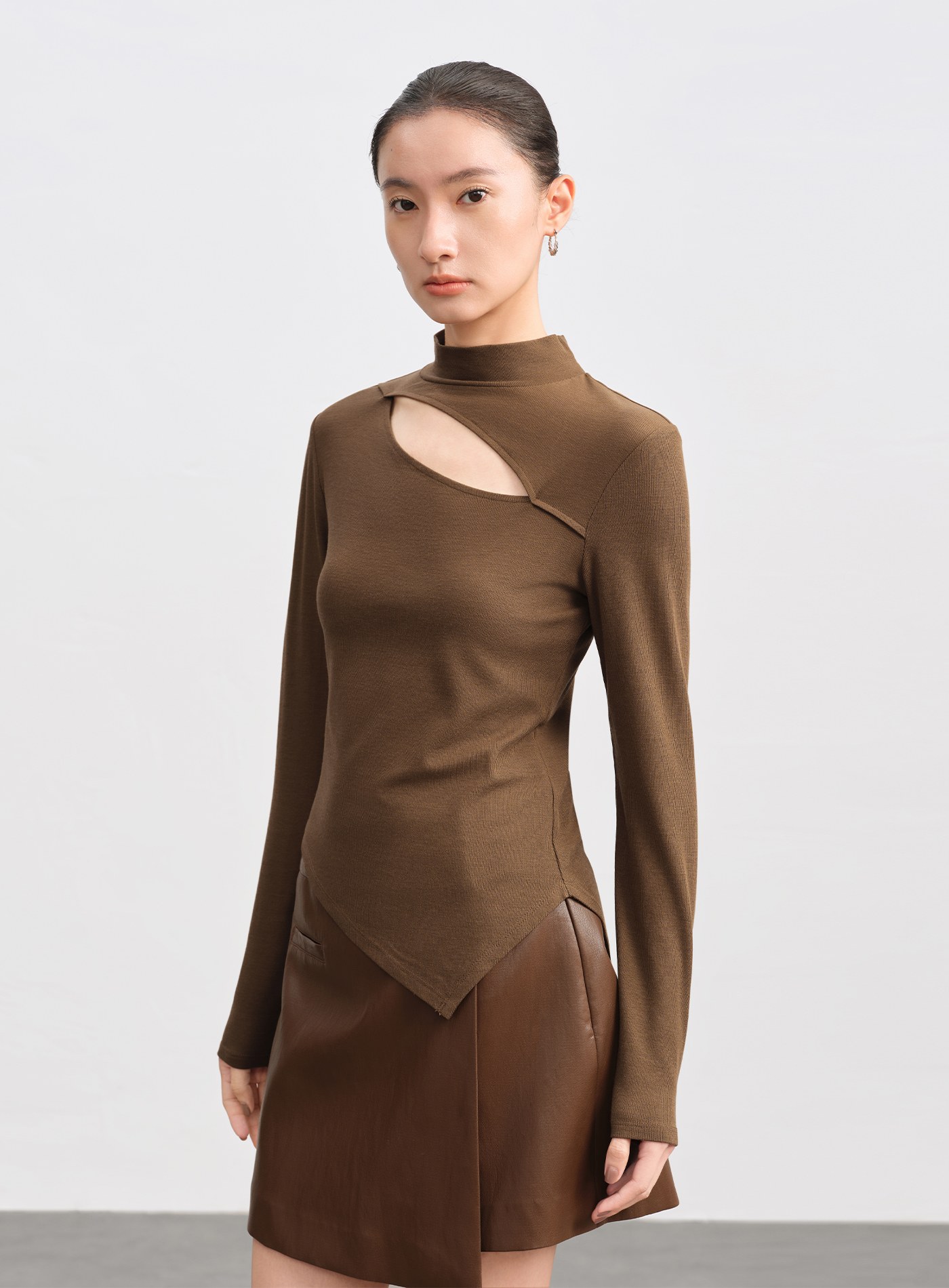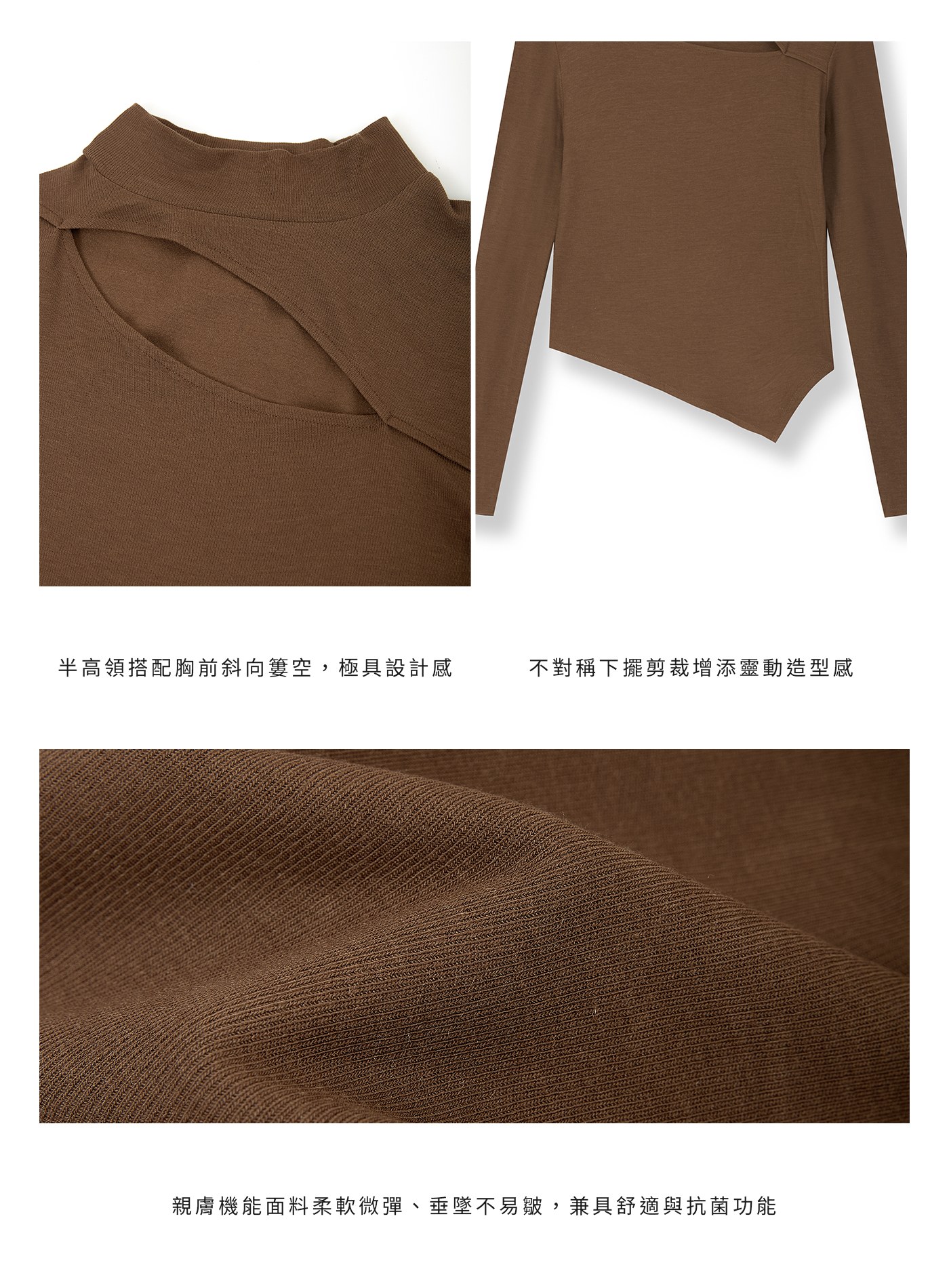 - 半高領結合胸前簍空設計,展現俐落性格與時尚美感