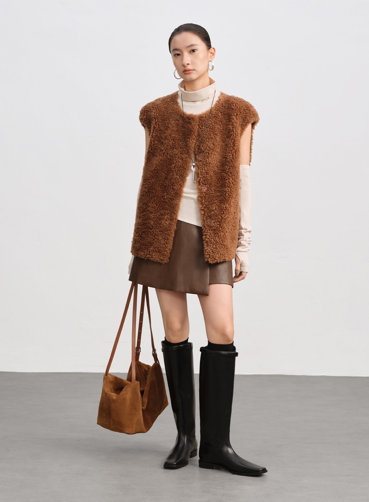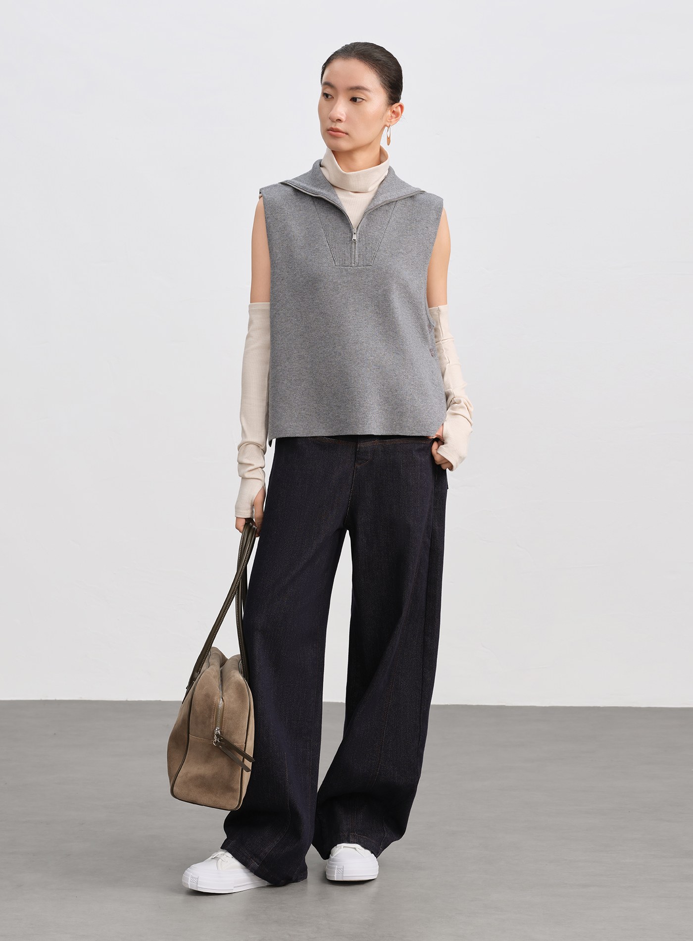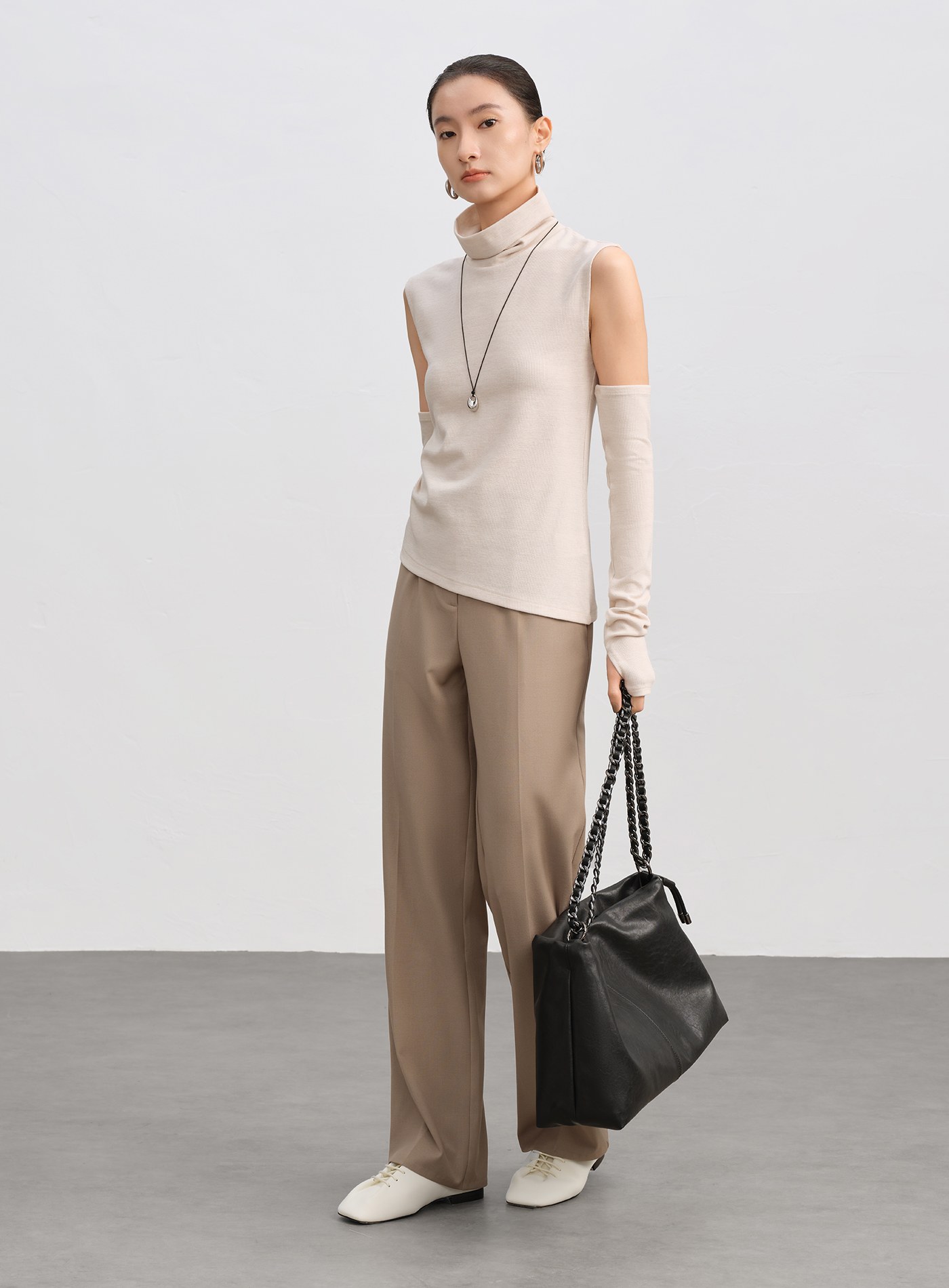 短版俐落寬肩無袖休閒襯杉$60 USD