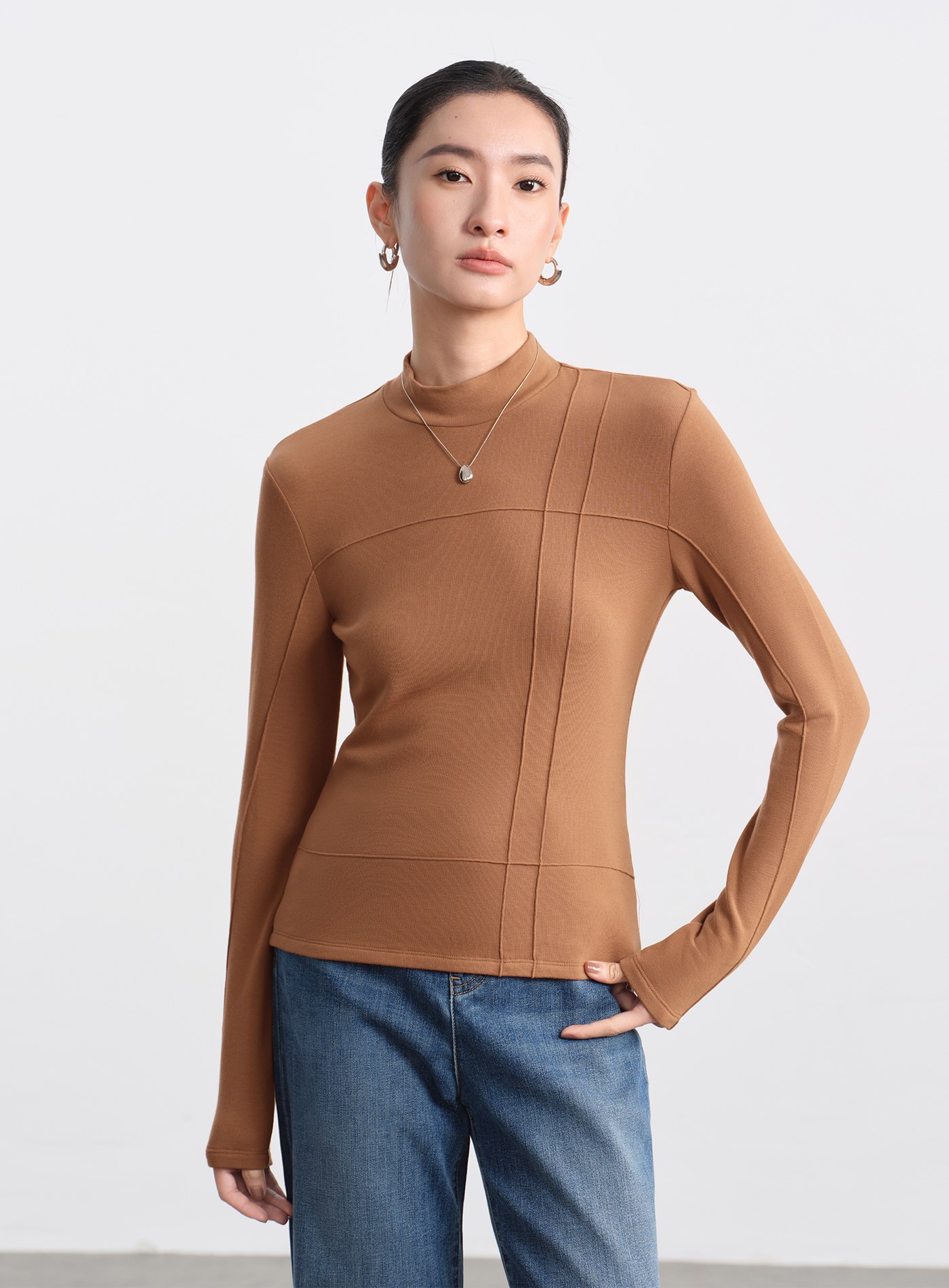 修身長版圓領上衣$35 USD