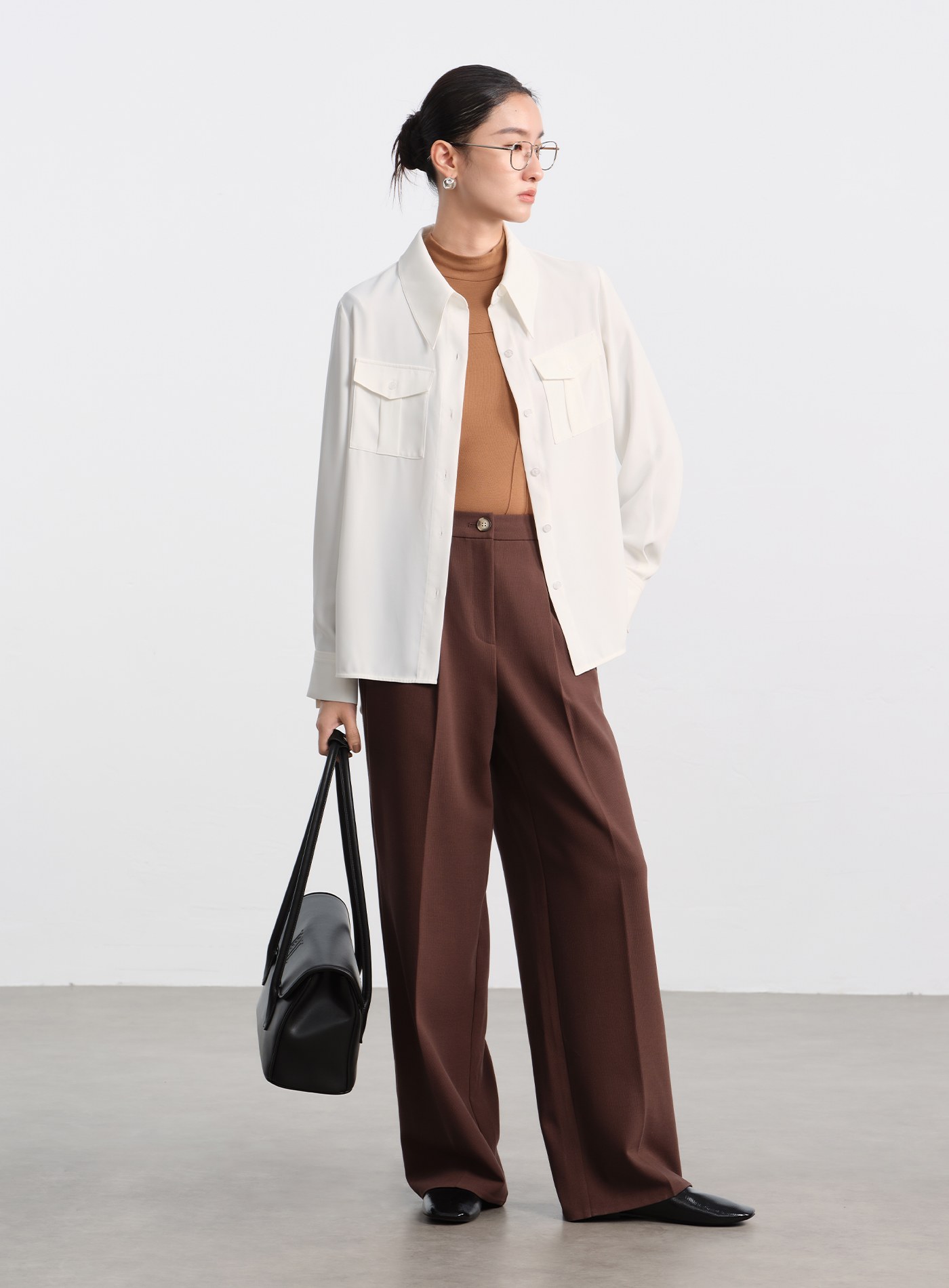 輕盈一片領長袖襯衫$57 USD