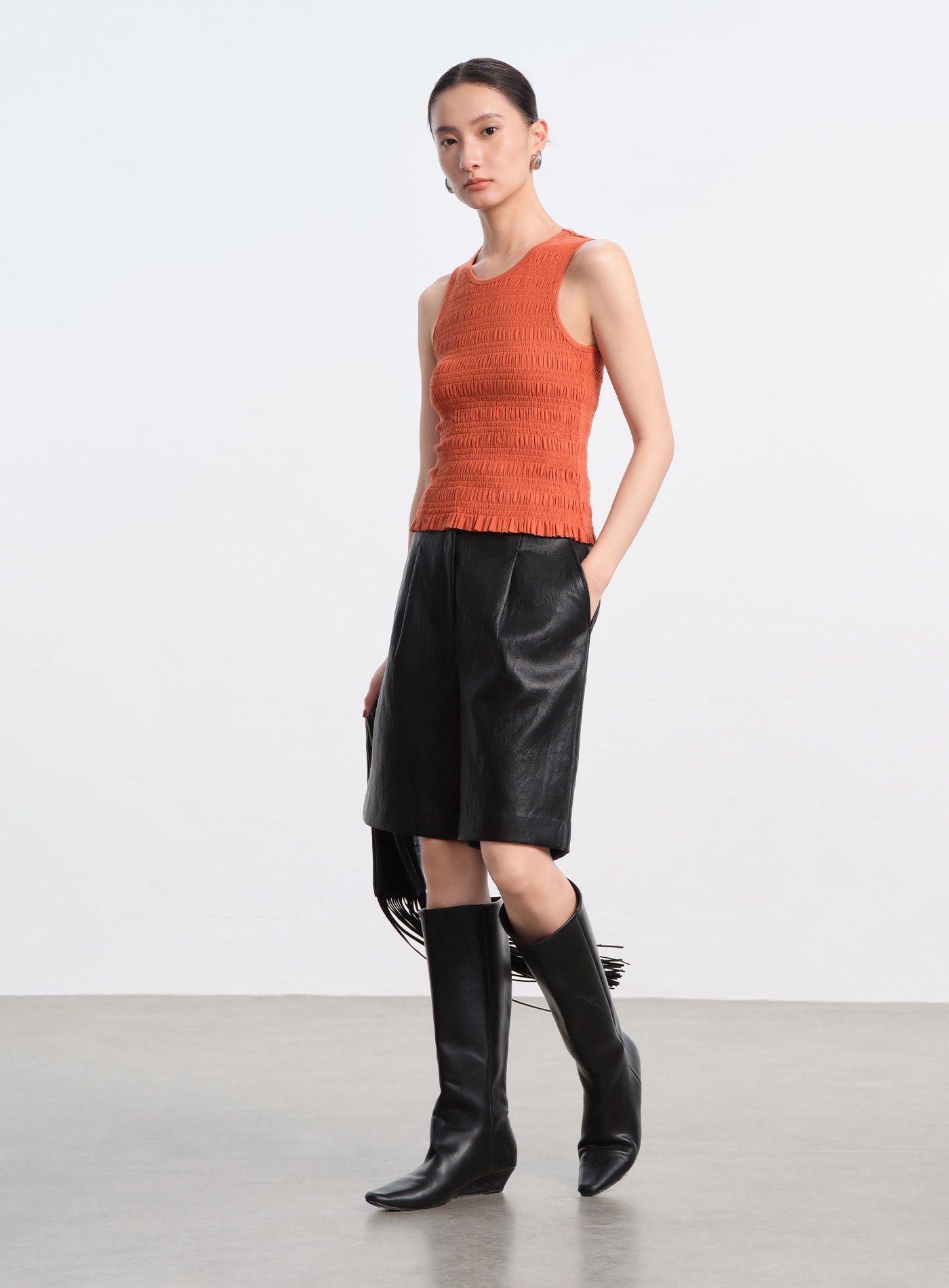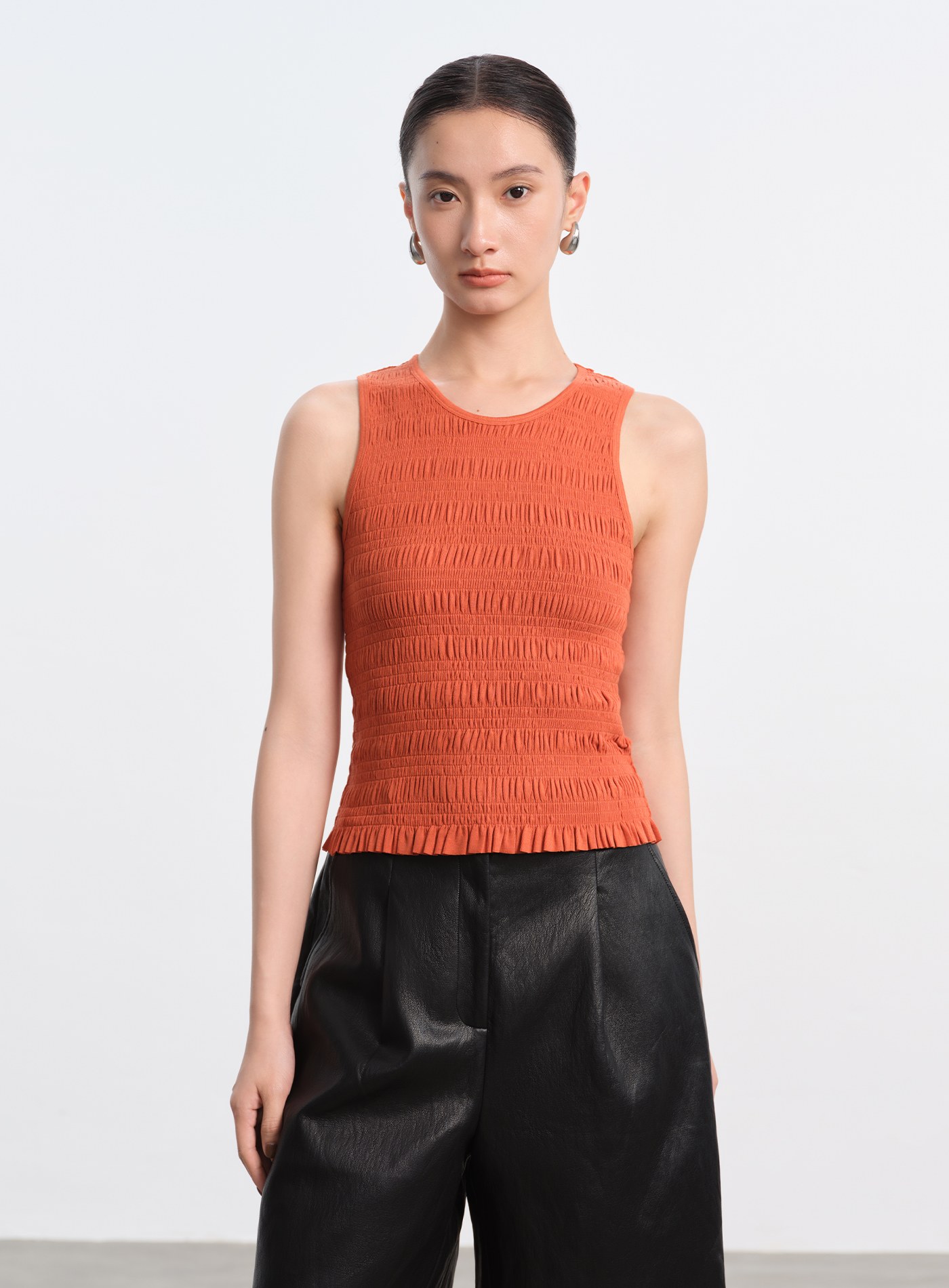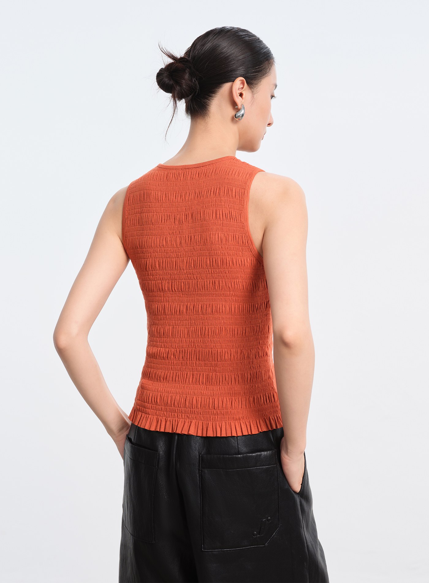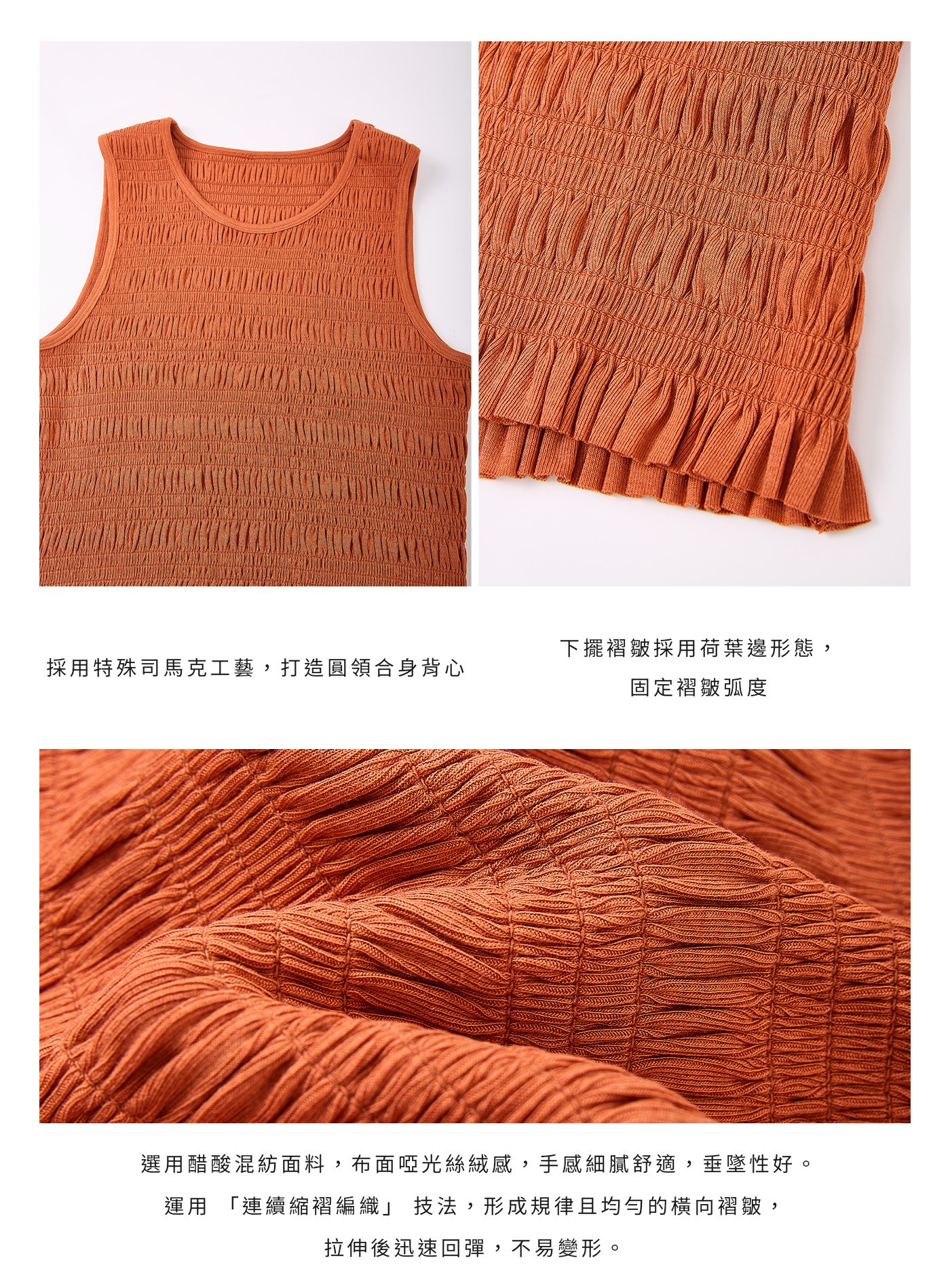 - 採用特殊司馬克工藝,打造圓領合身背心