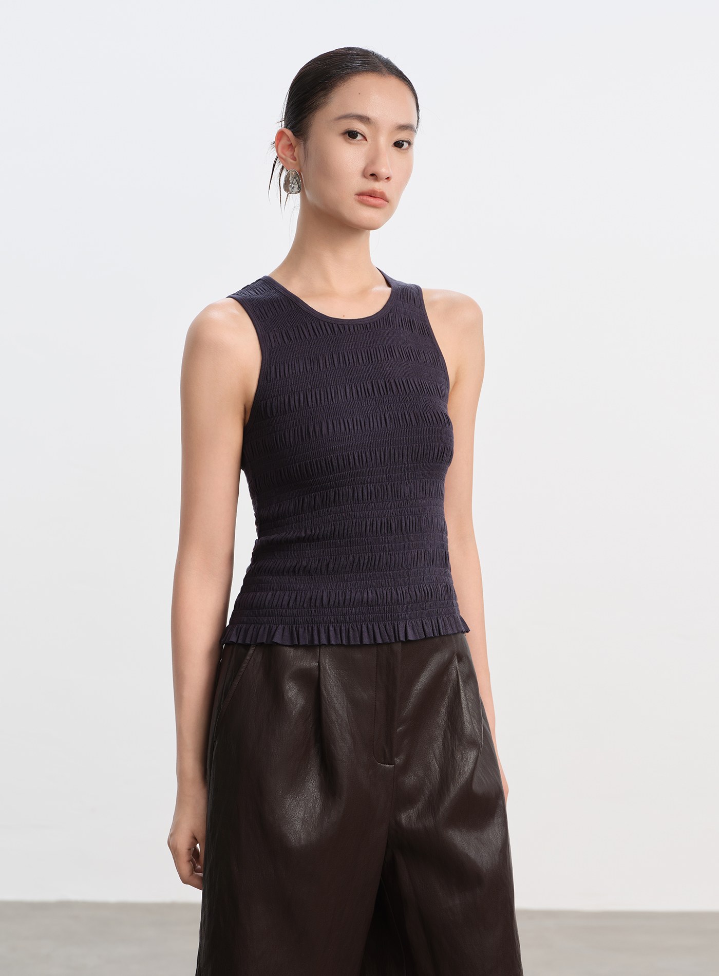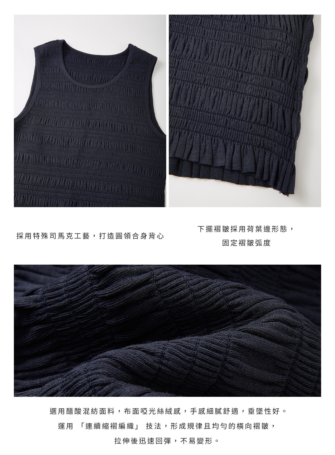 - 採用特殊司馬克工藝,打造圓領合身背心