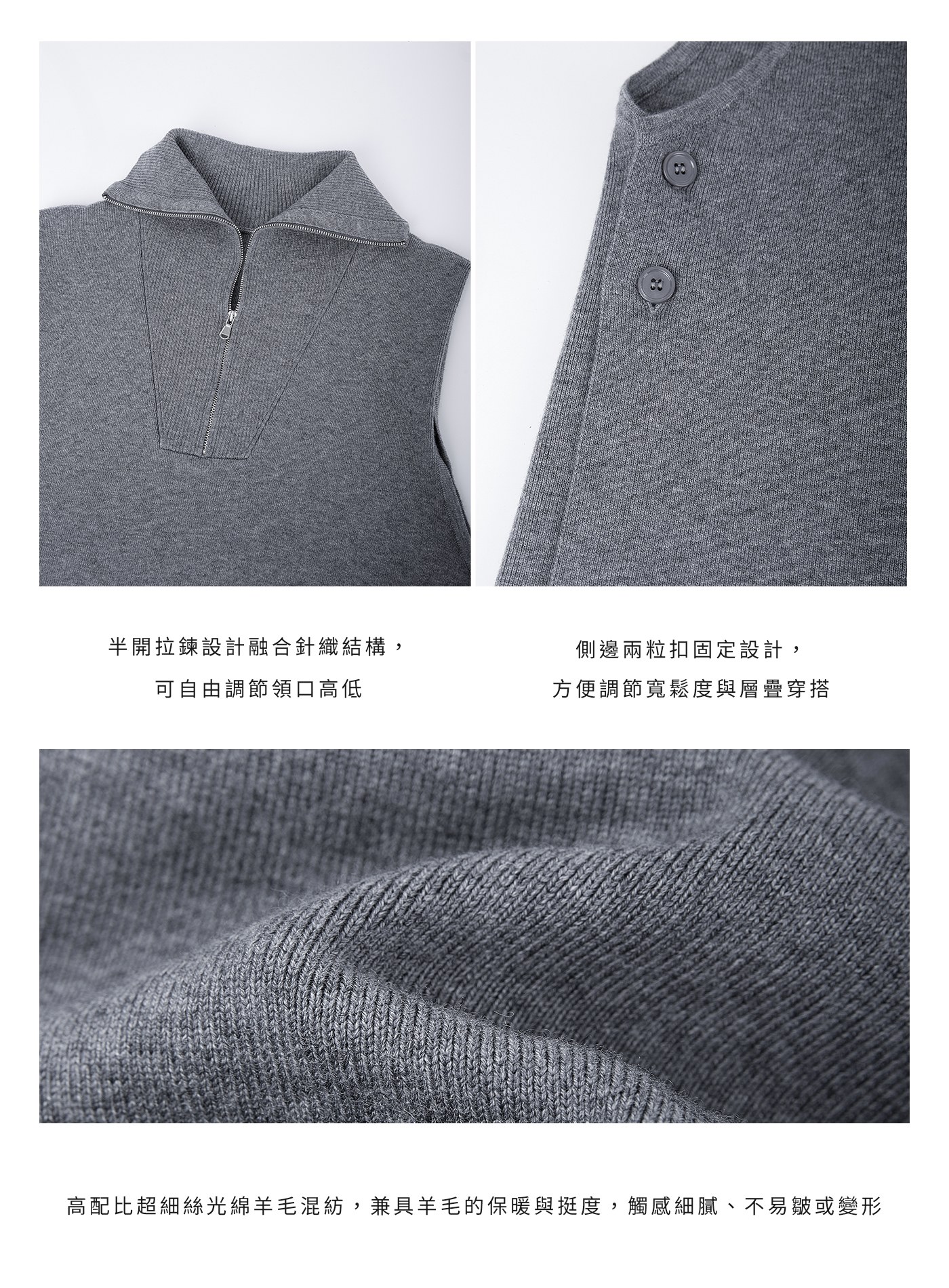 - 簡約俐落的半開拉鍊設計,可自由調節高低,打造兼具正式與休閒的混搭風格,展現多變造型