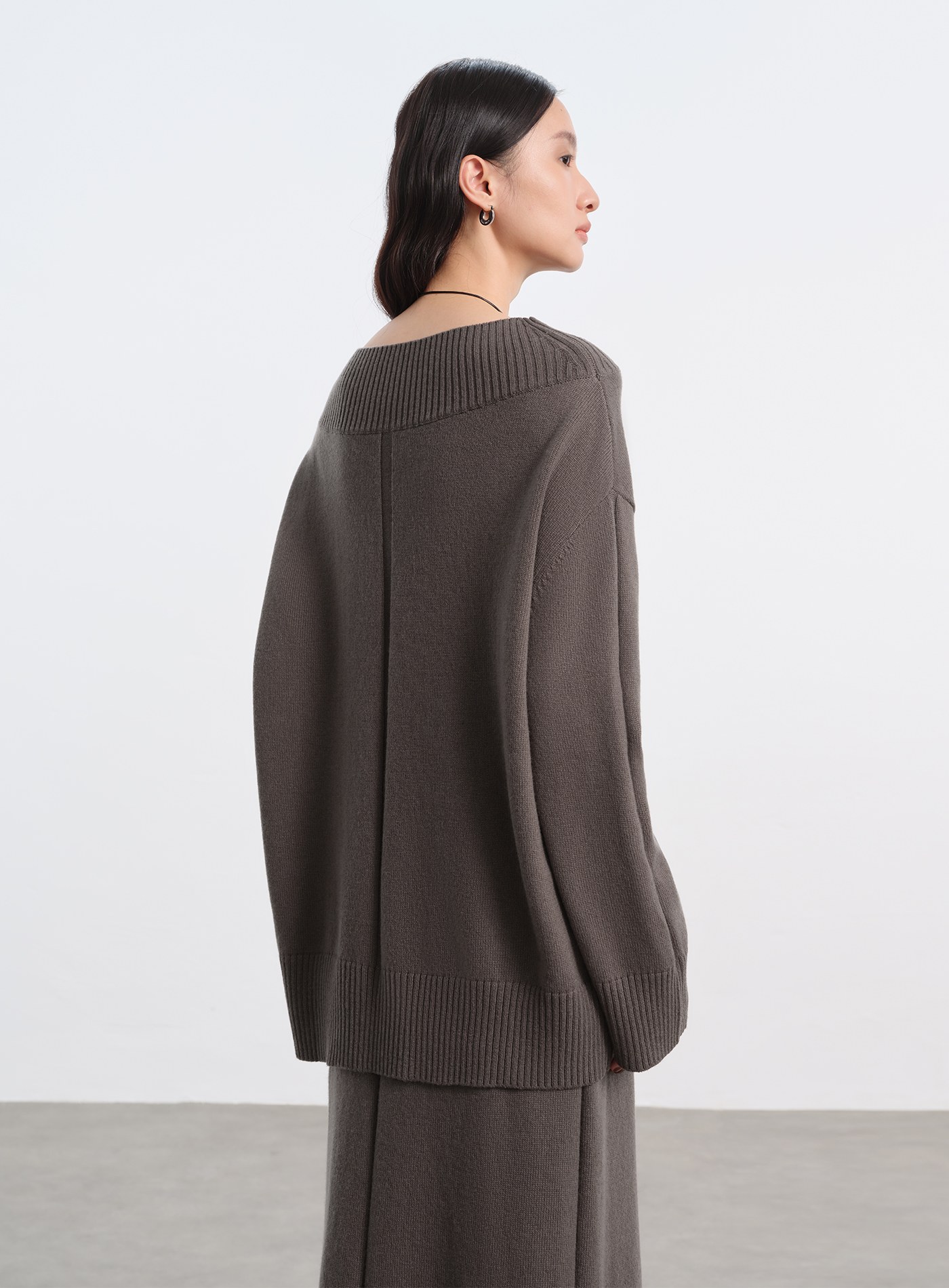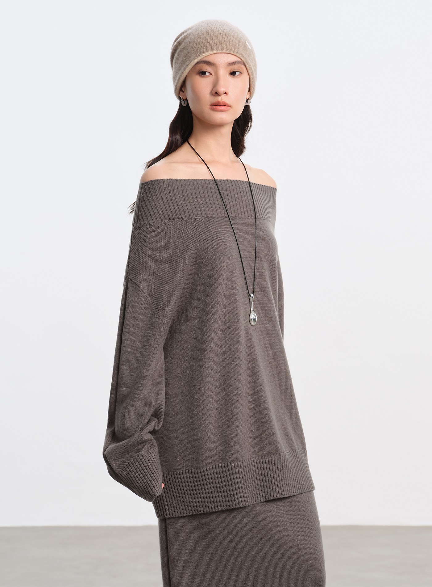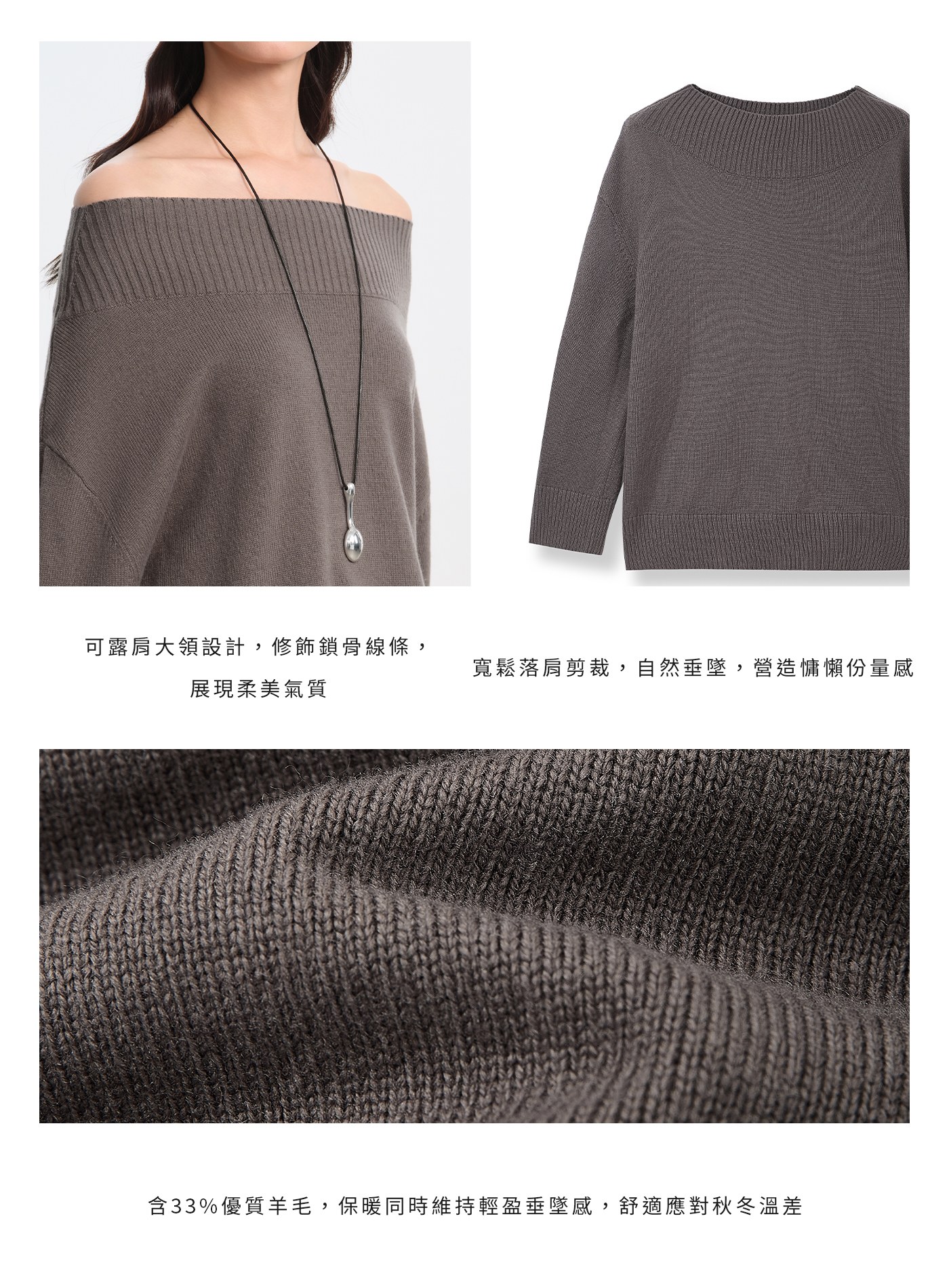 - 可露肩設計與寬領剪裁,展現慵懶不造作的隨性感