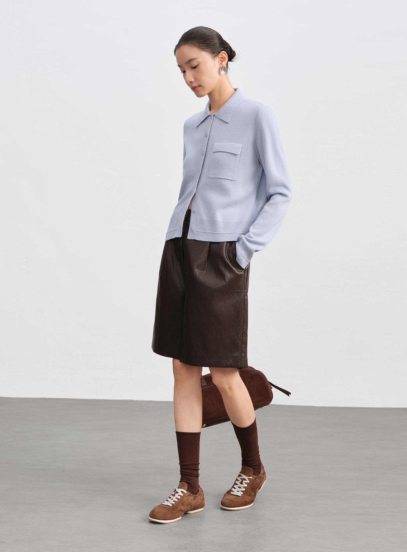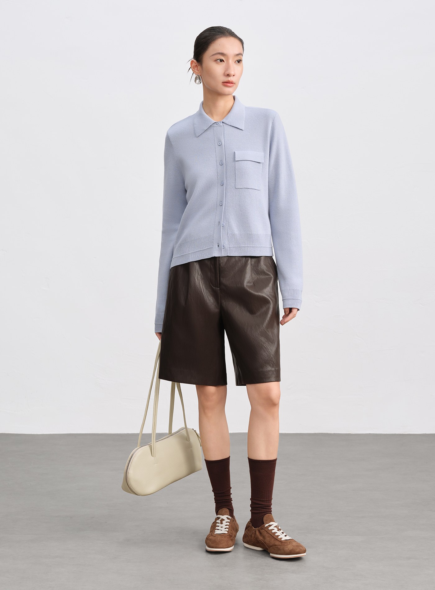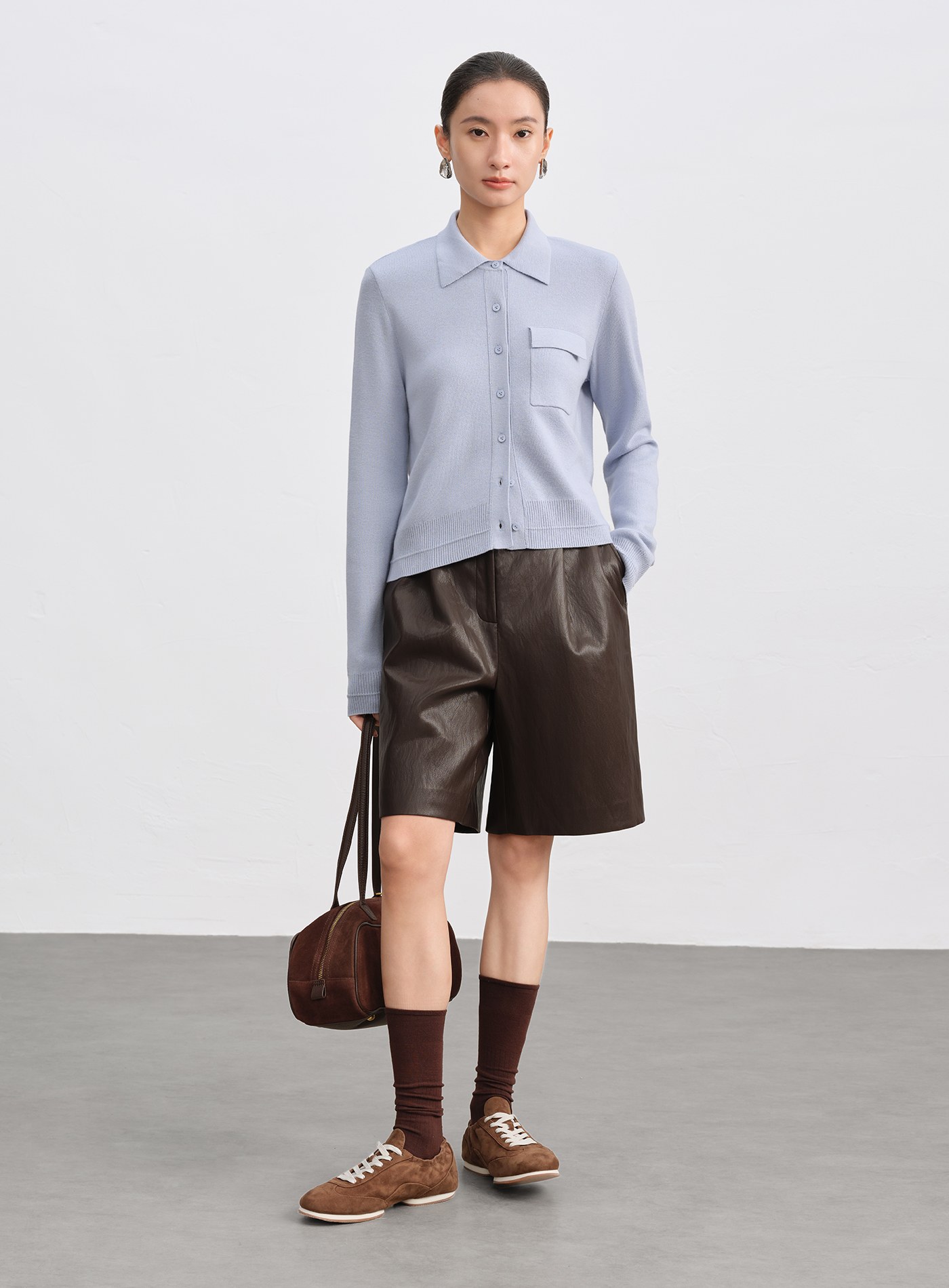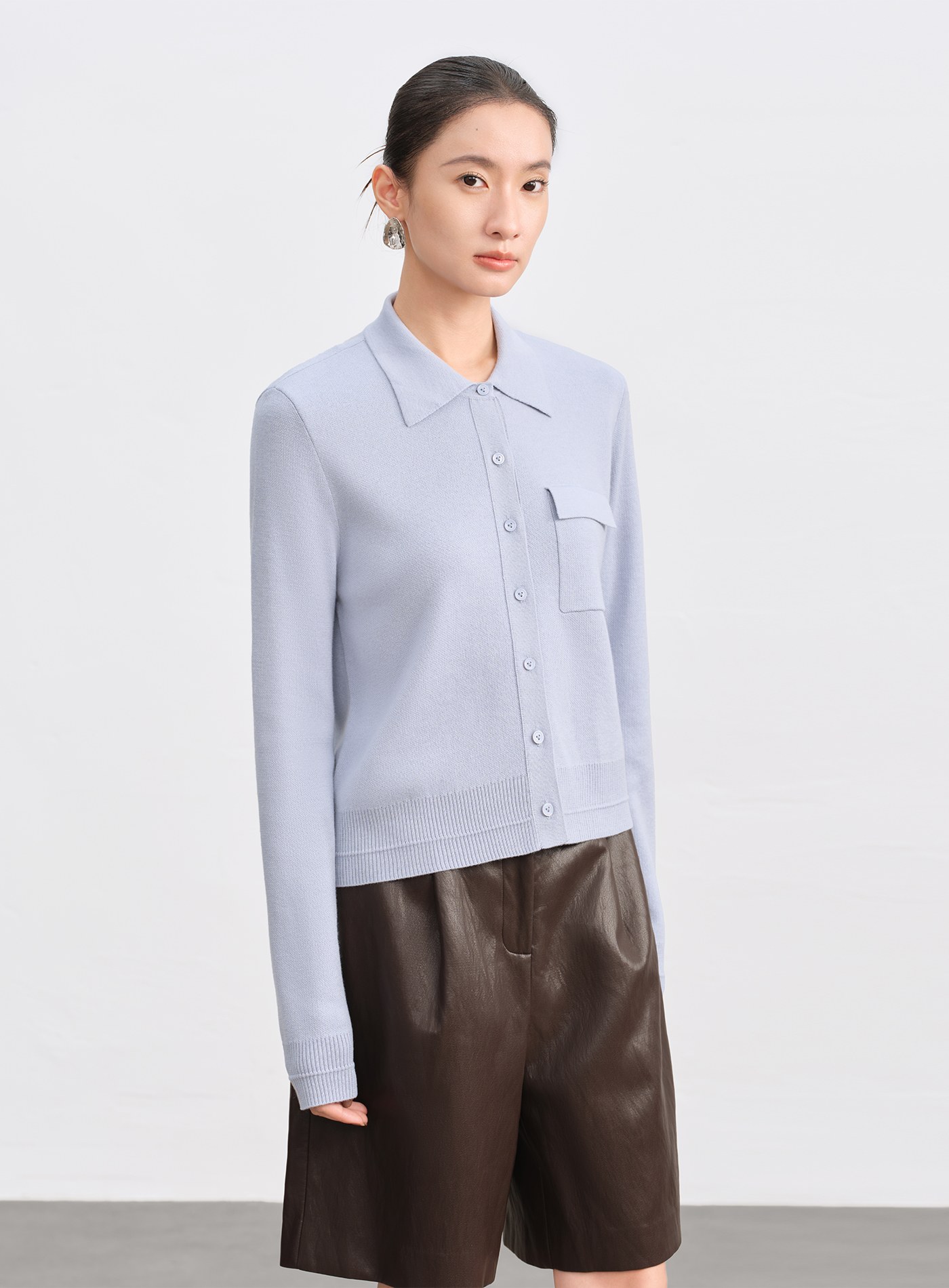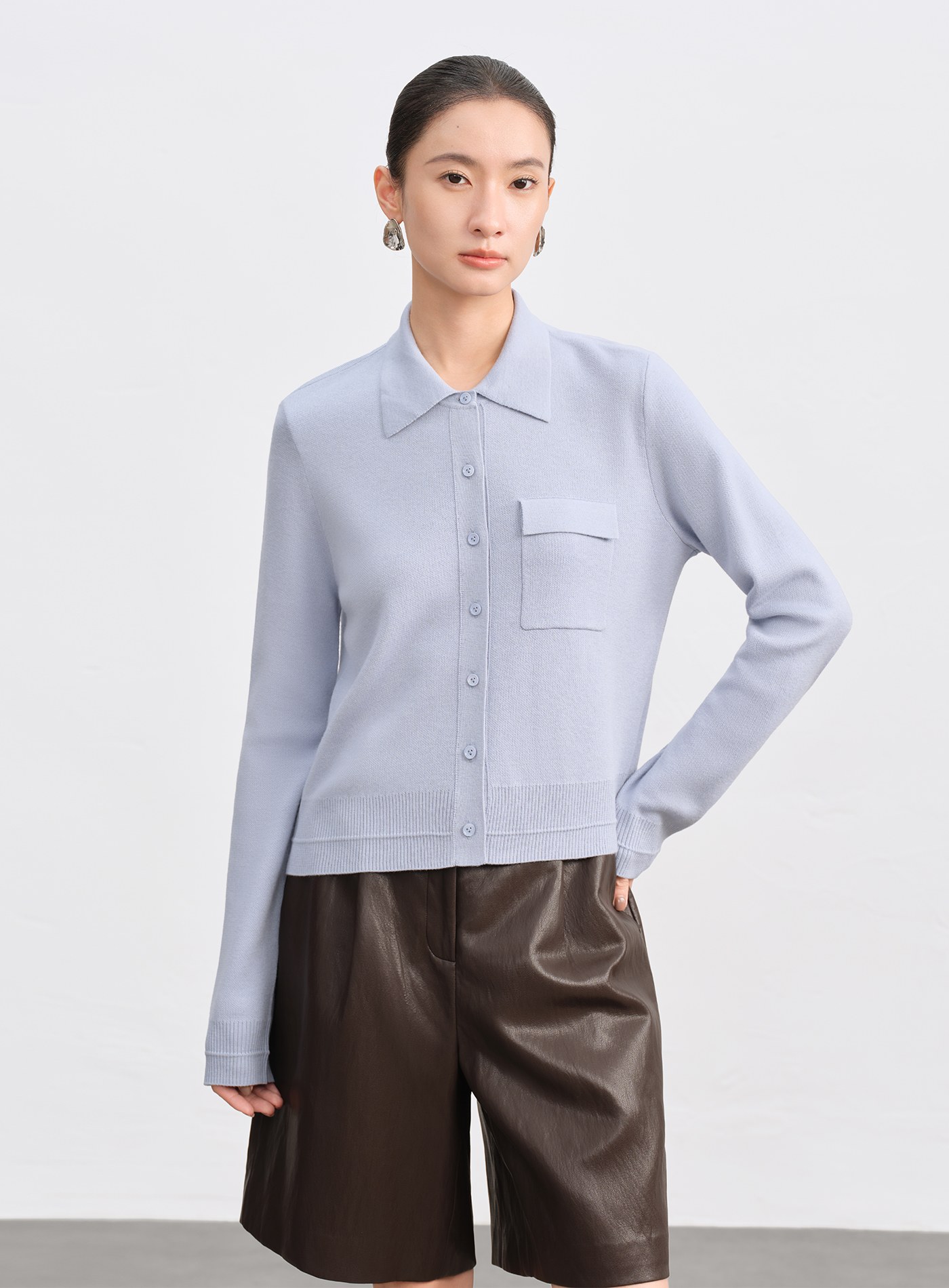 - 襯衫式翻領搭配直身剪裁,呈現俐落質感