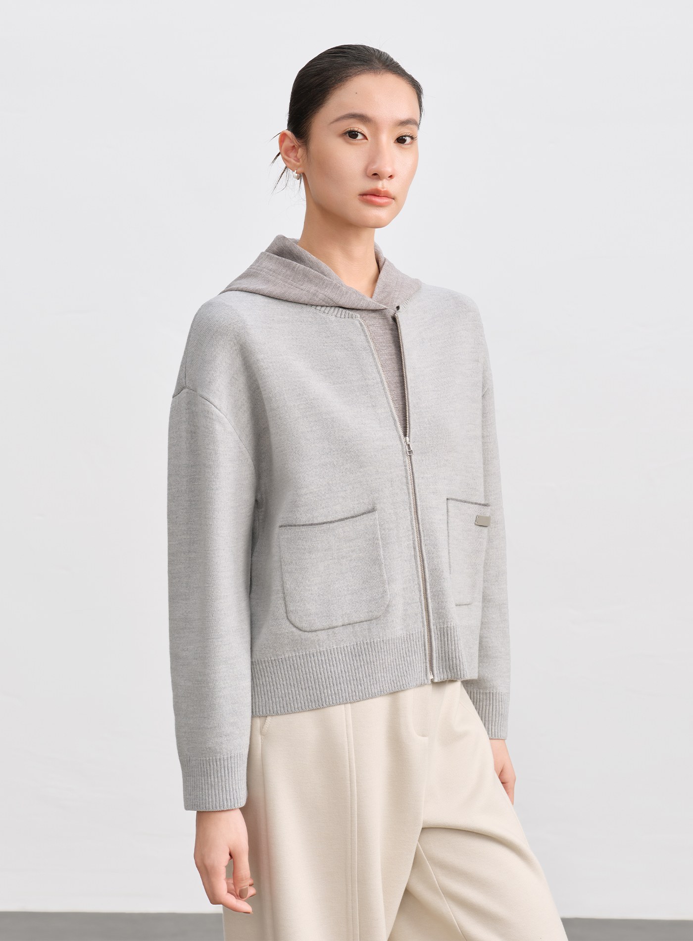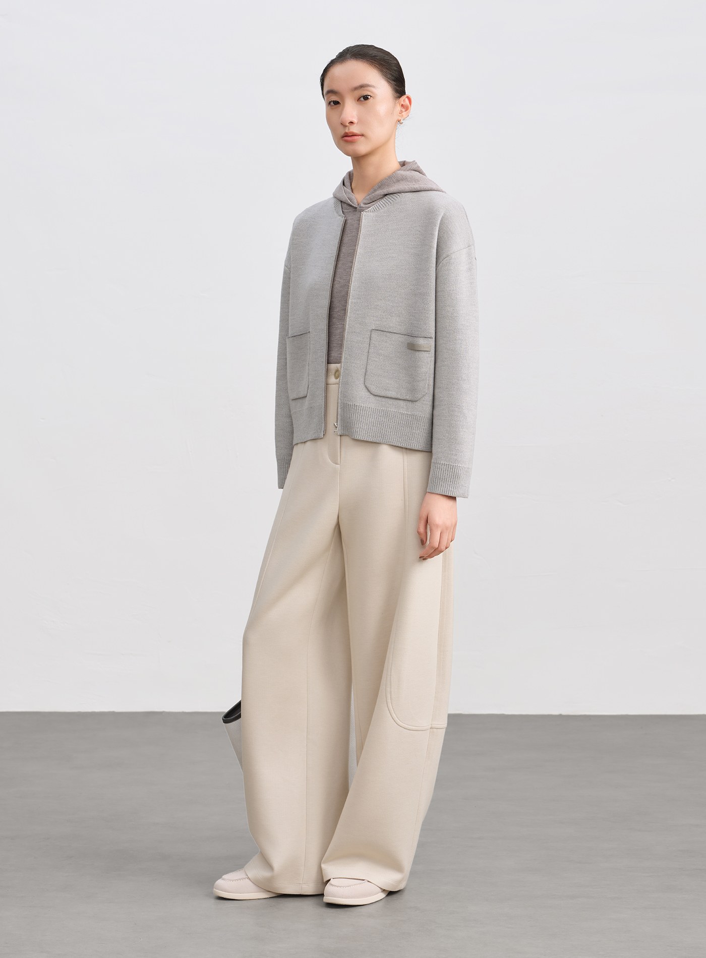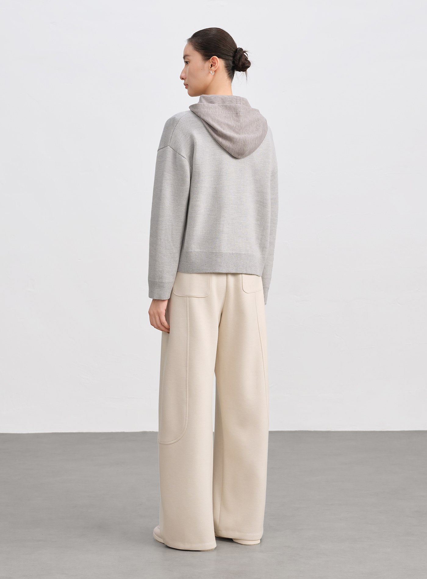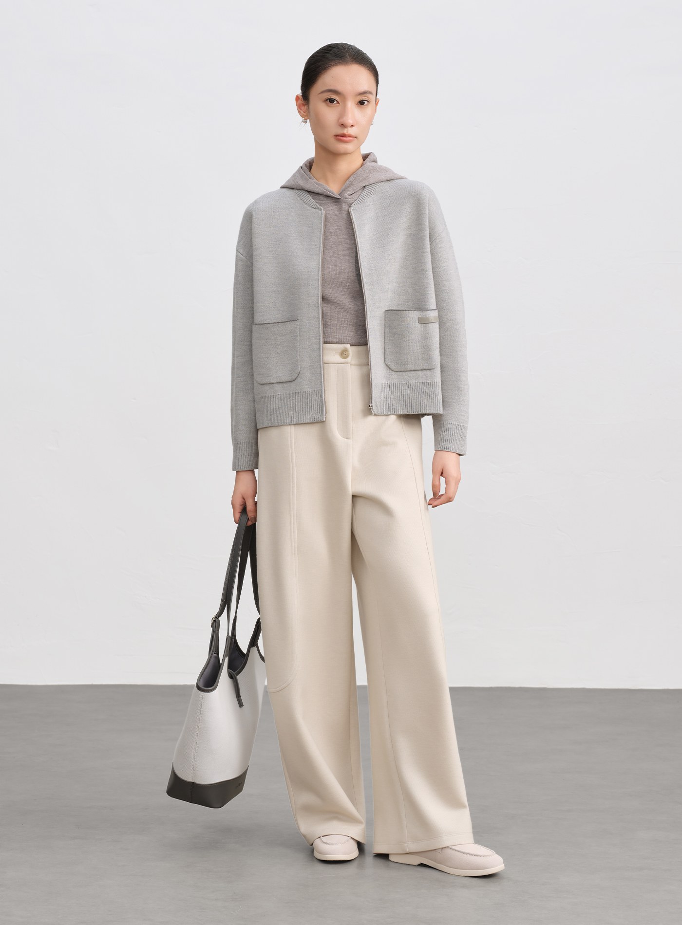 羊毛雙面呢圓領不對稱拼接大衣$191 USD