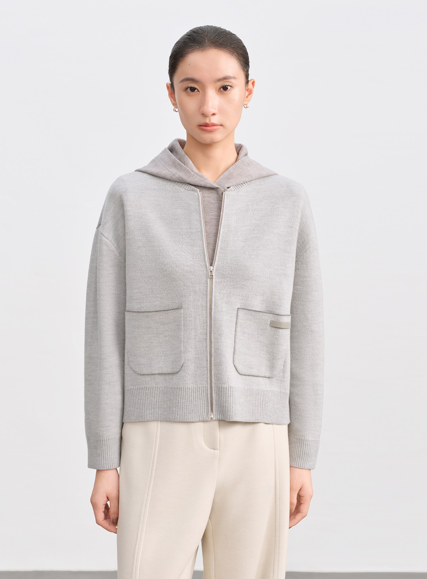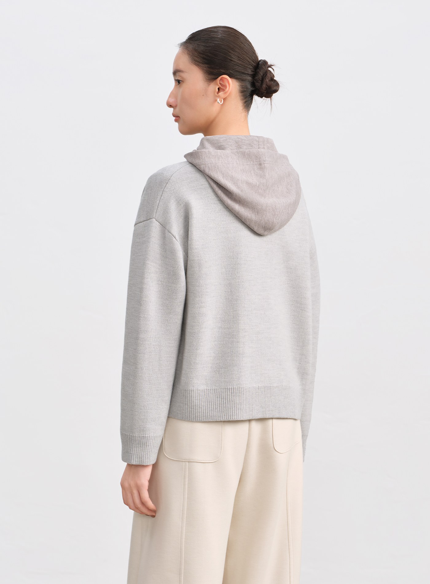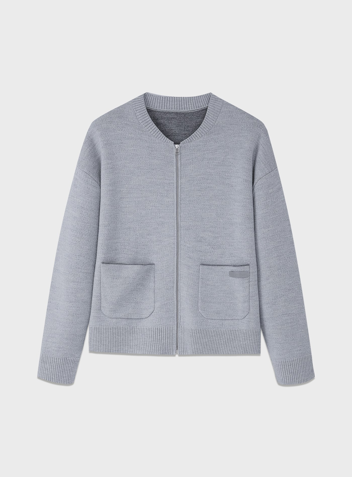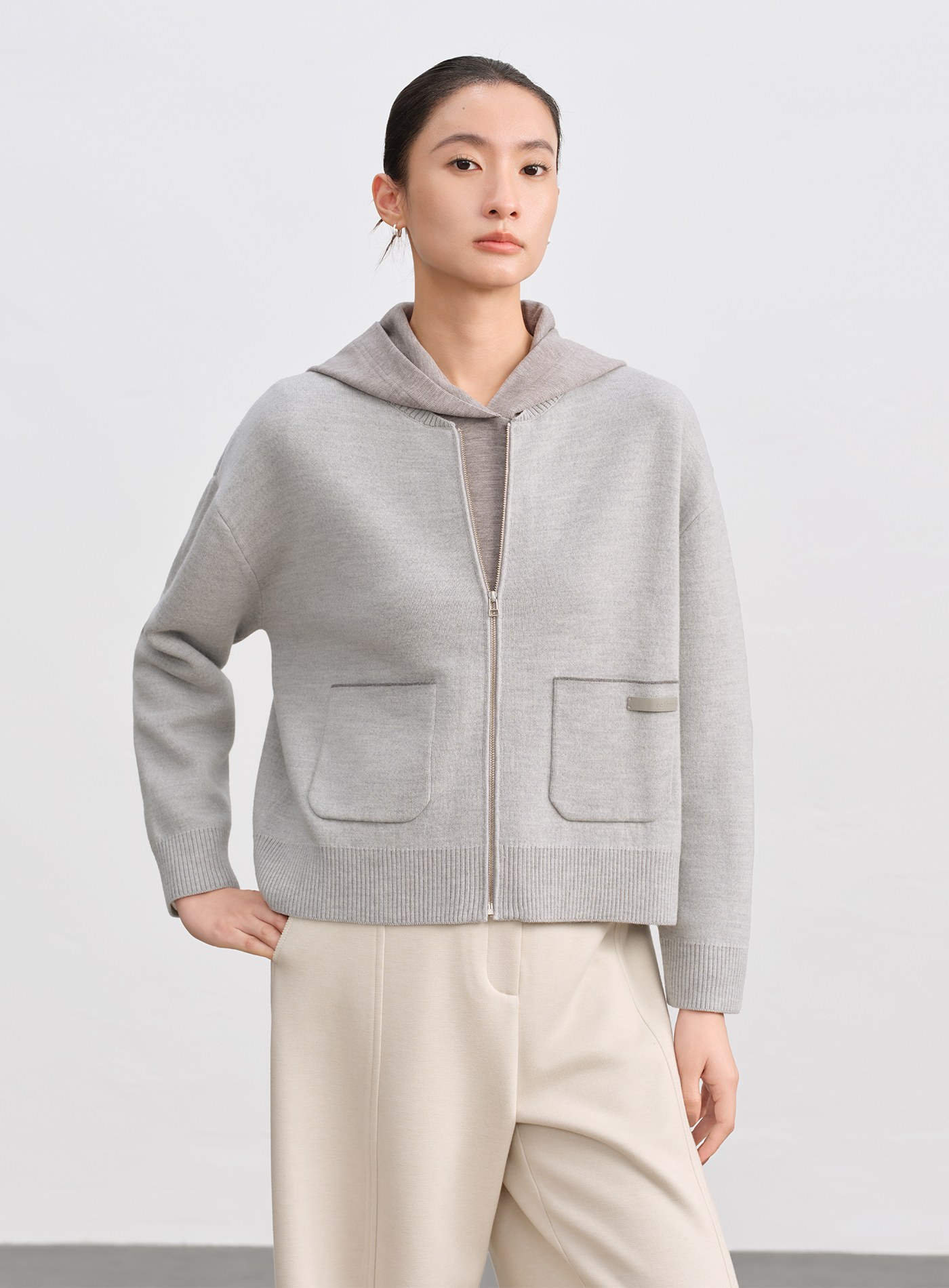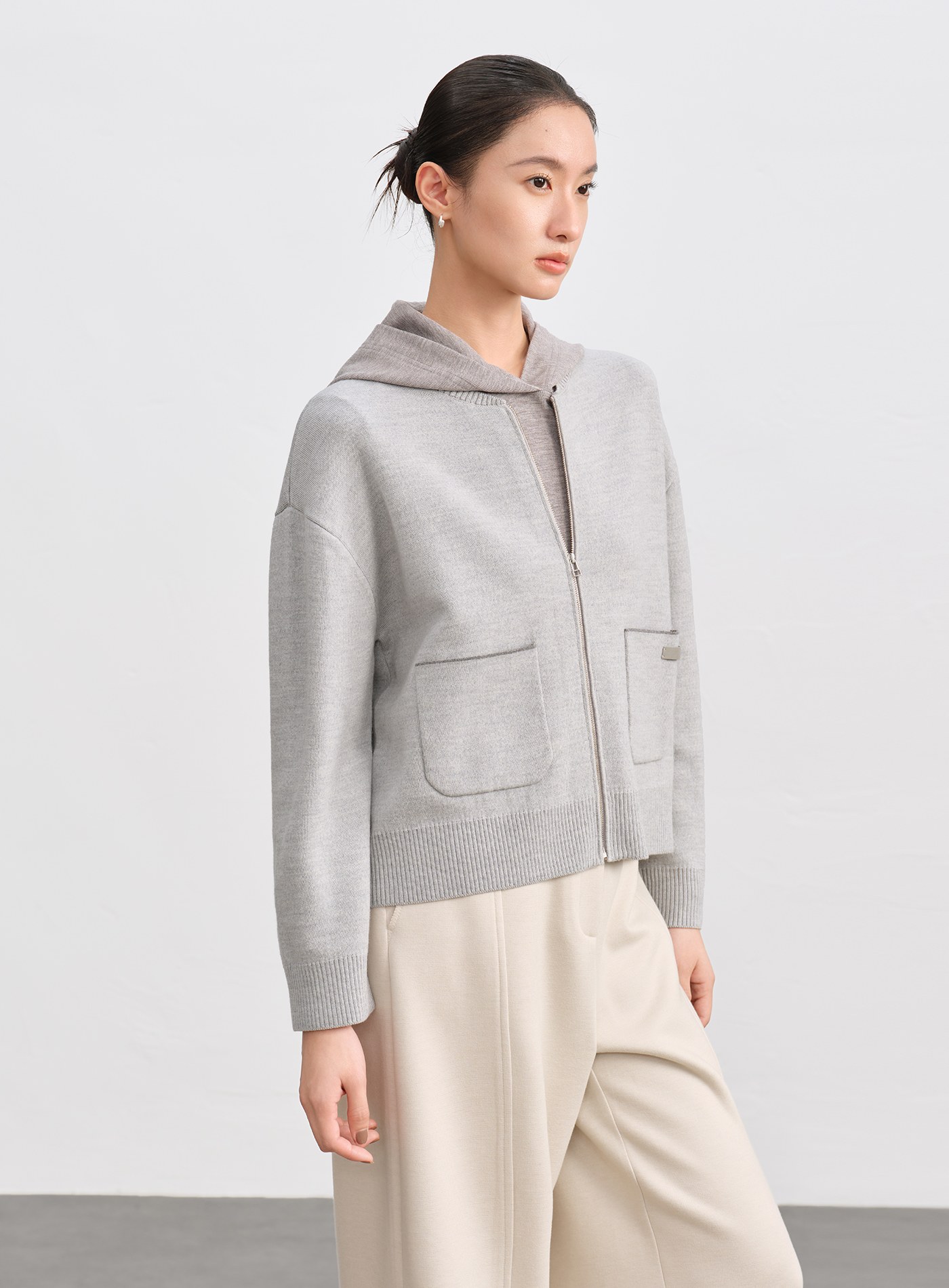 羊毛雙面呢圓領不對稱拼接大衣$191 USD