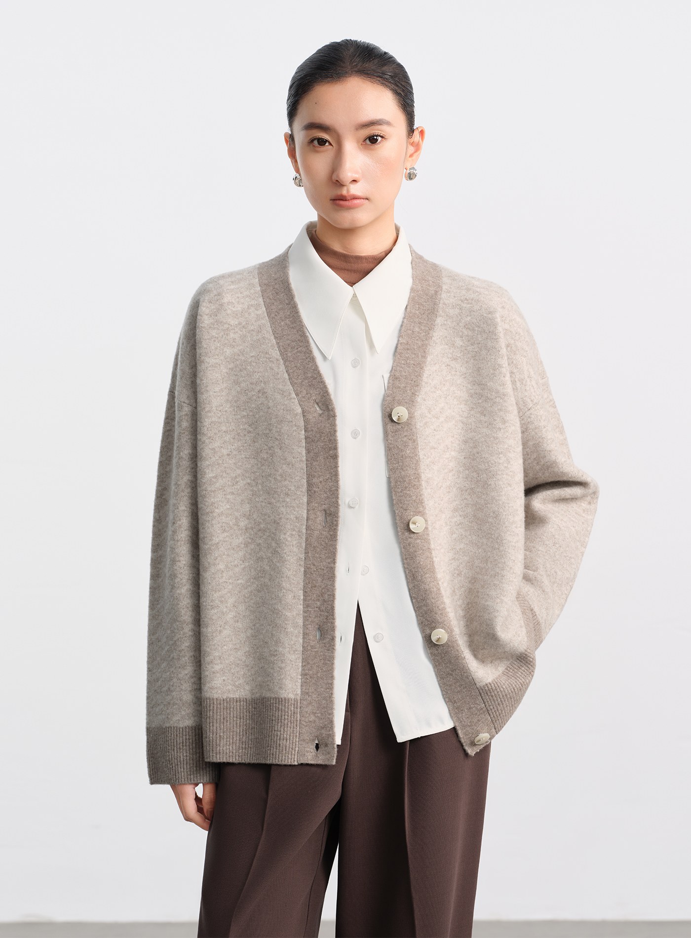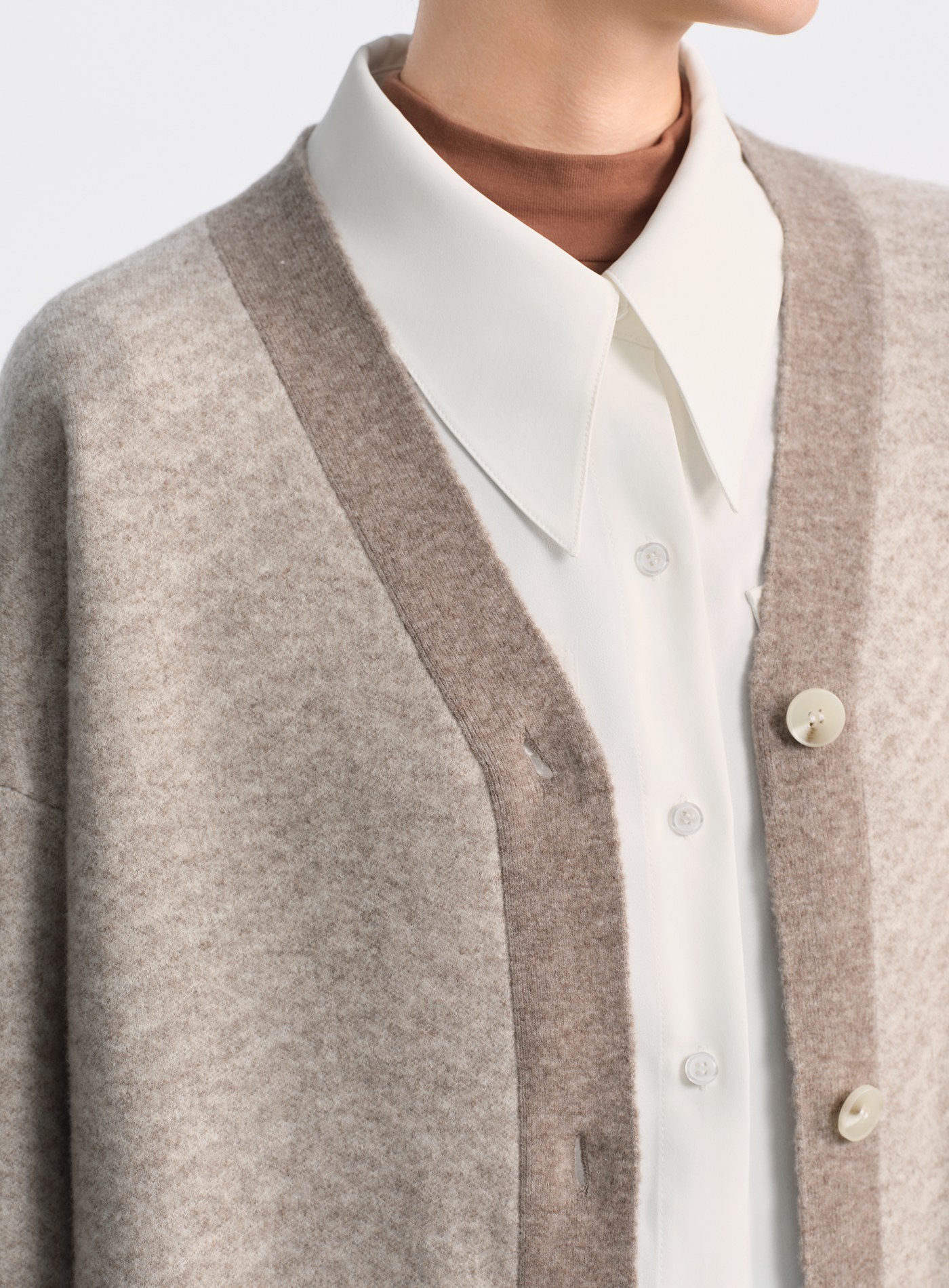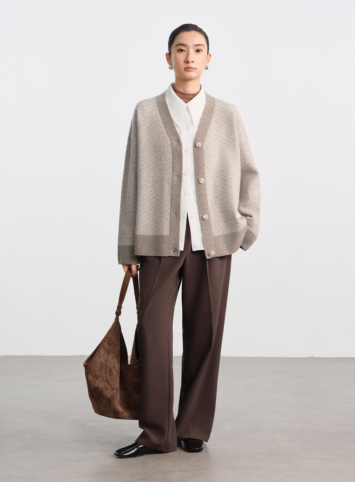 羊毛雙面呢圓領不對稱拼接大衣$191 USD