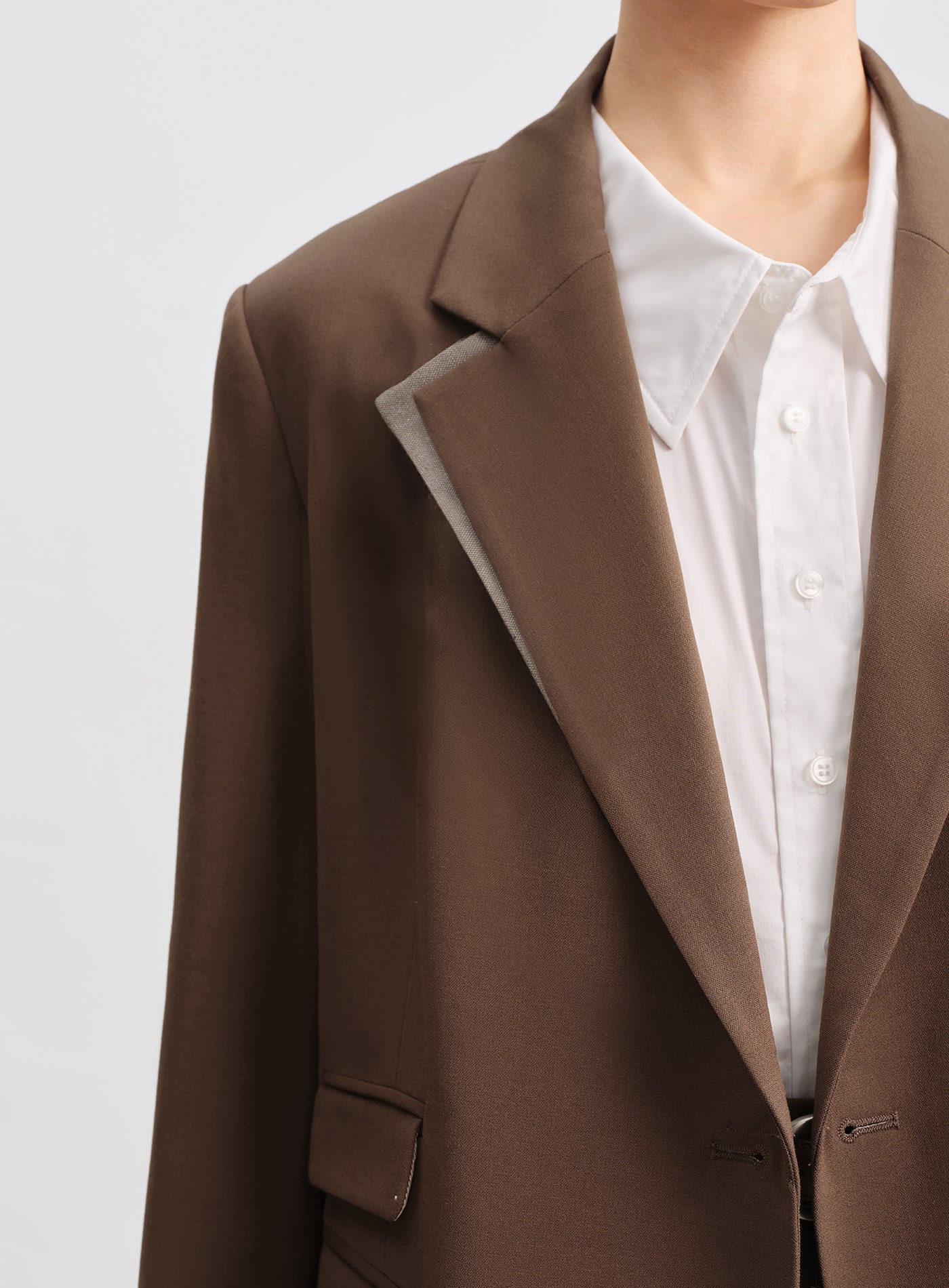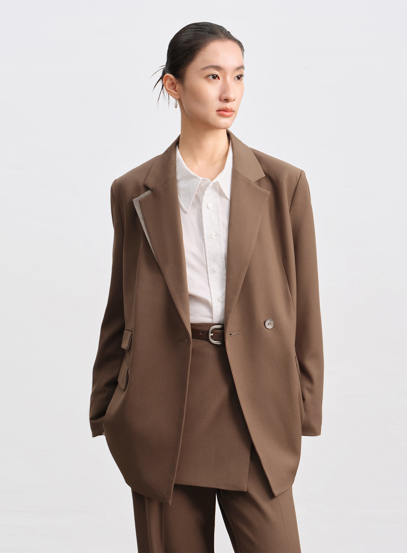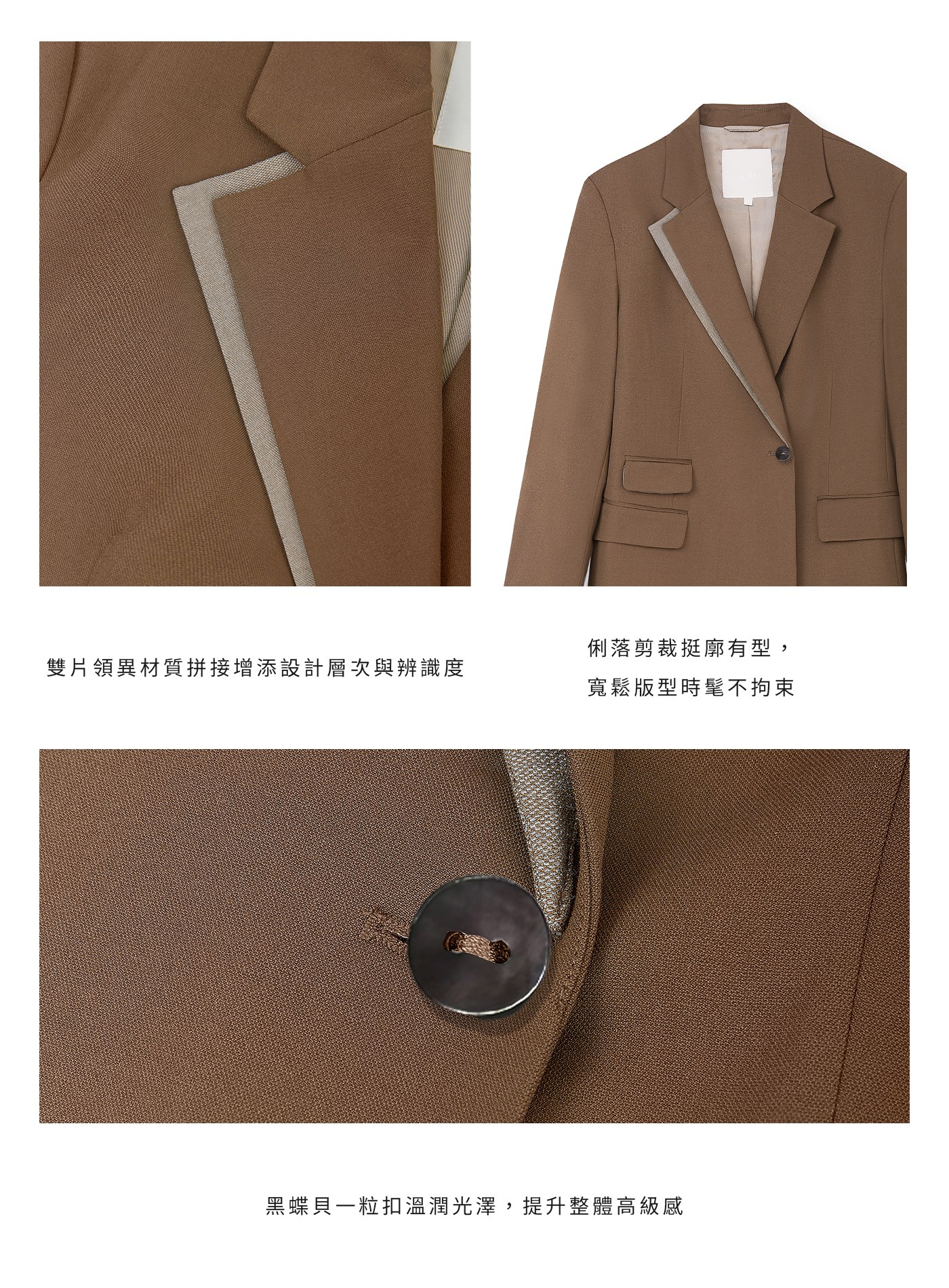 - 採用oversized版型,剪裁俐落,打破傳統西裝的拘束感