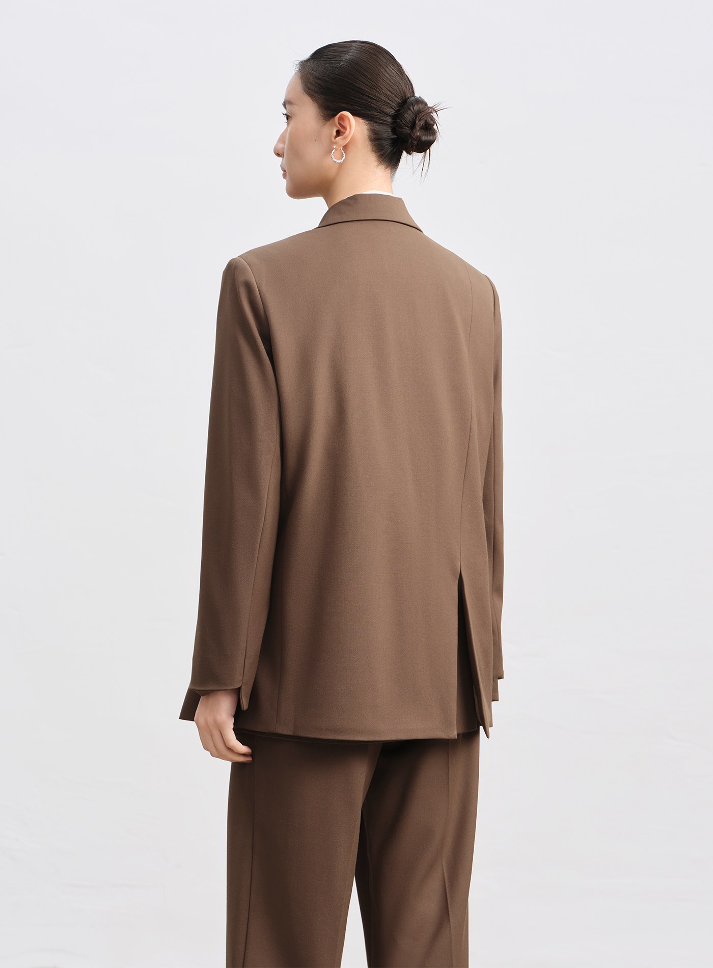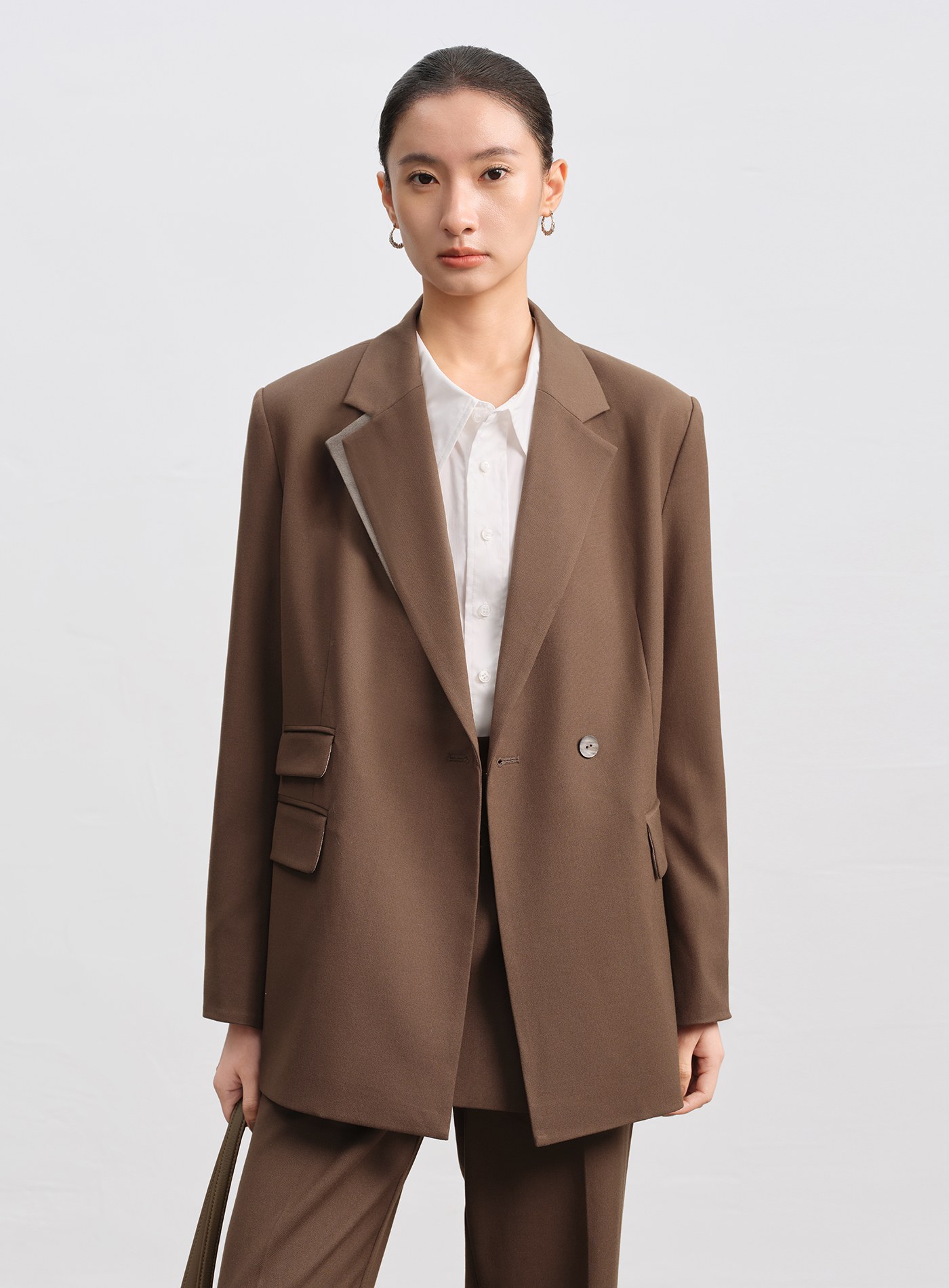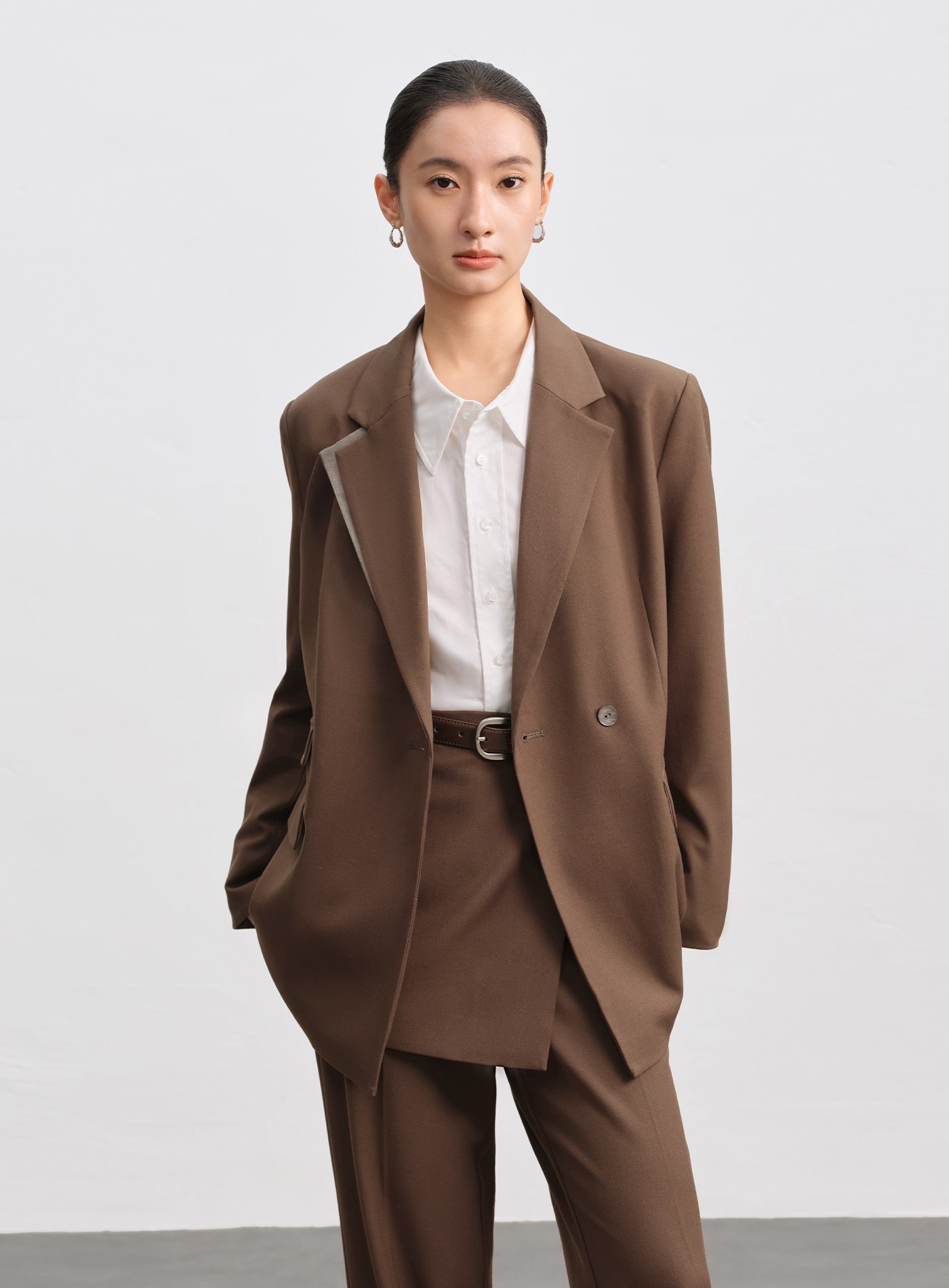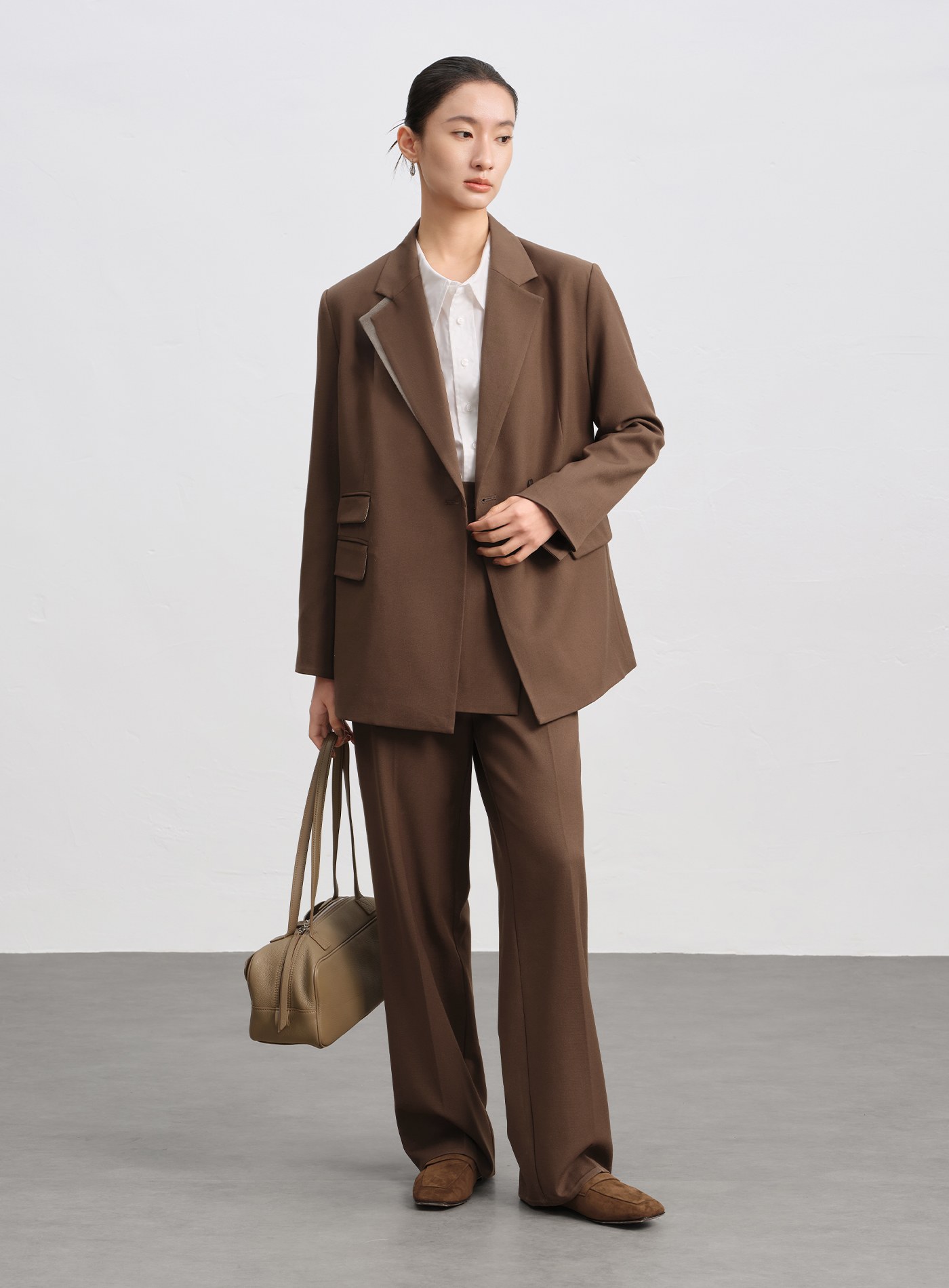 - 採用oversized版型,剪裁俐落,打破傳統西裝的拘束感
