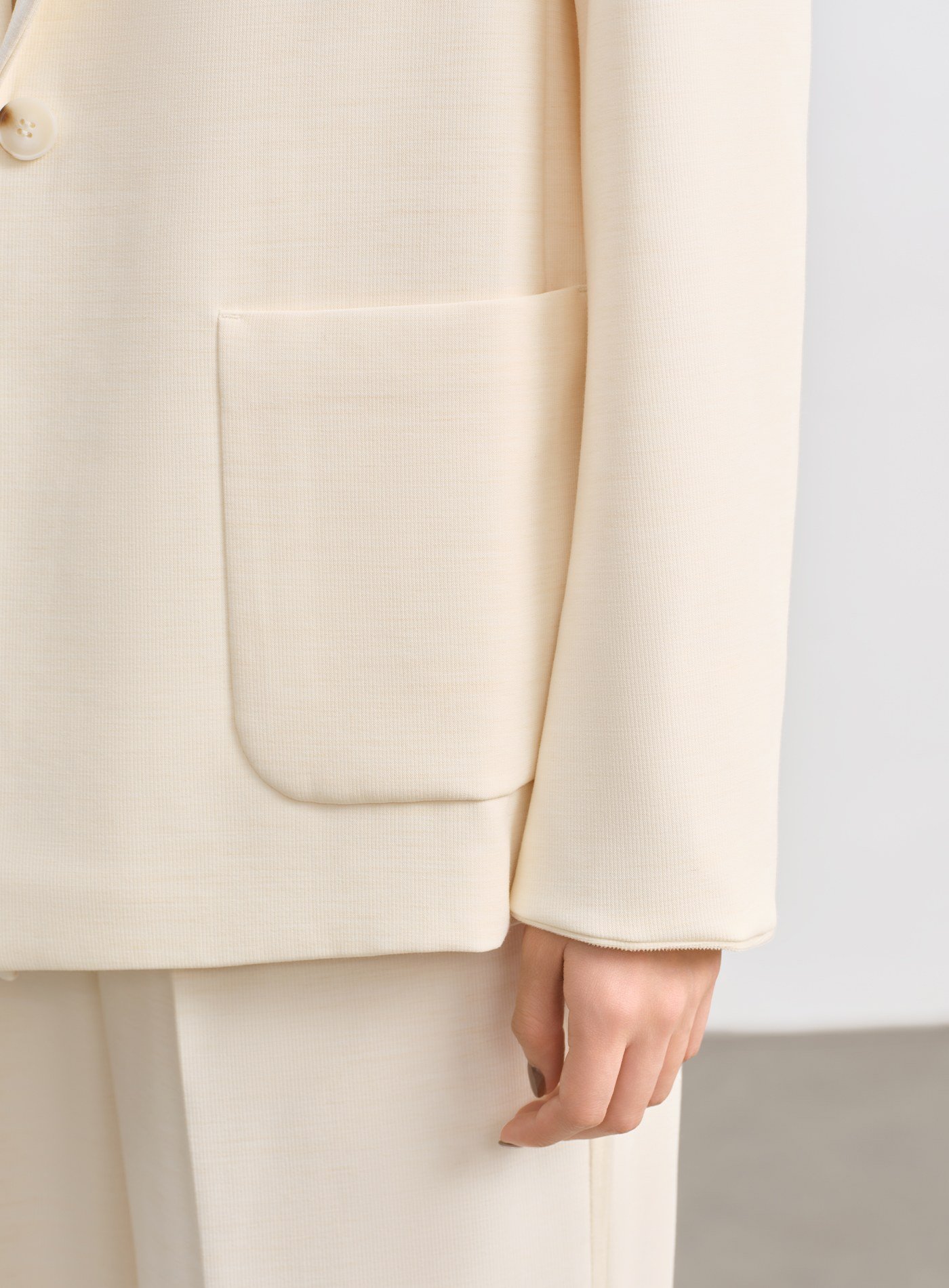 - 前胸貼袋、雙側插袋皆為立體剪裁、門襟單釦