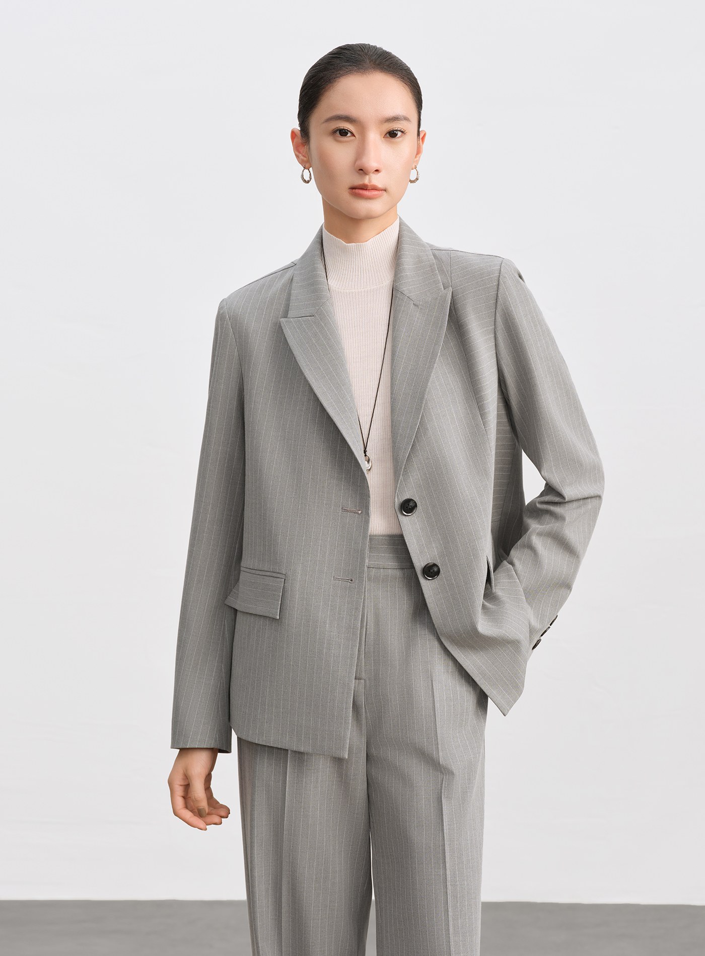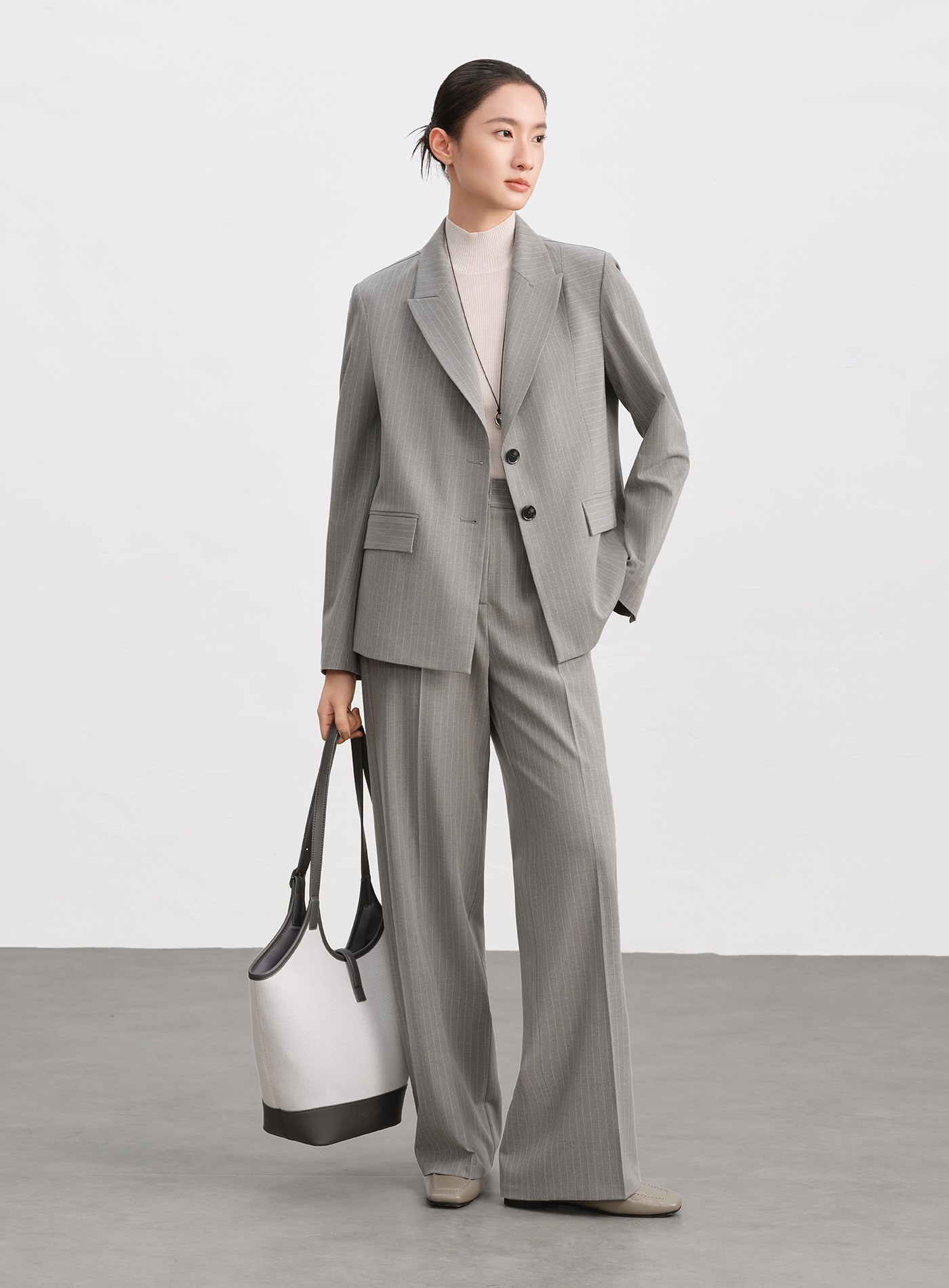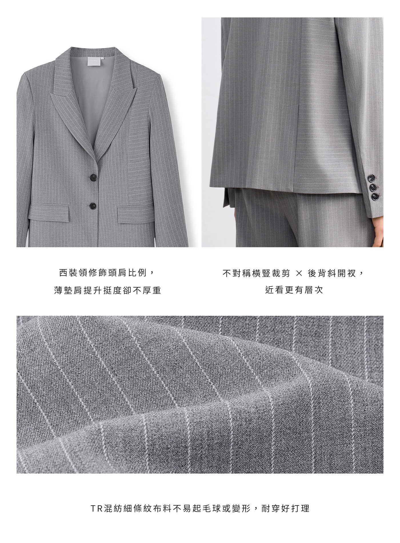 - 布料選用TR混紡經典細條紋,觸感乾爽、垂度自然、挺拔有骨感,穿起來立體有型,不易起毛球或變形