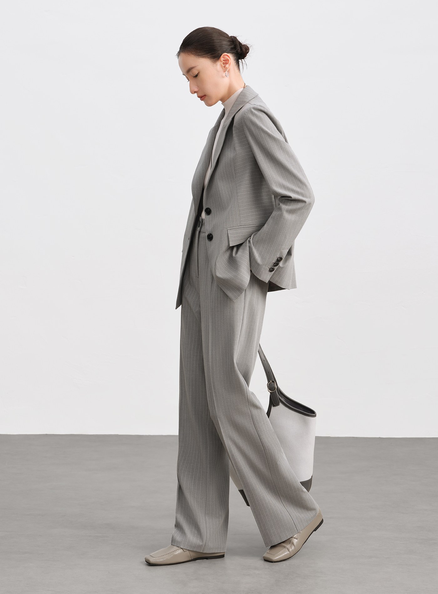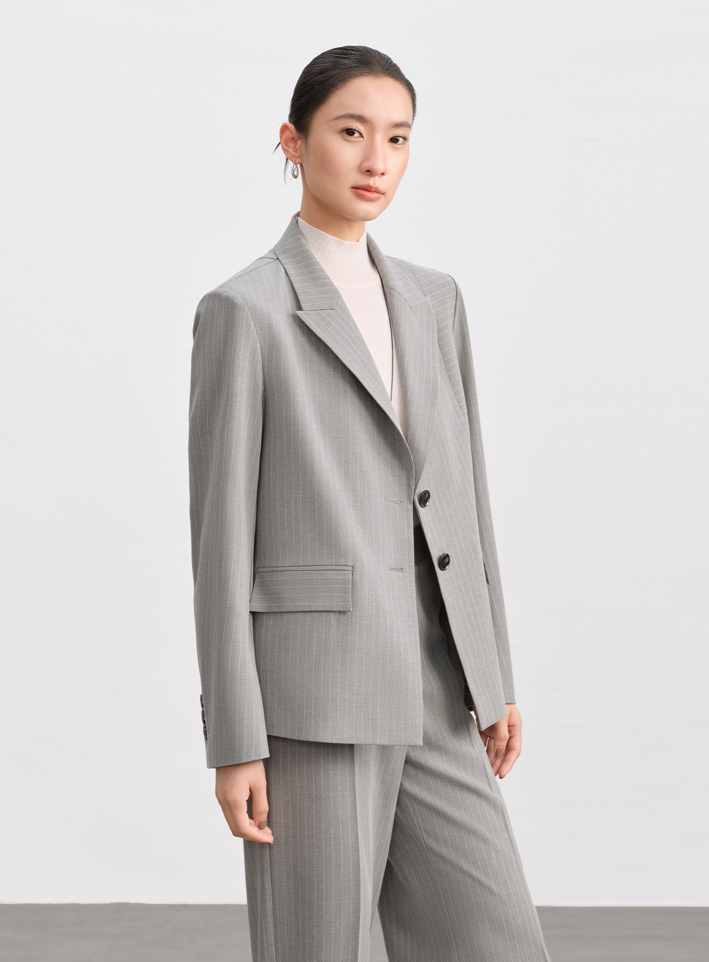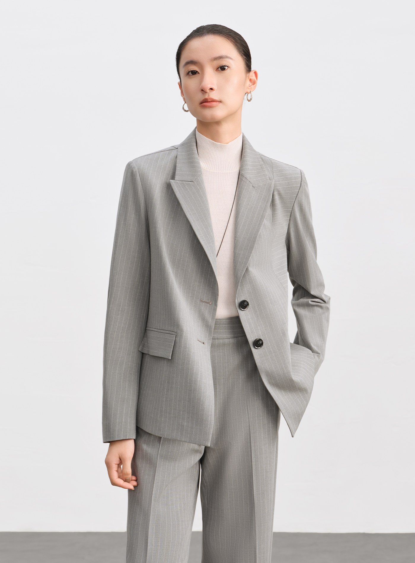 - 布料選用TR混紡經典細條紋,觸感乾爽、垂度自然、挺拔有骨感,穿起來立體有型,不易起毛球或變形