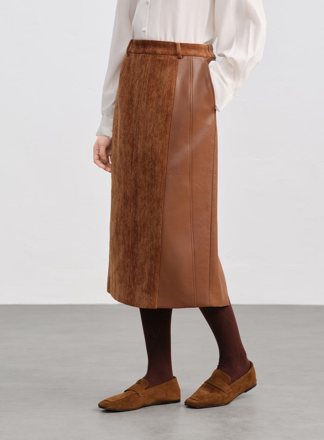 - 雙側插袋運用袋布外翻 + 明線裝飾工藝,袋口方正挺括