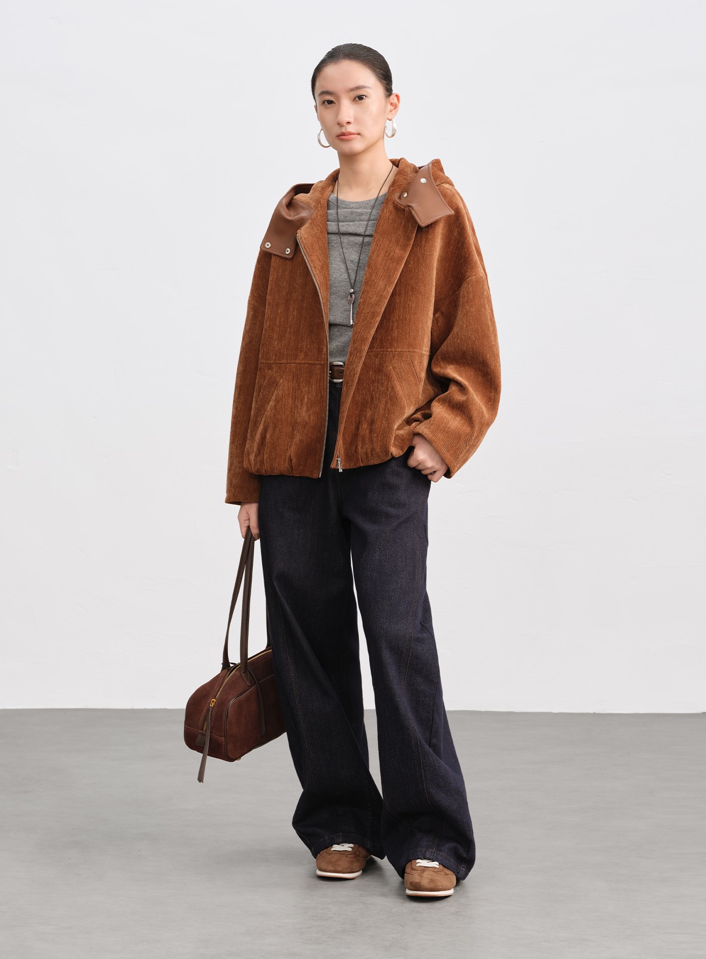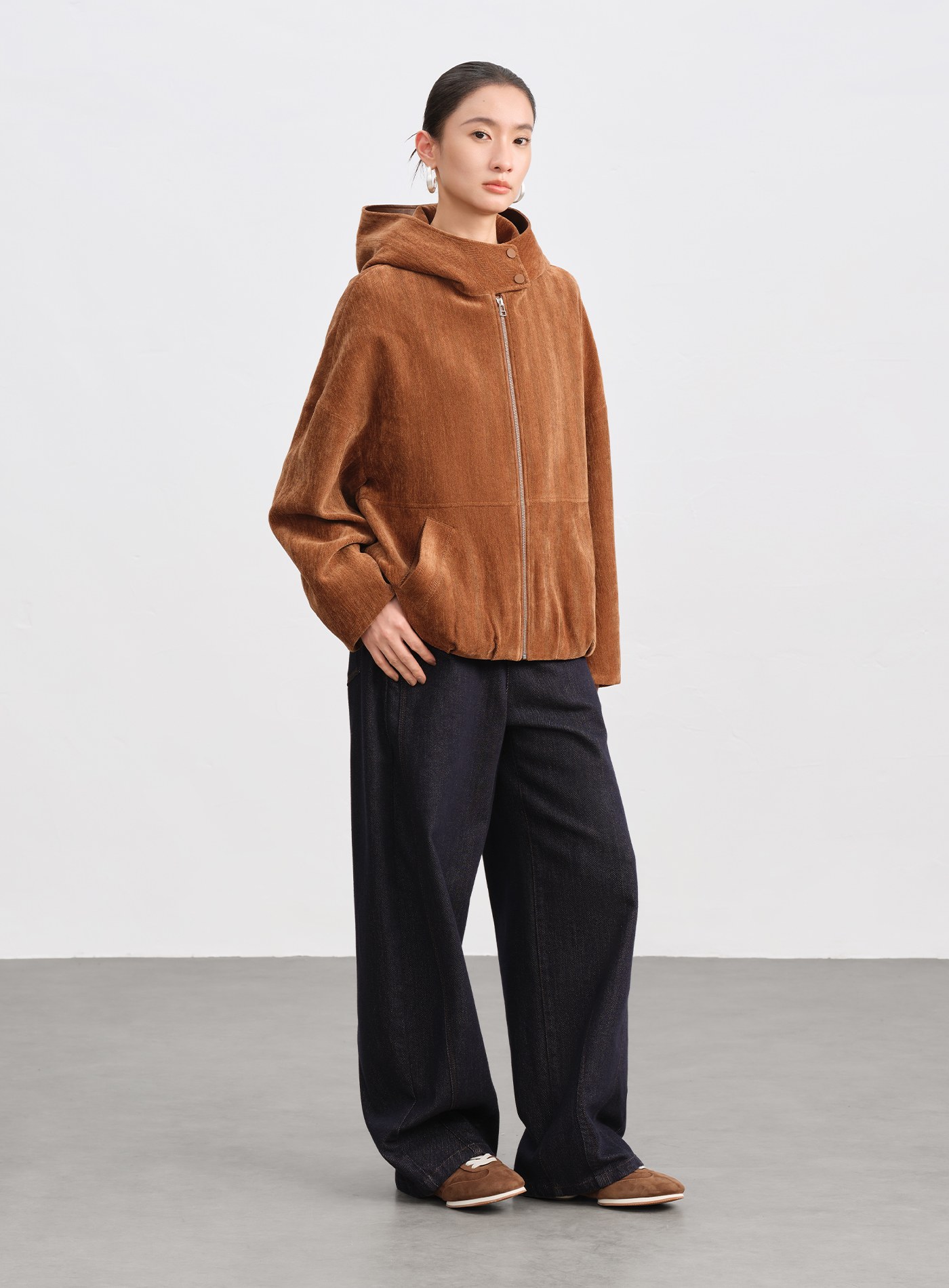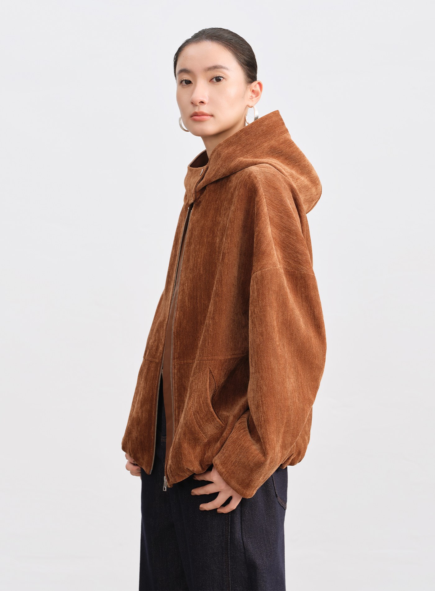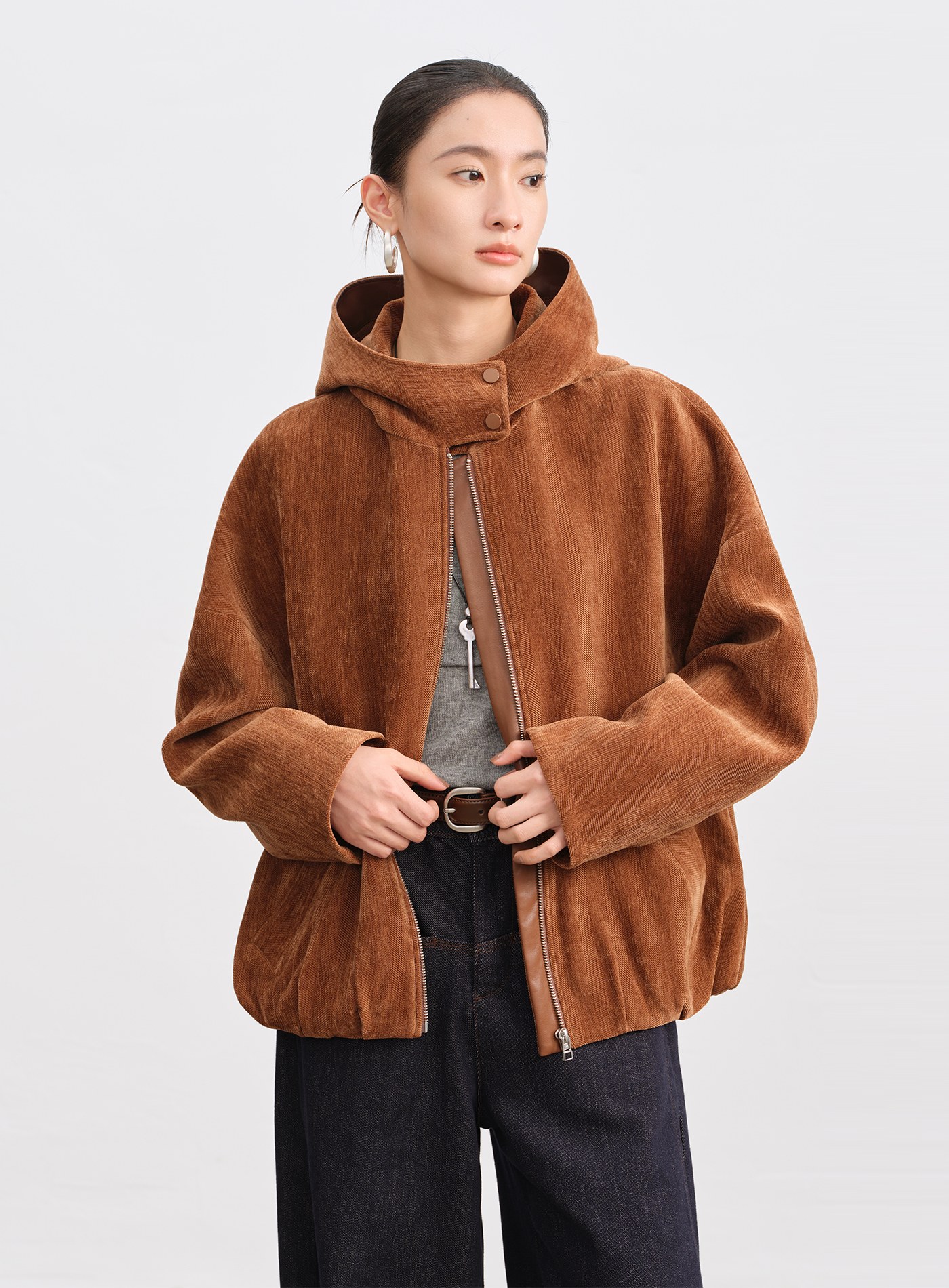- 連帽與立領雙結構設計,領部經立體裁剪,自然貼合頸部