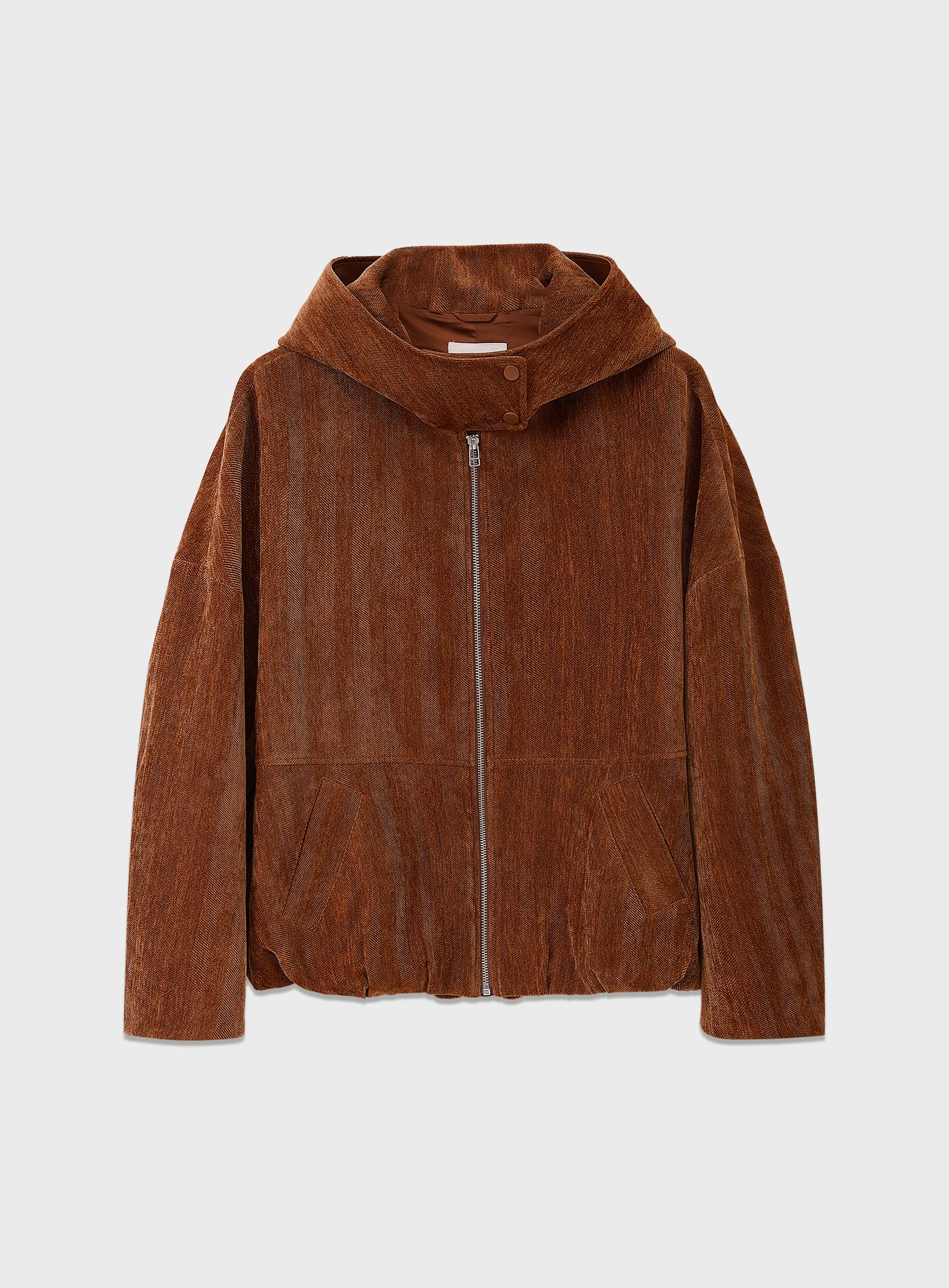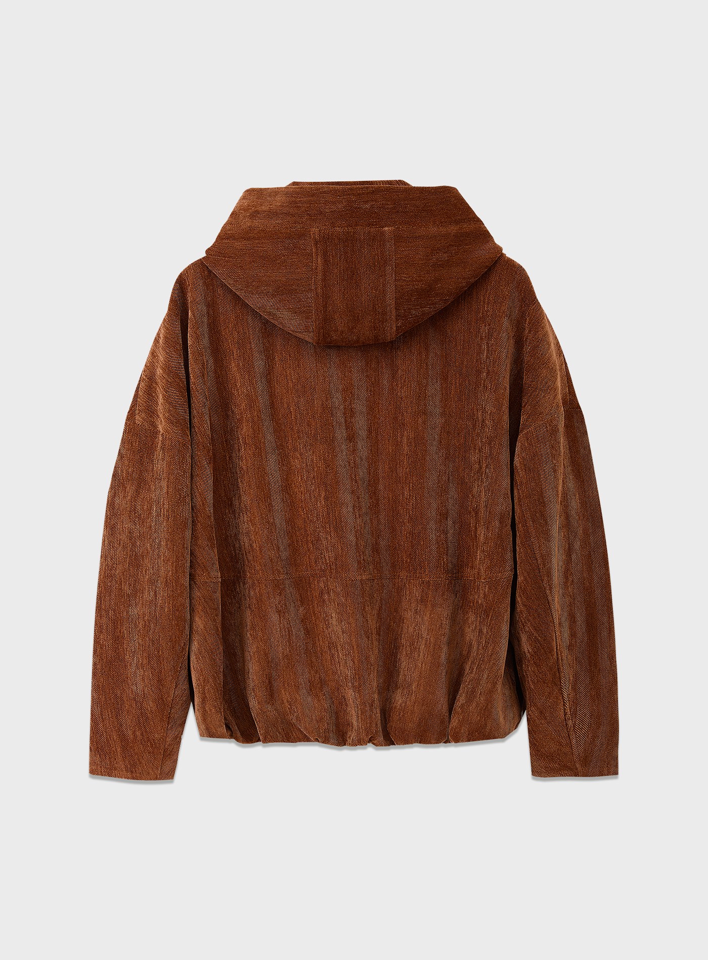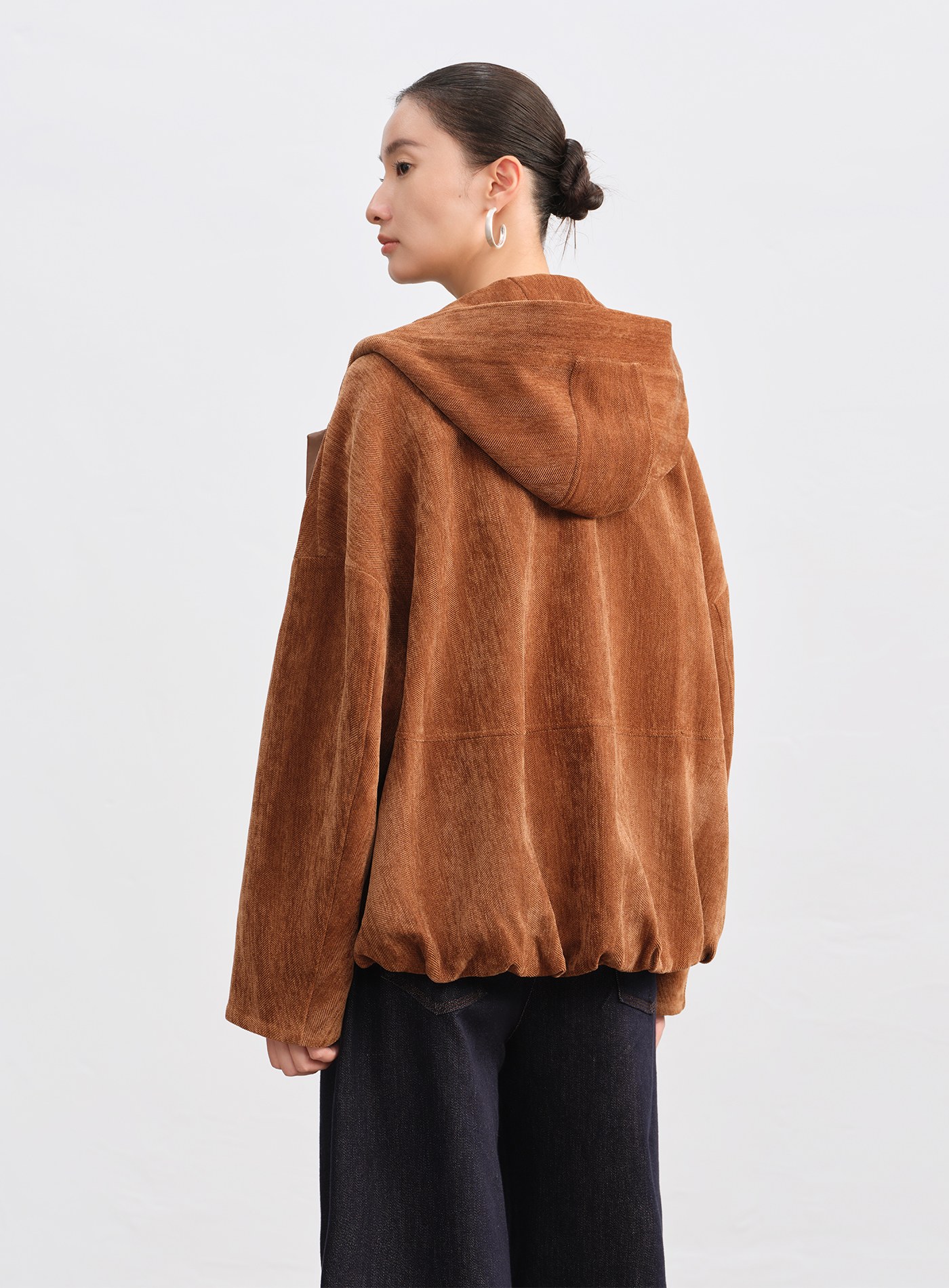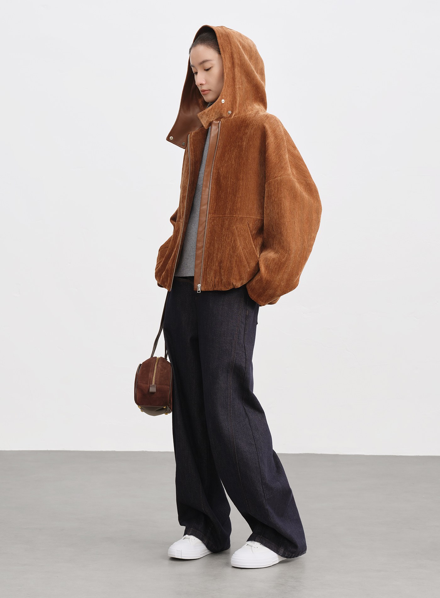 - 連帽與立領雙結構設計,領部經立體裁剪,自然貼合頸部