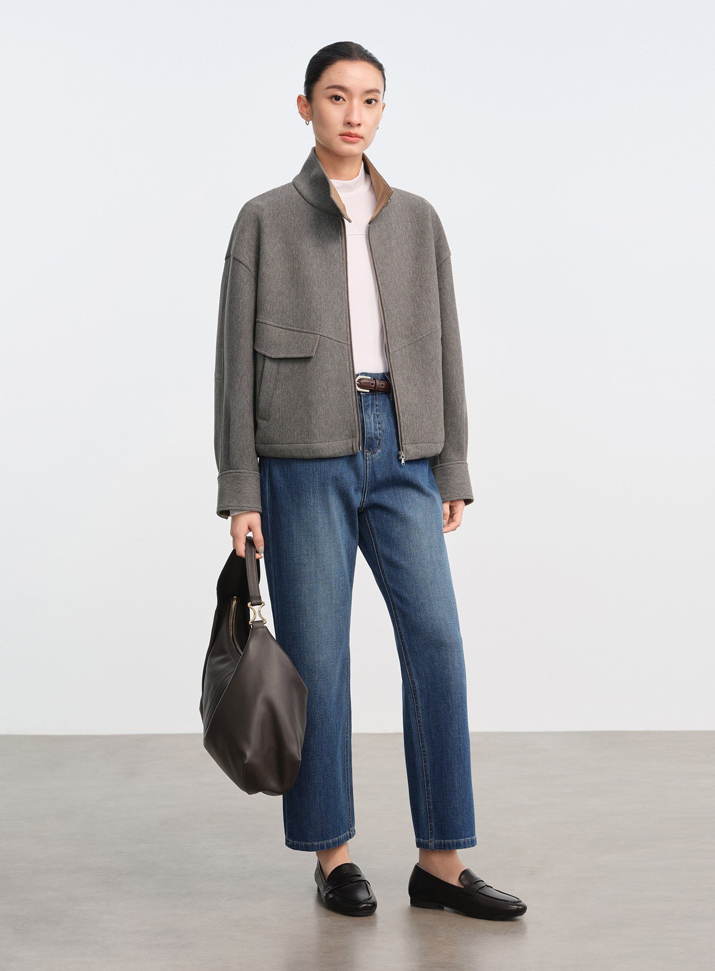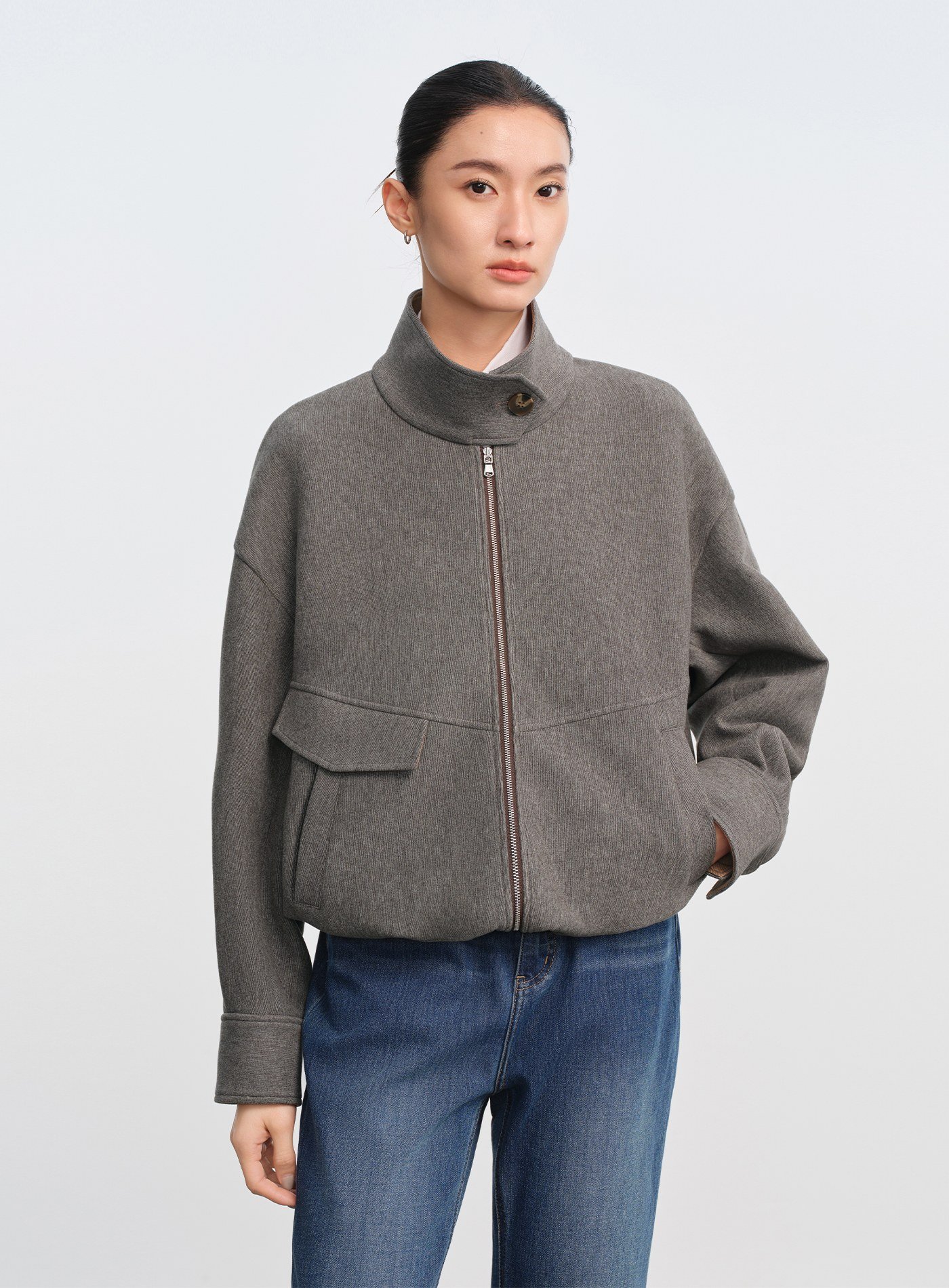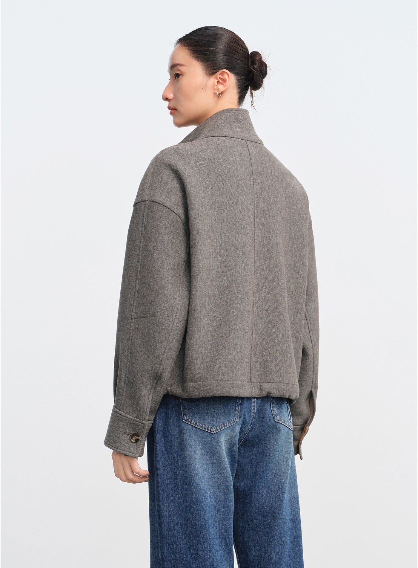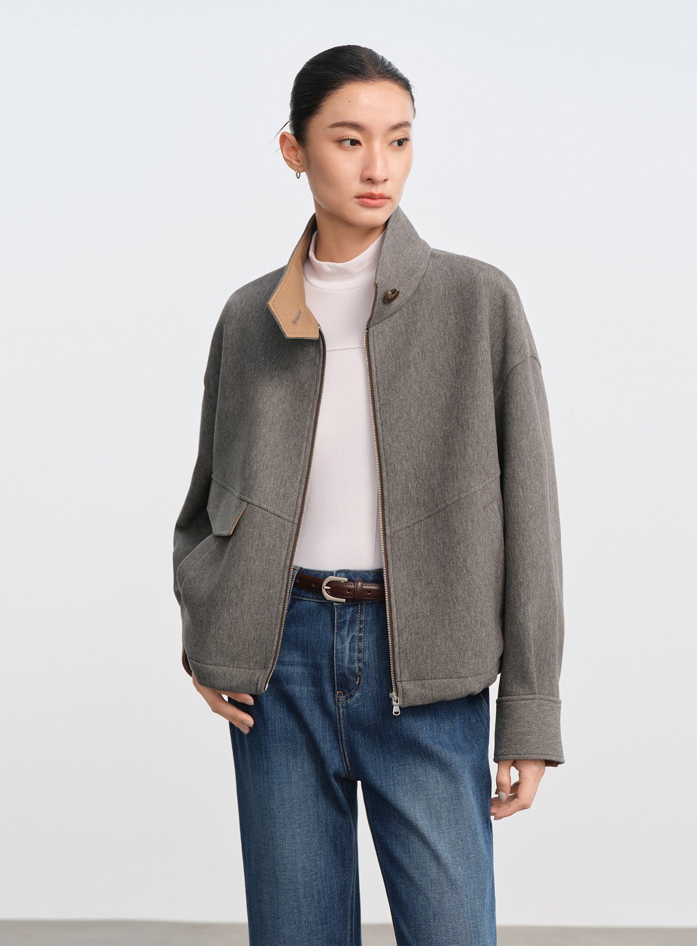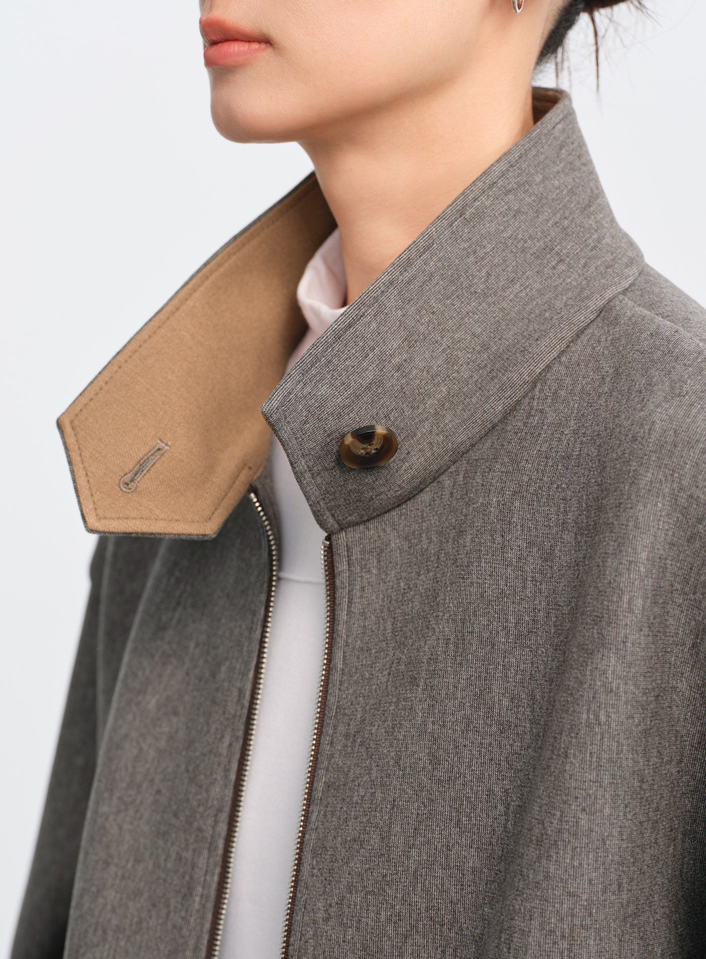 - 立領設計休閒隨性,透過立體結構提升造型精緻度;領內拼接異材質細節,低調耐看