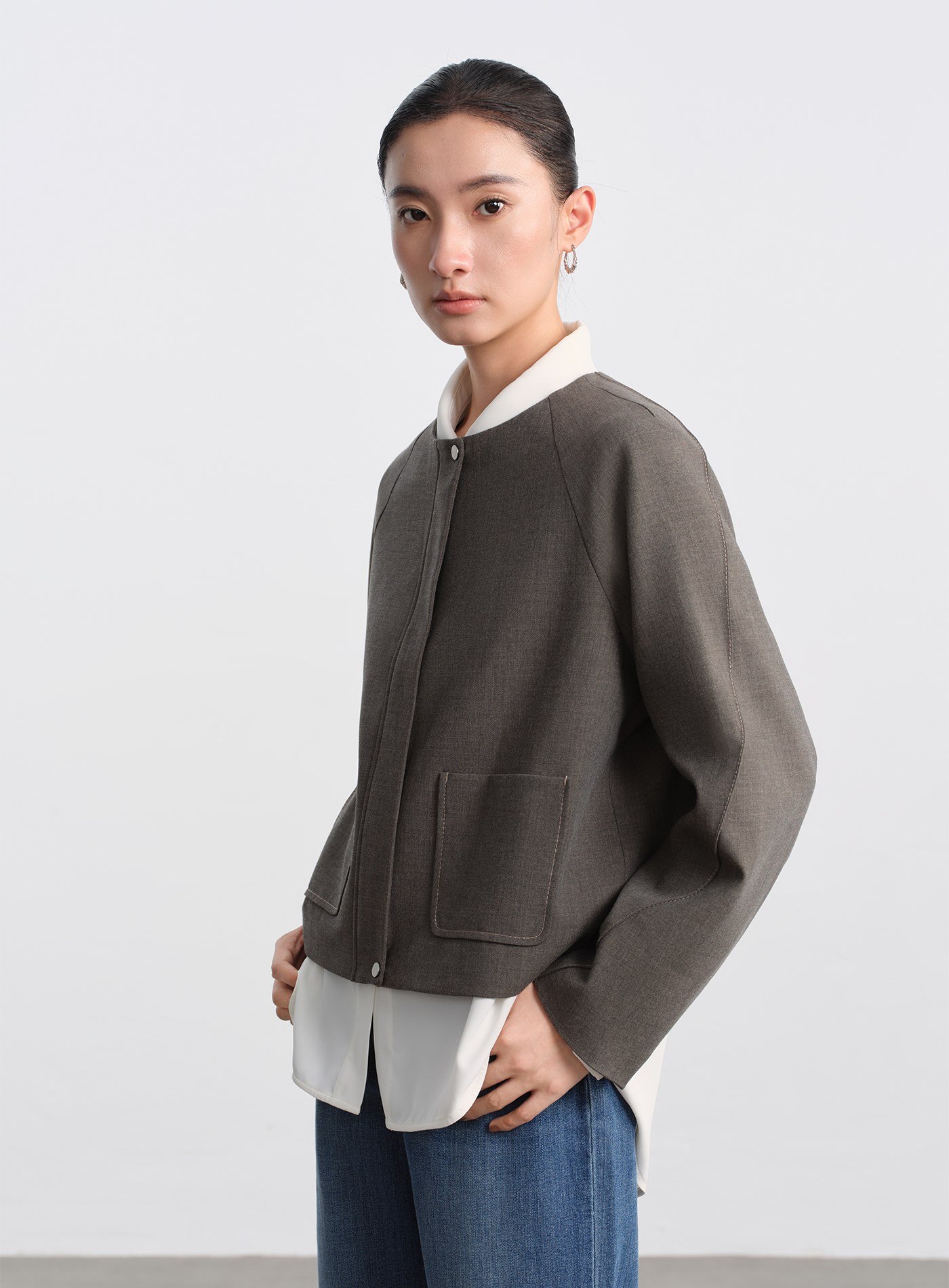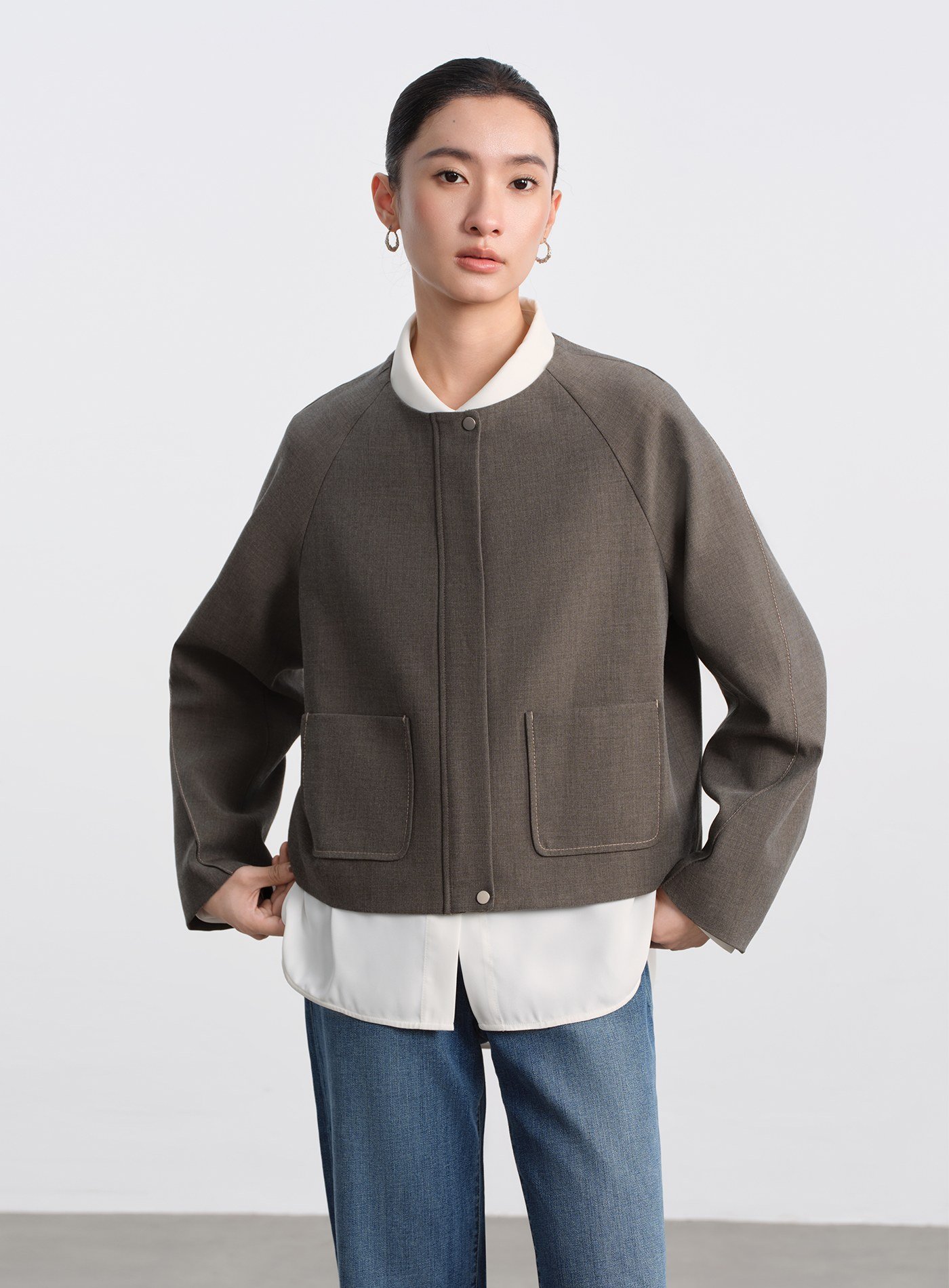- 插肩袖設計讓肩部自然延伸,視覺上柔化肩線,同時提升手臂活動度,穿著更自在