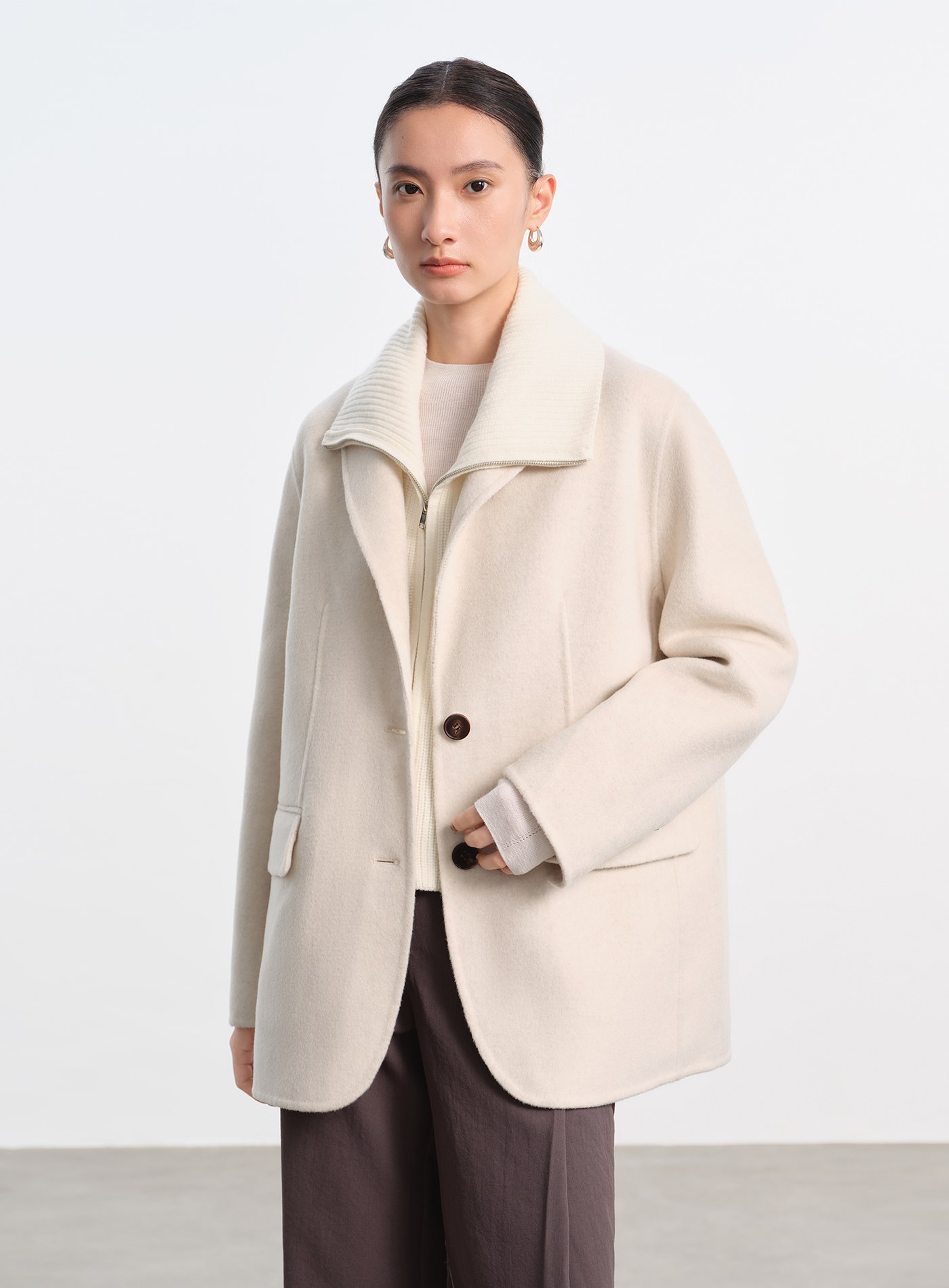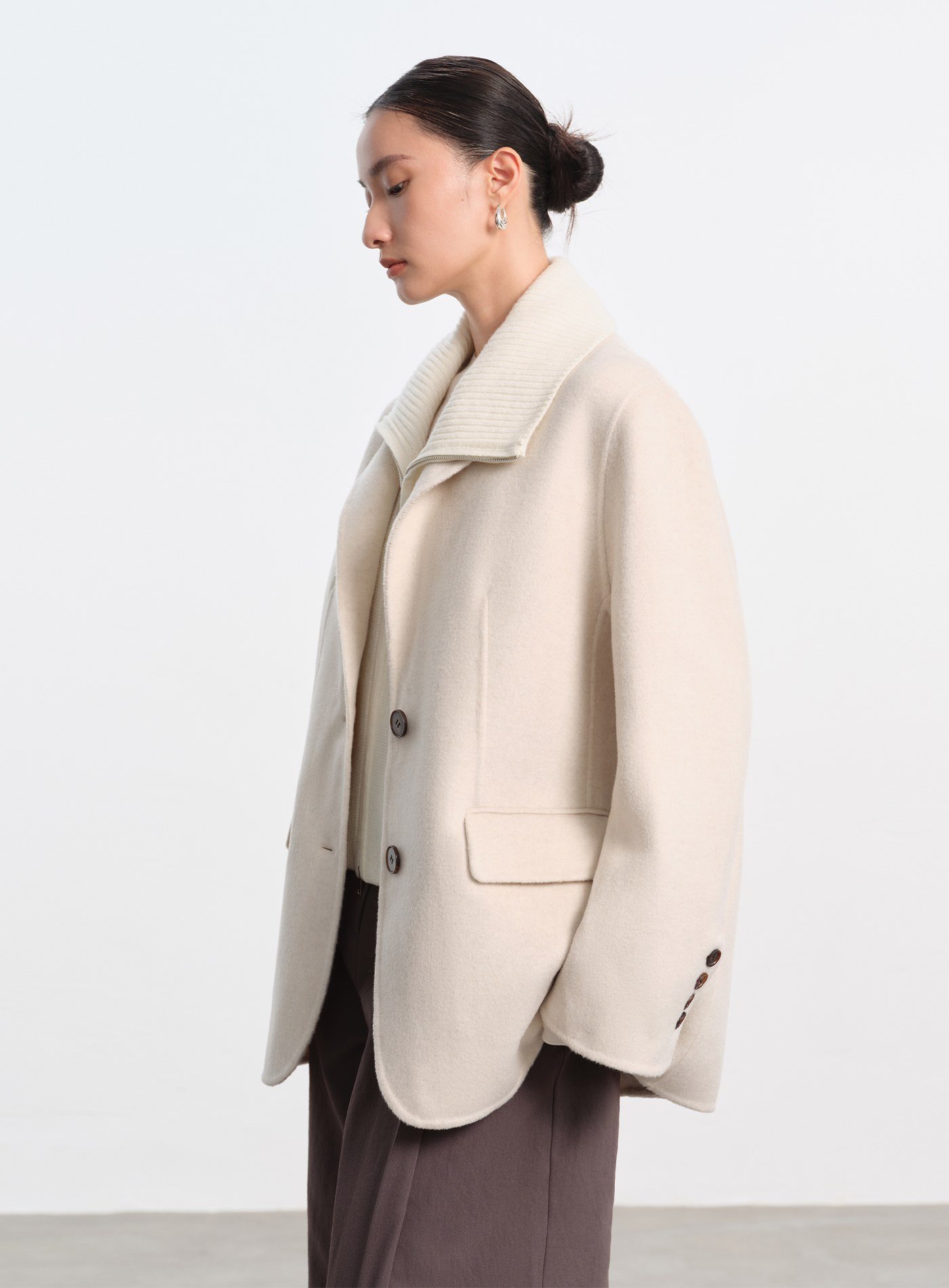 - 精準的垂墜度與立體支撐力,使披肩版型自然服貼、不軟塌、不厚重,保持俐落形態