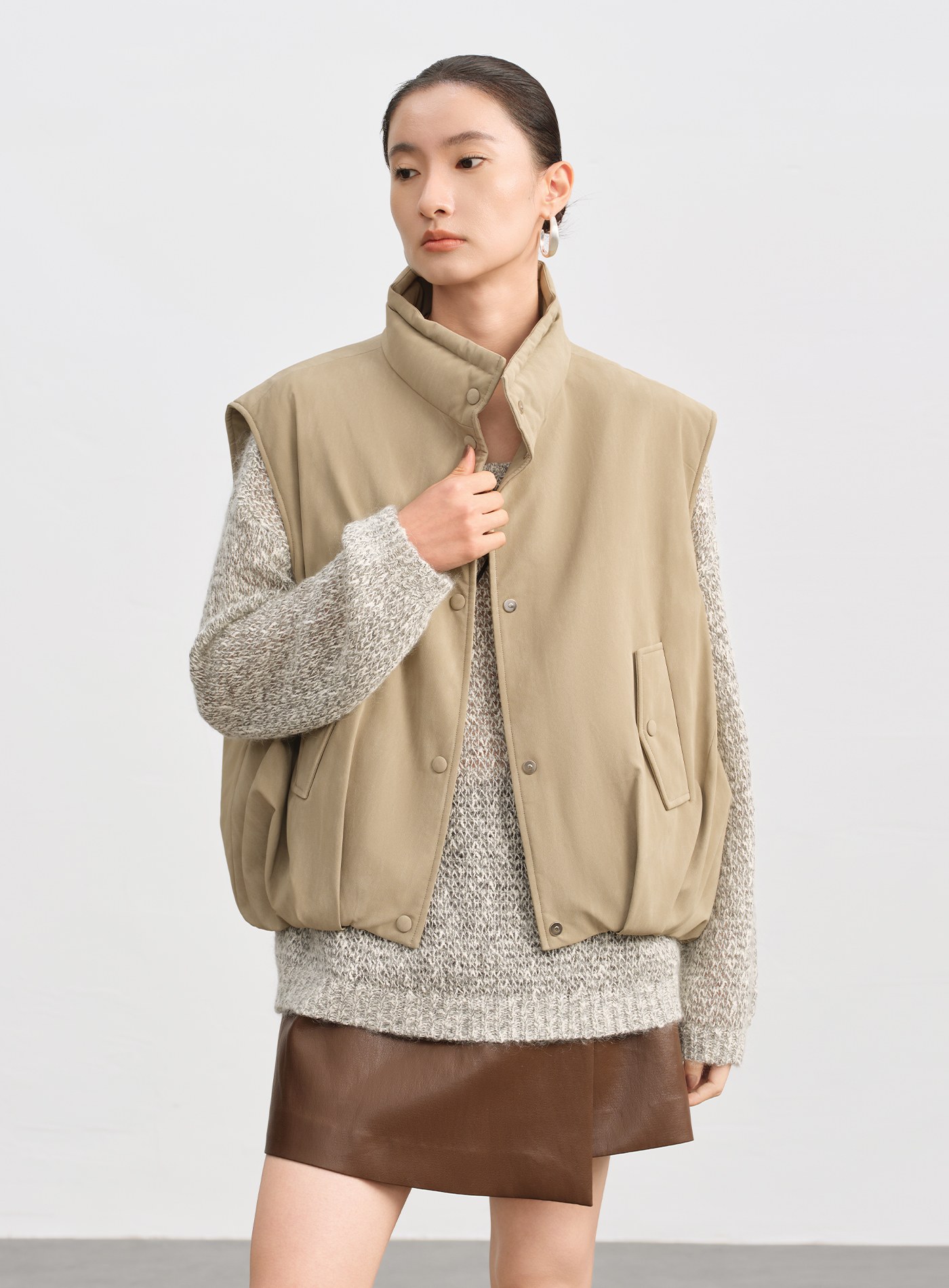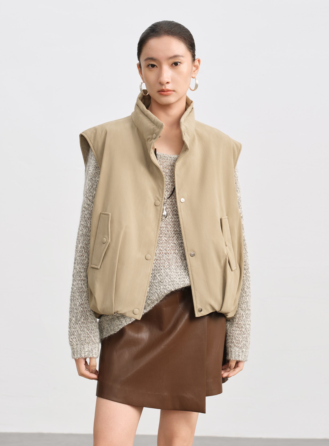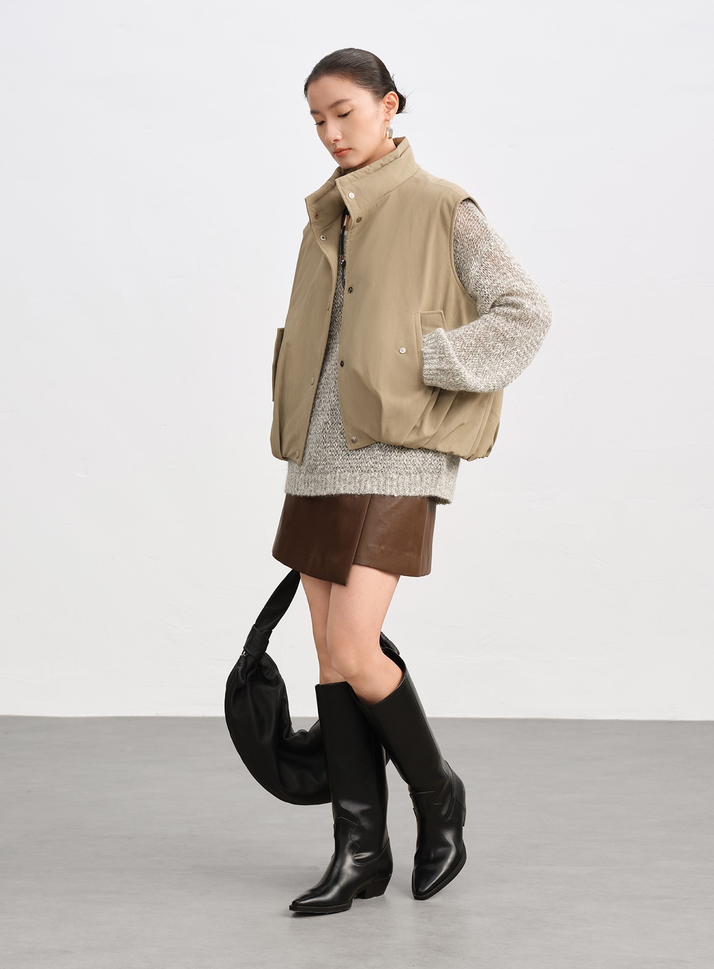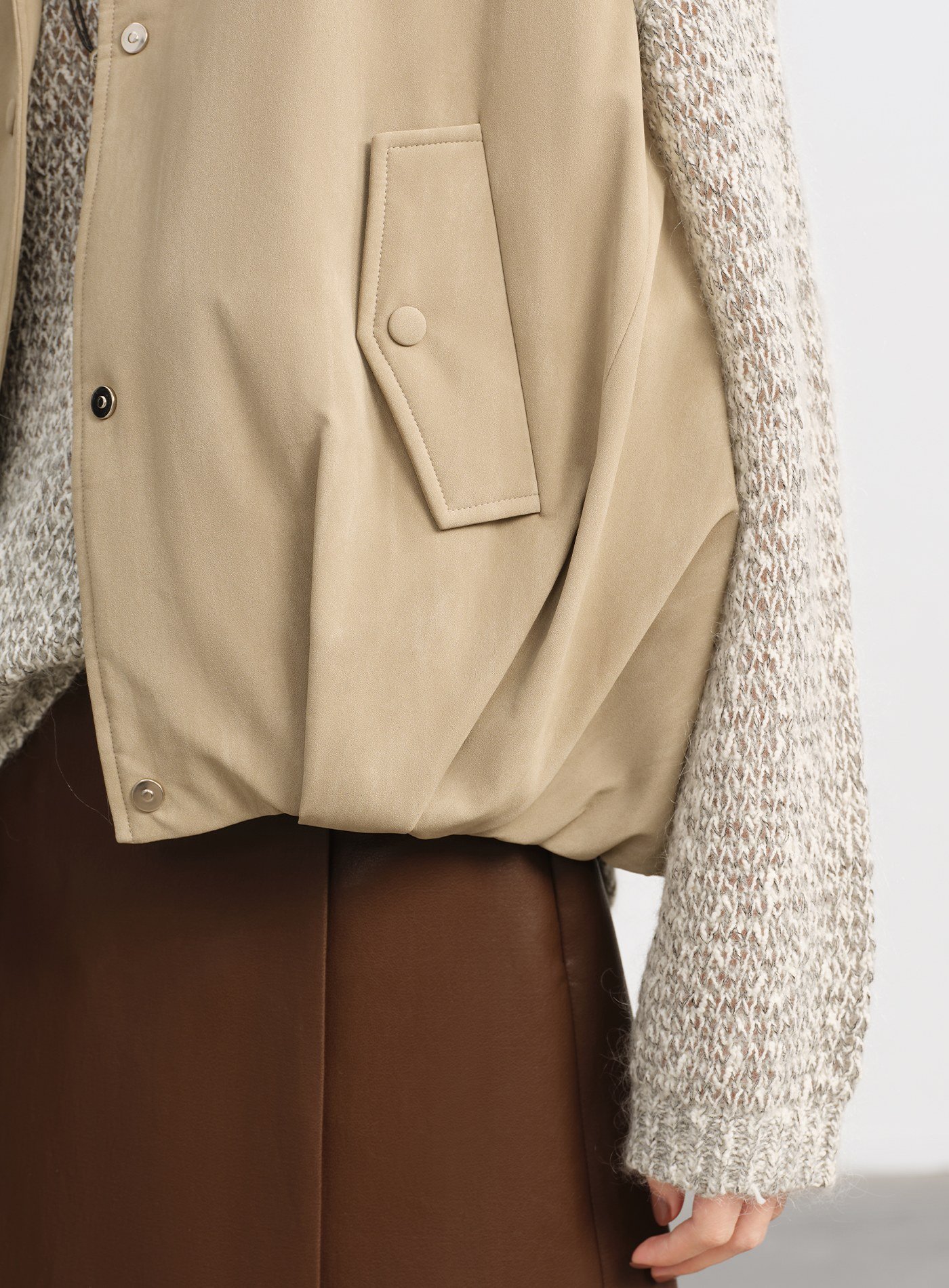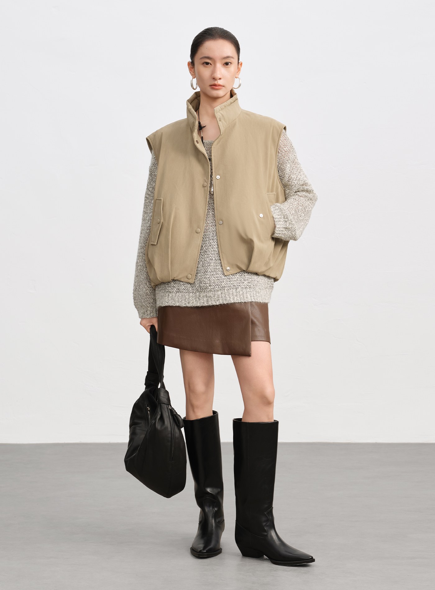羊毛雙面呢圓領不對稱拼接大衣$191 USD