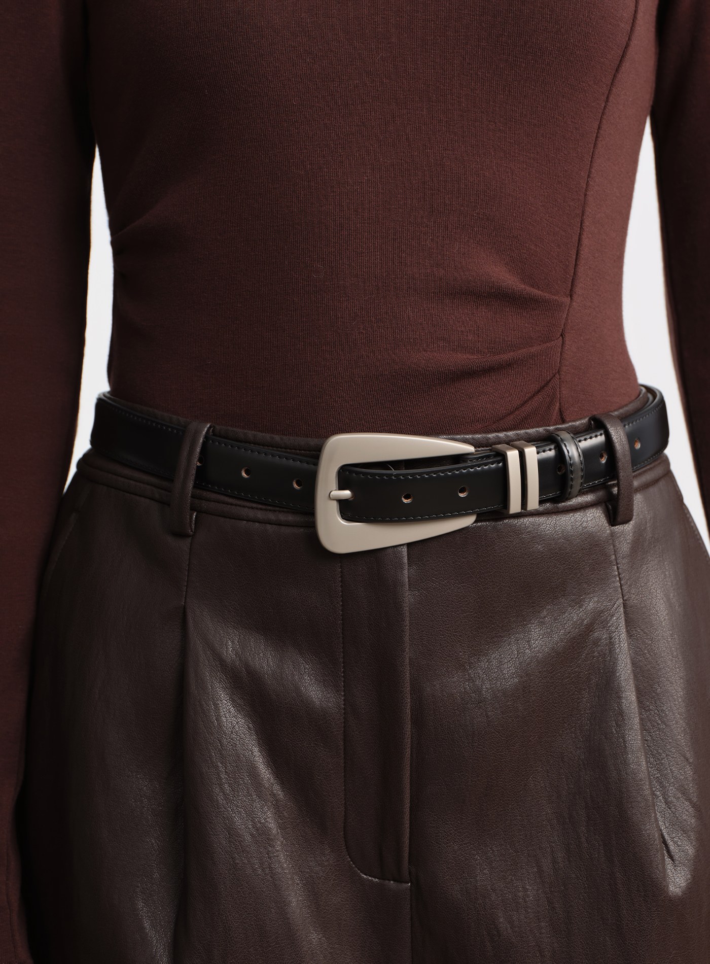 率性金屬圓框皮帶$41 USD